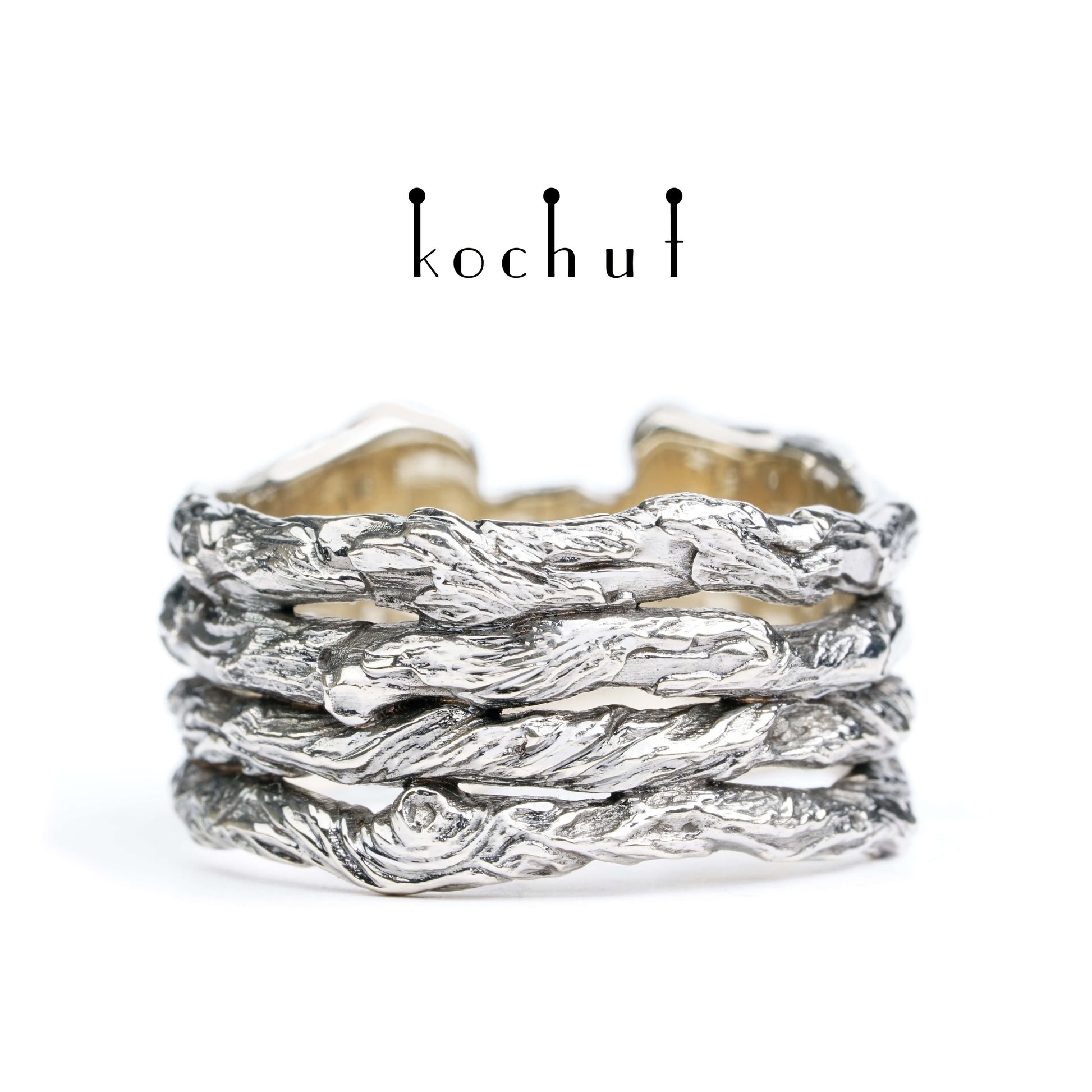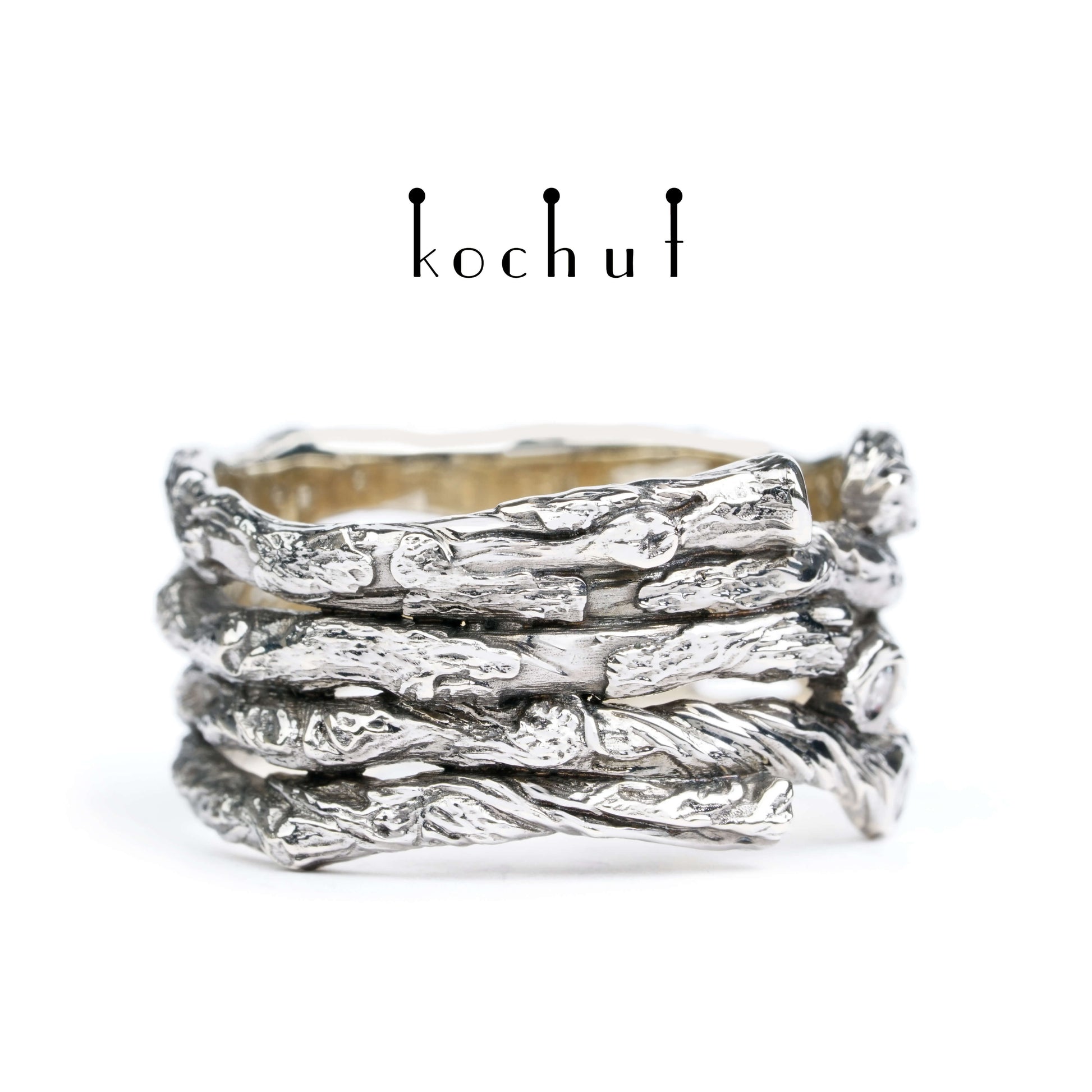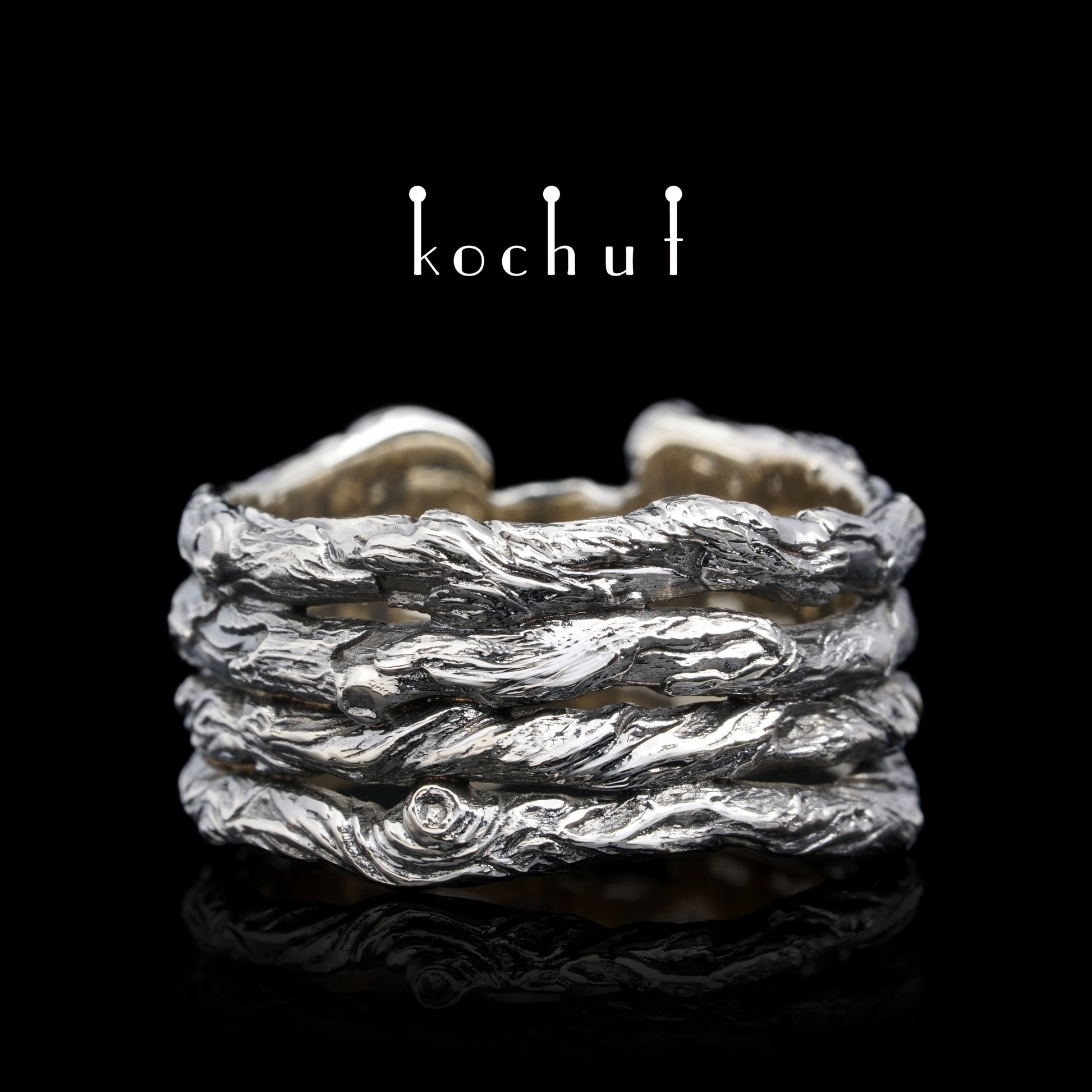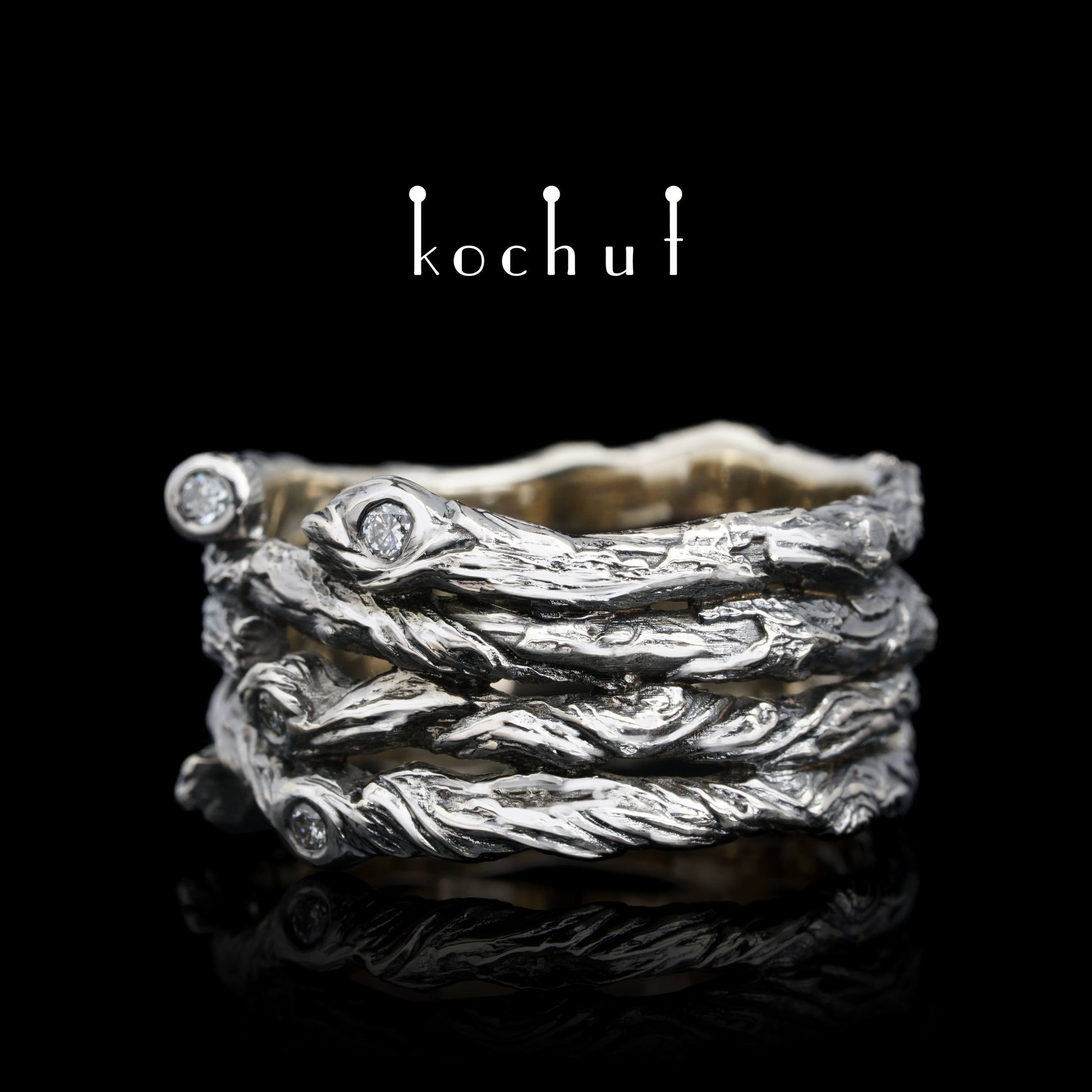 Breiter Zweig — Ring aus Weißgold mit Diamanten, beschichtet mit schwarzem Rhodium