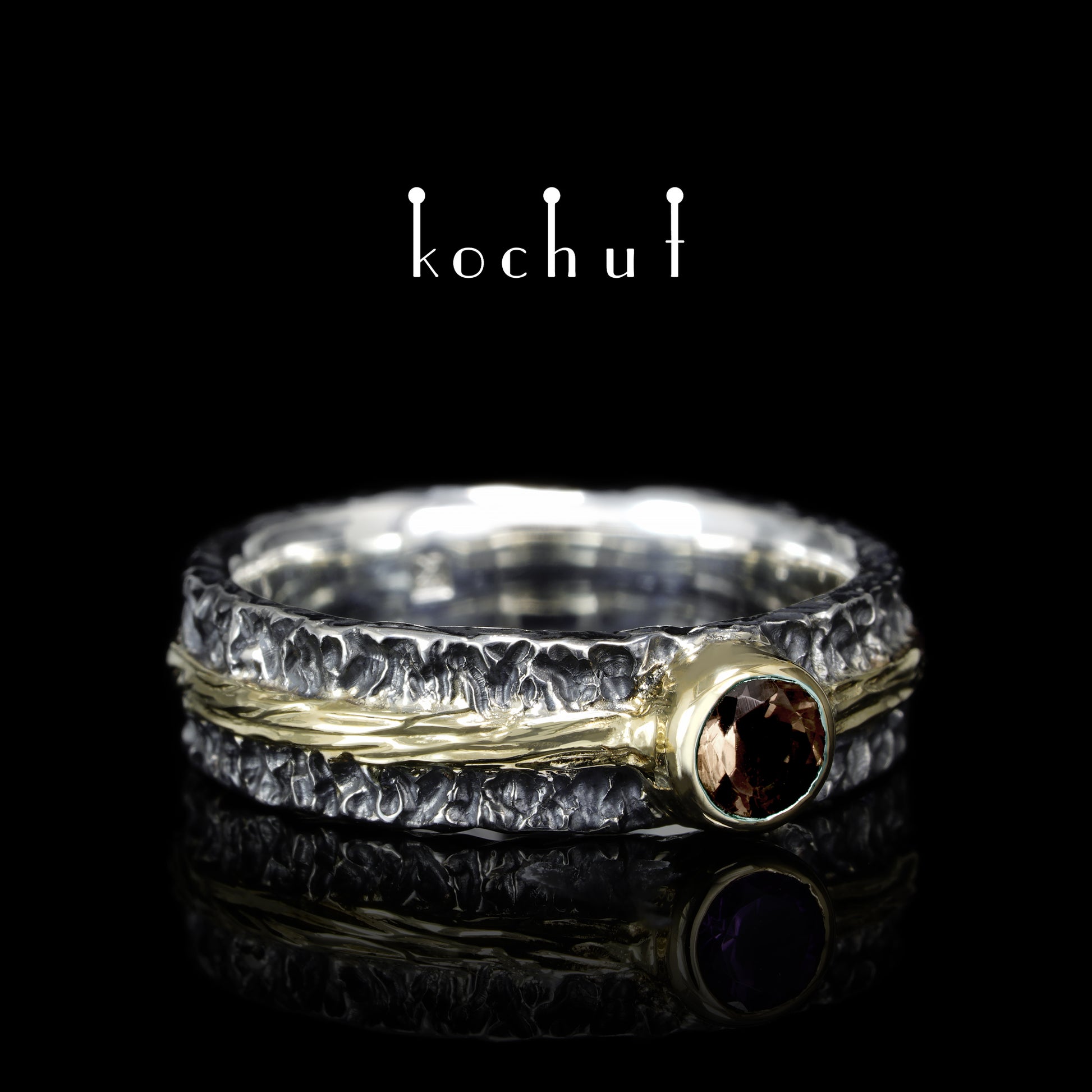 Citadel — Ehering aus oxidiertem Silber und Gelbgold mit Rauchquarz