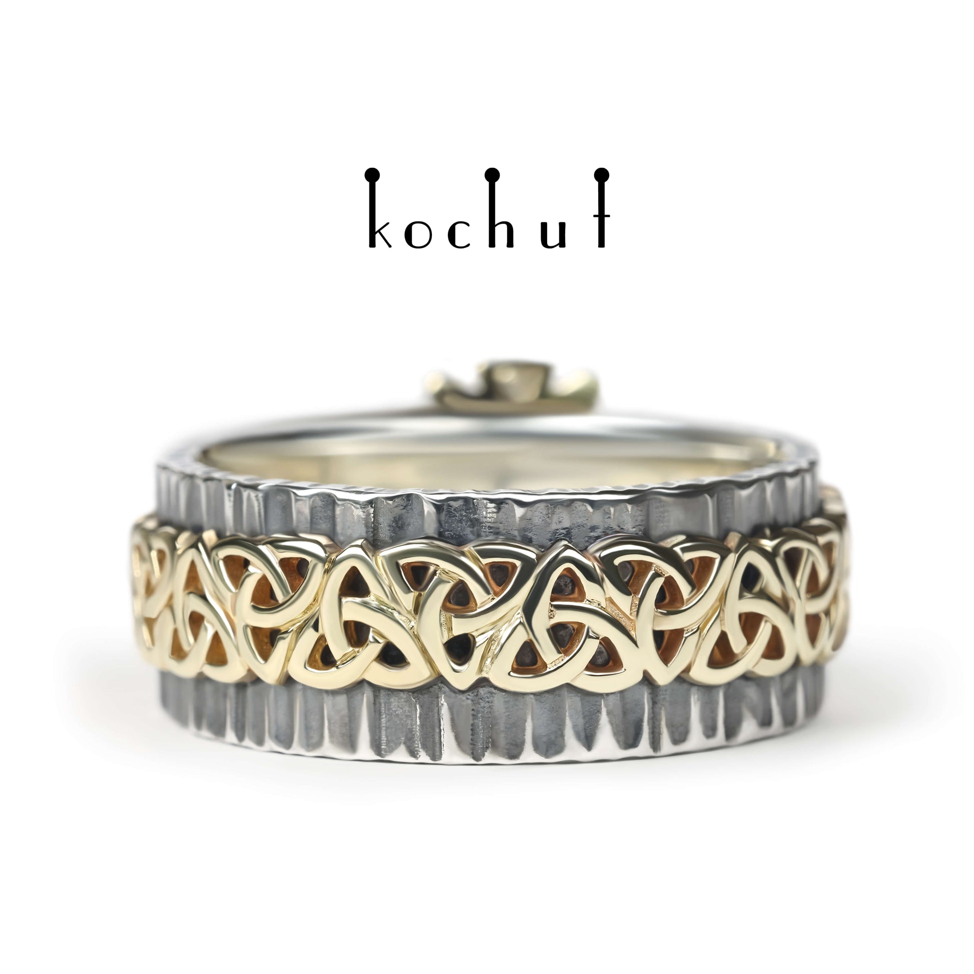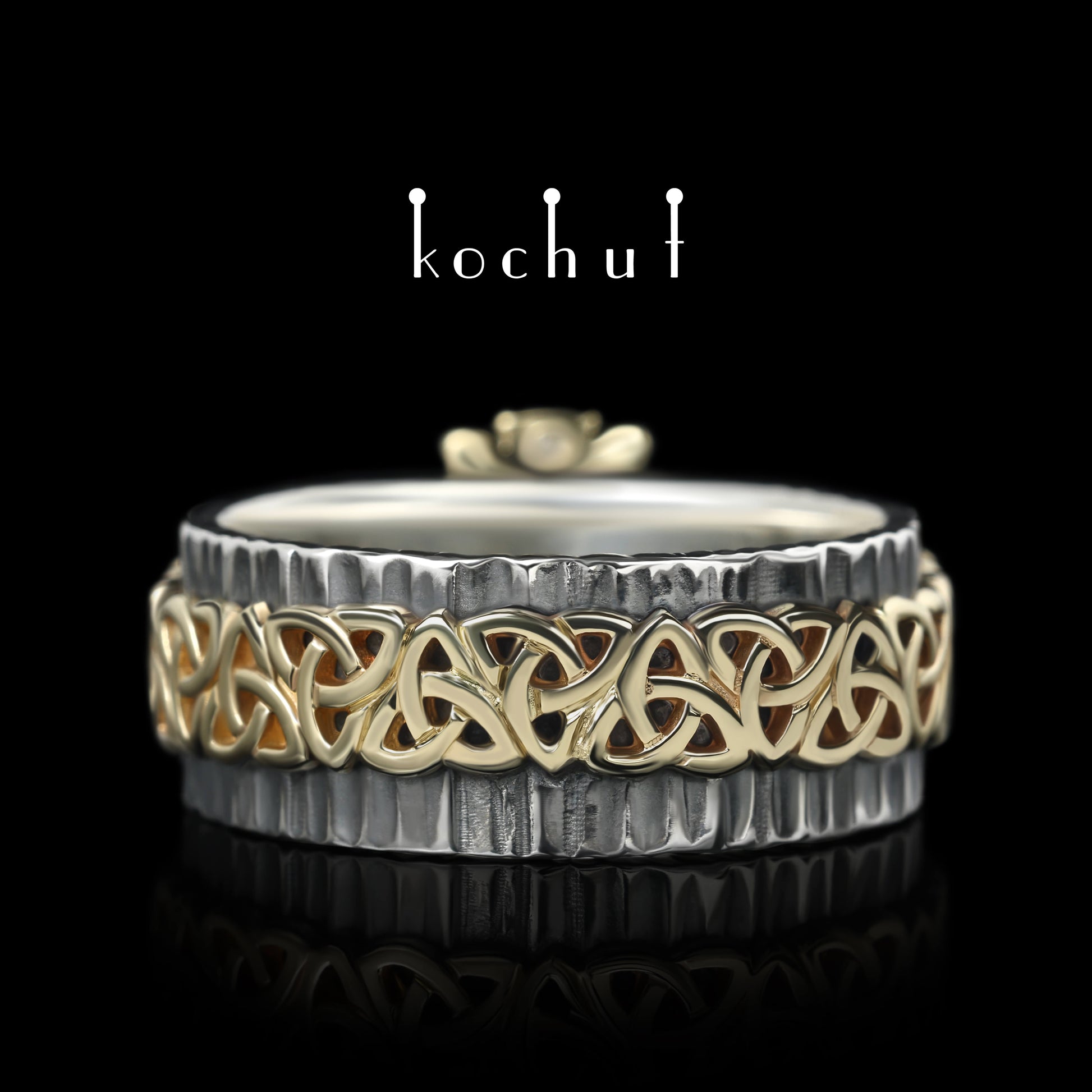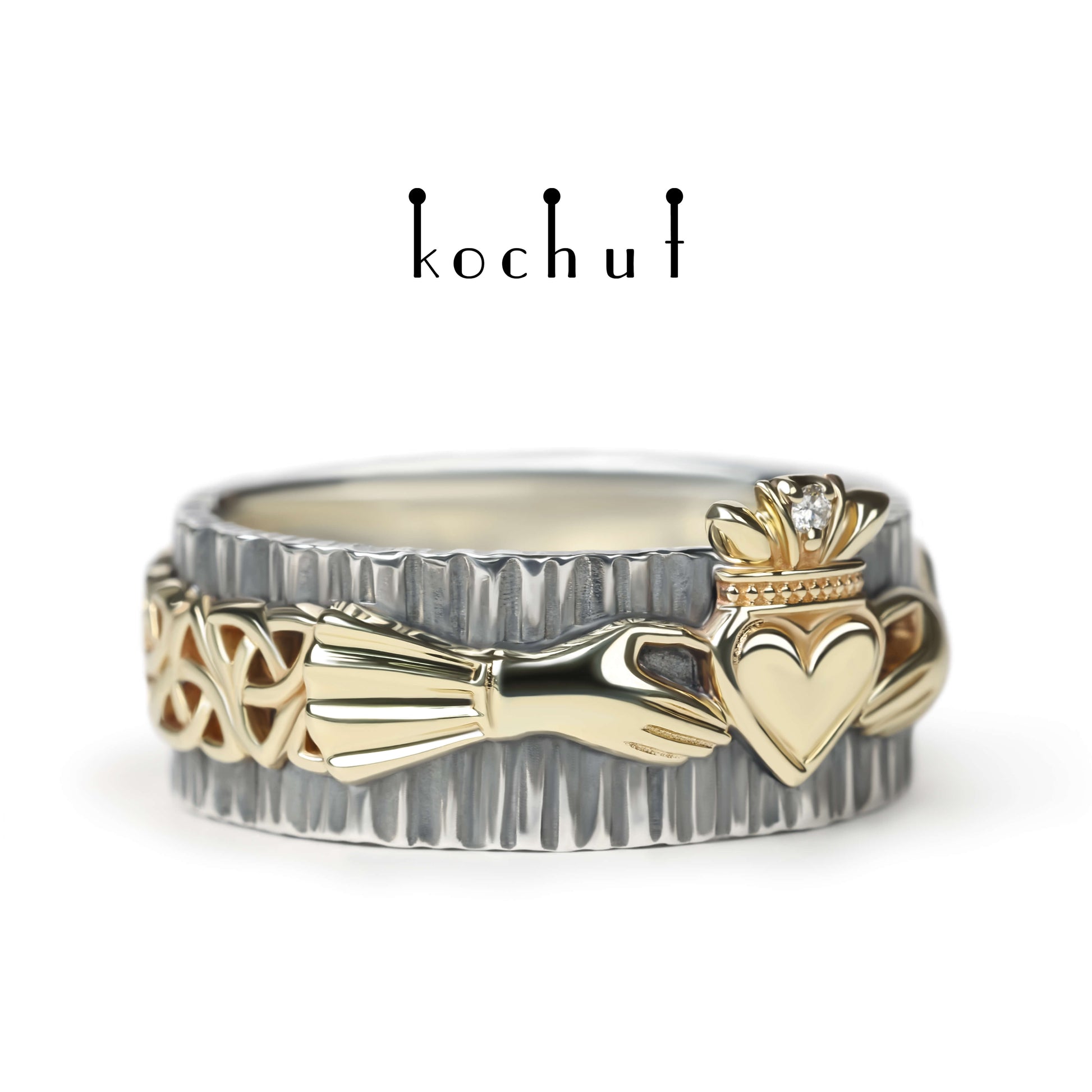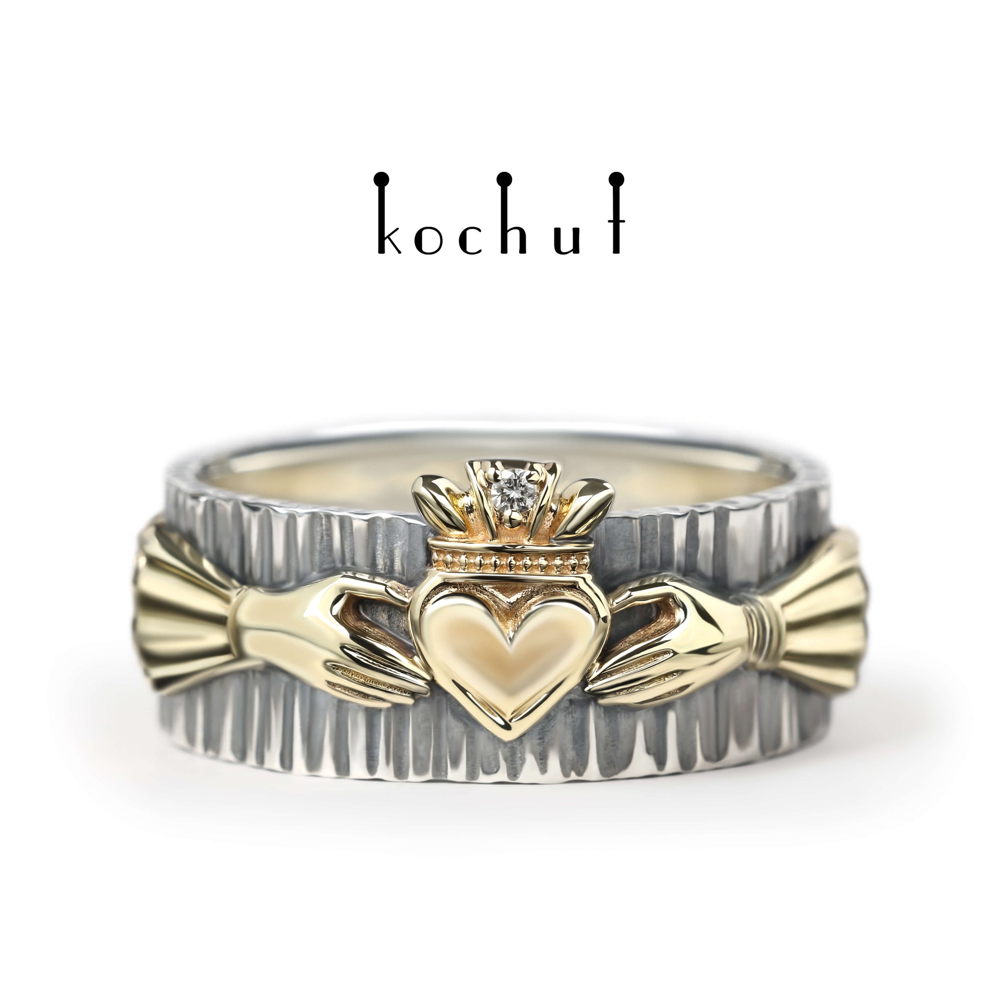 Claddagh: Freundschaft — Ring aus oxidiertem Silber und Gelbgold mit Diamant