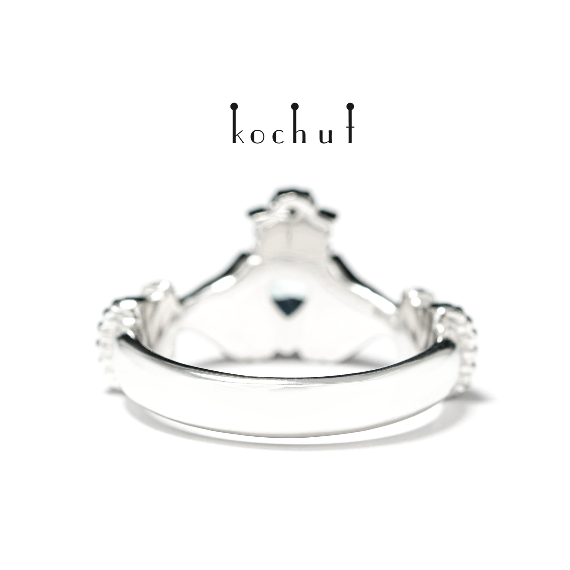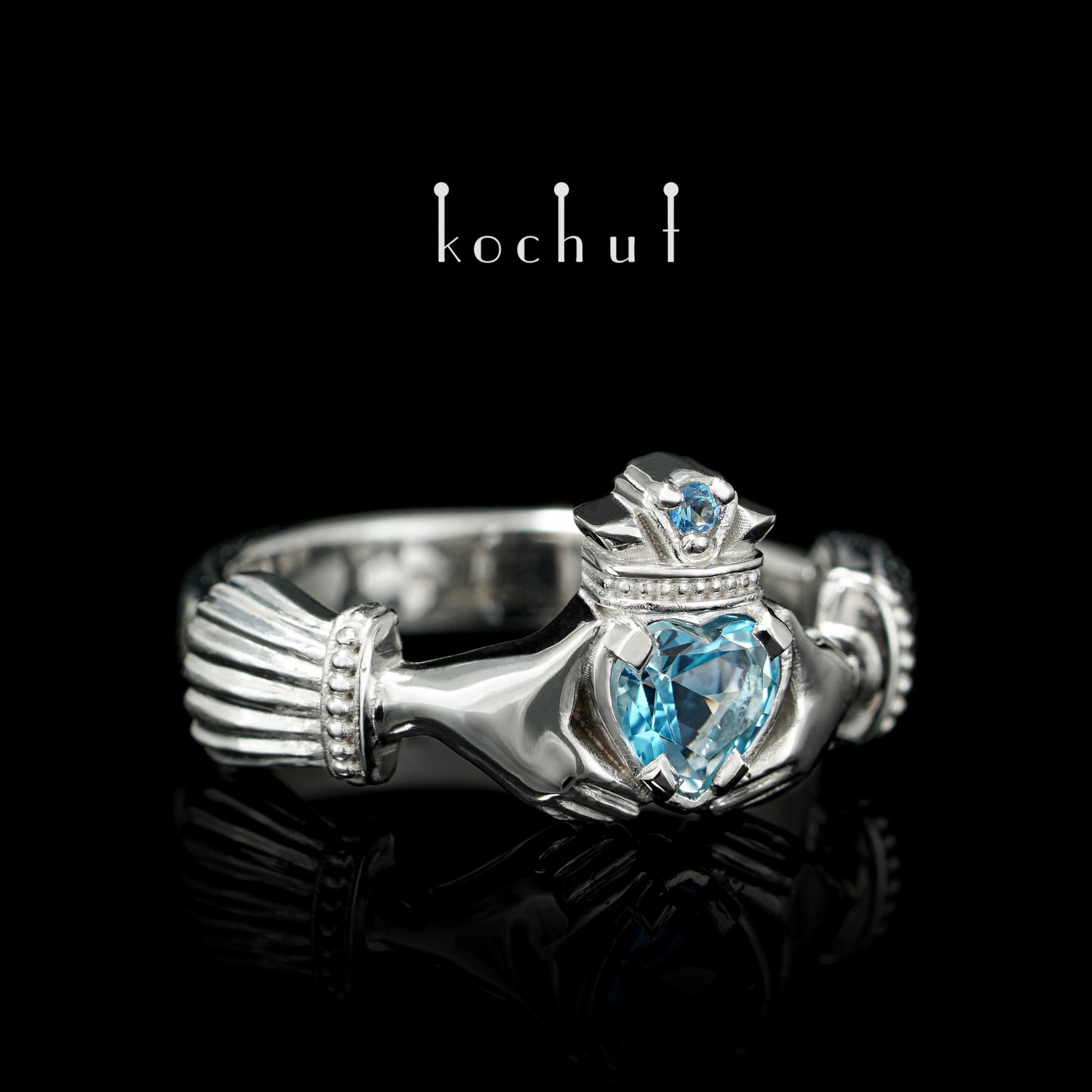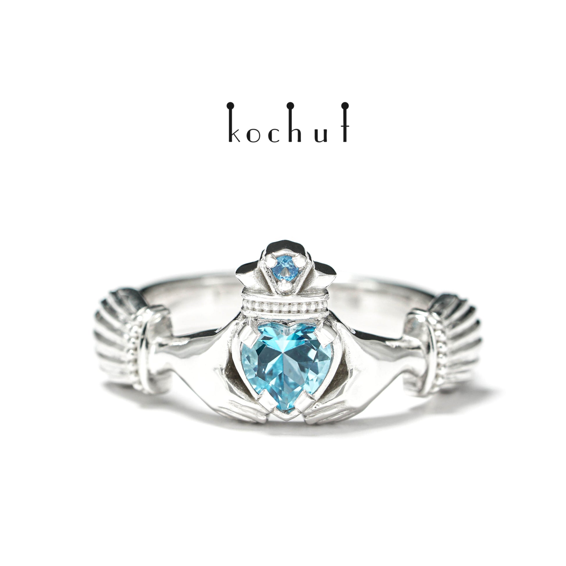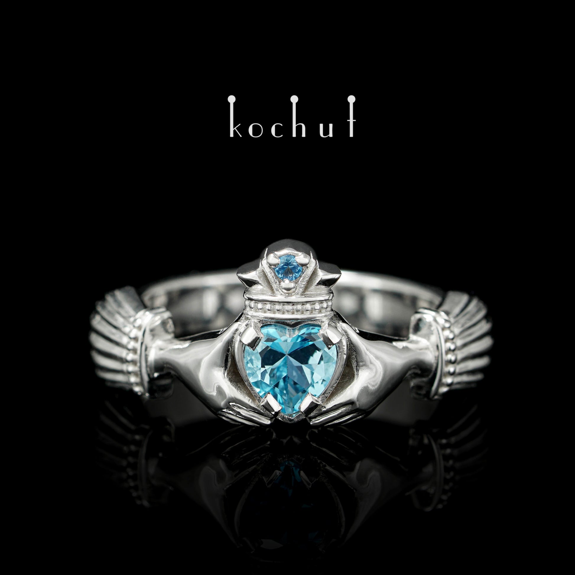 Claddagh: Liebe – Silberring mit Topasen, vergoldet mit weißem Rhodium