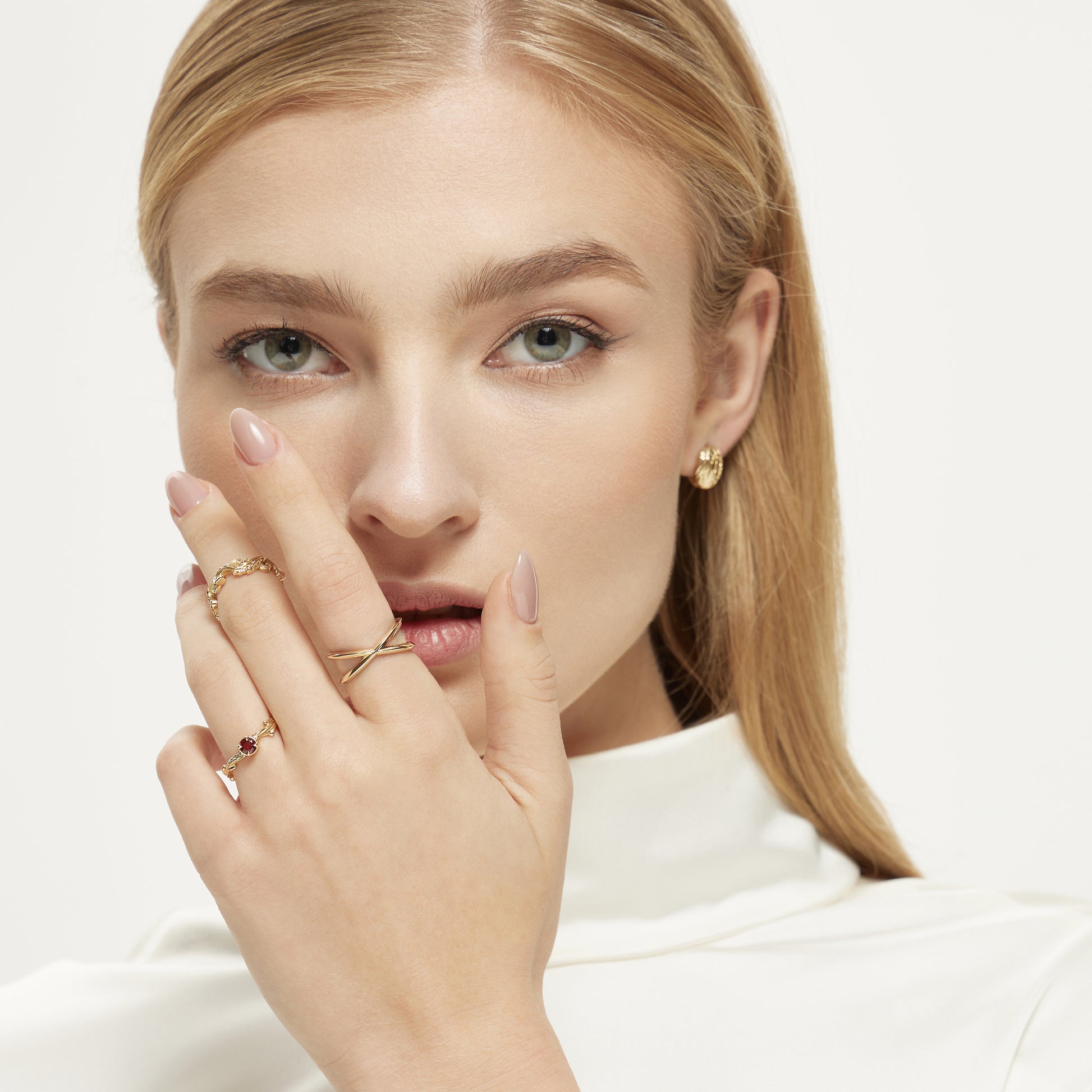 So wurde das Design des «Touching Point»-Ringes geschaffen. Aus dem goldenen Geflecht wird Energie zu einem einzigen Punkt von Wissen, Weisheit und Erleuchtung gelenkt. Der Ring ist aus Gelbgold gefertigt.