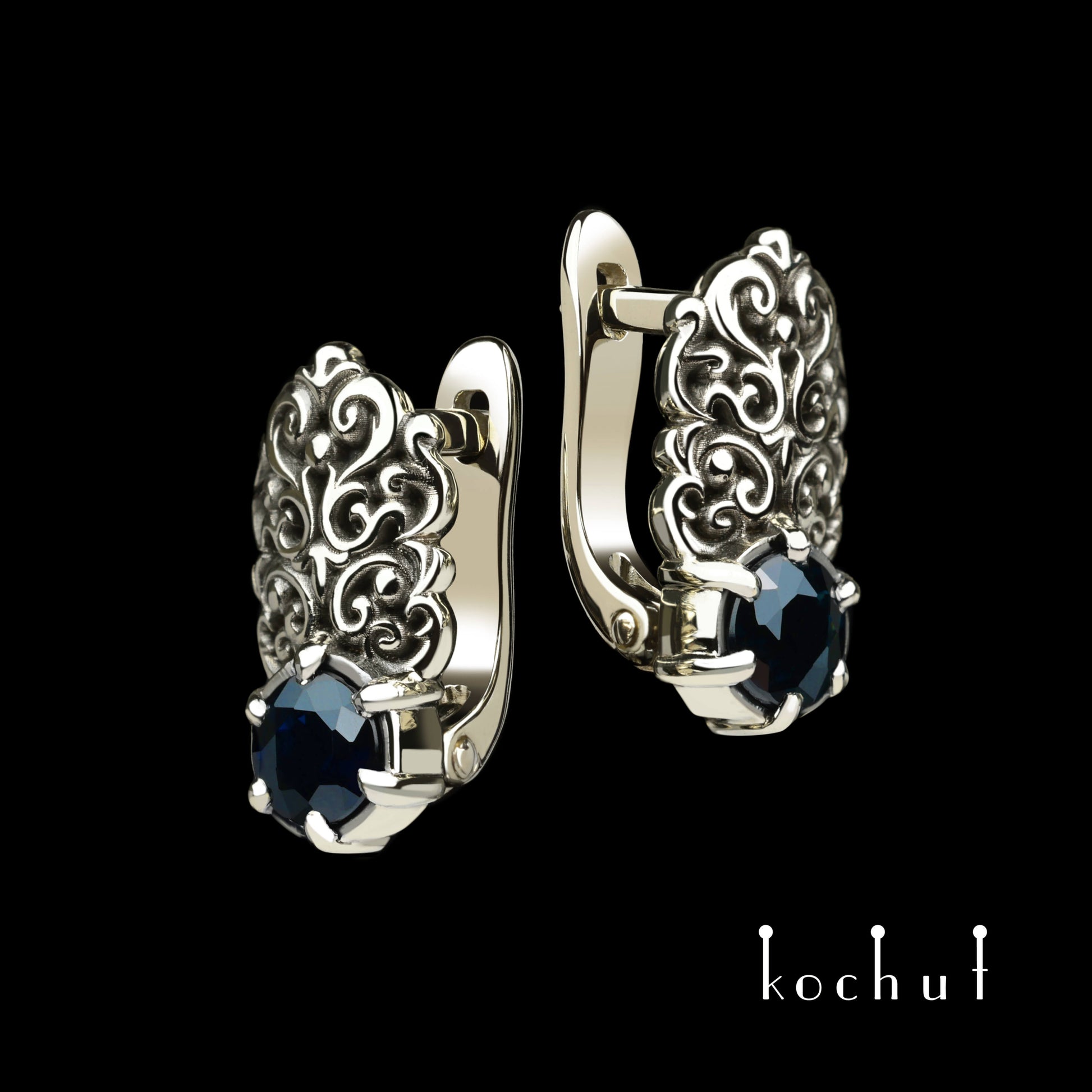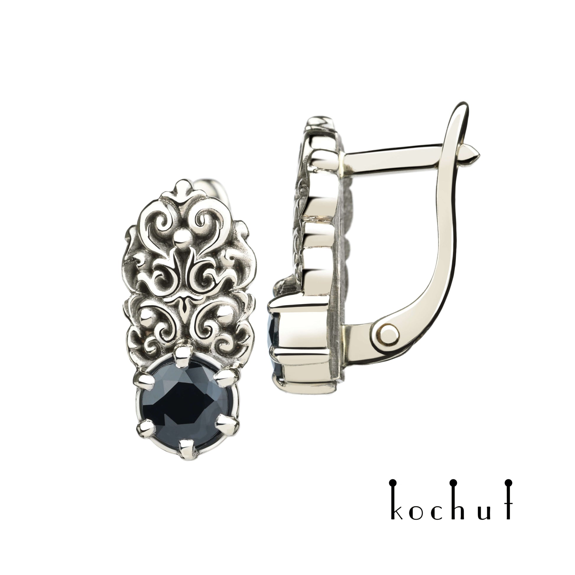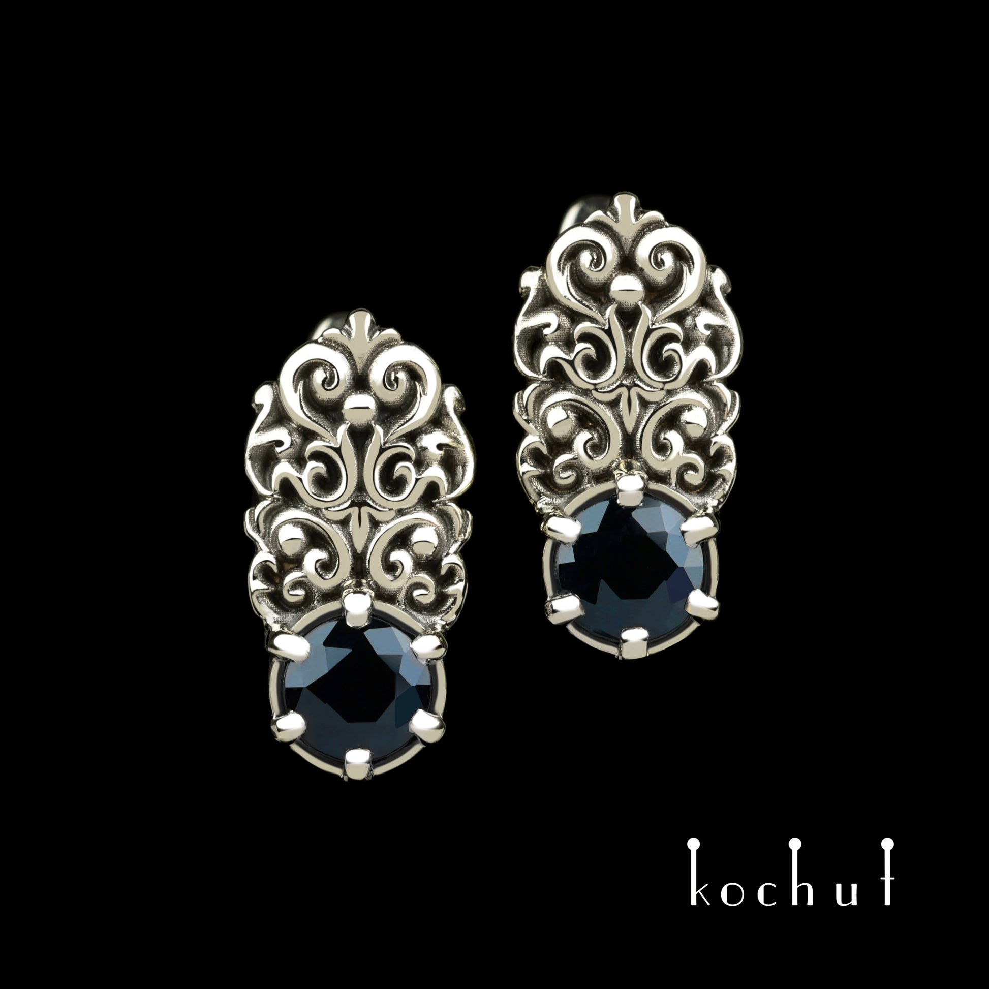 Duchess — Ohrringe aus Weißgold mit Saphir, überzogen mit schwarzem Rhodium