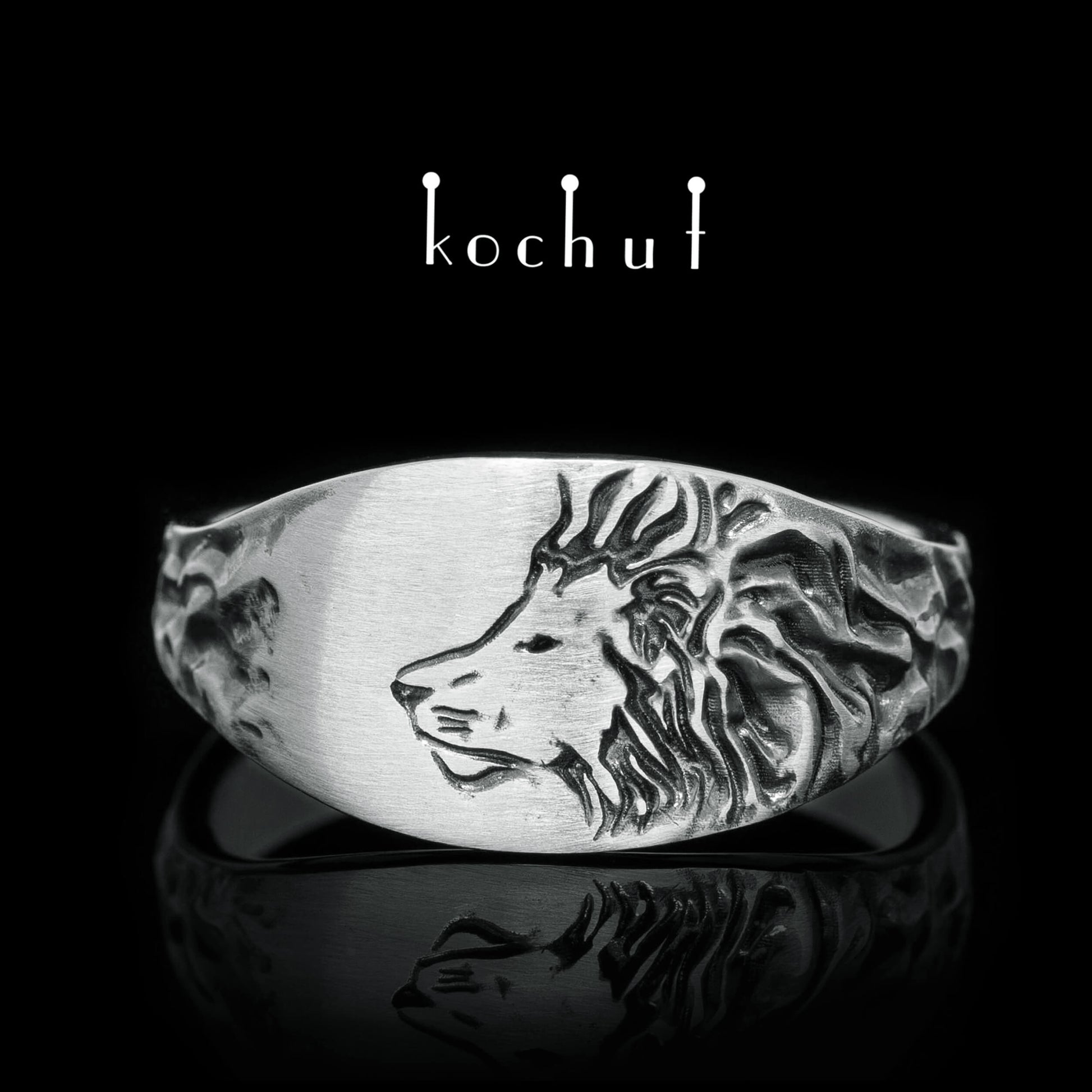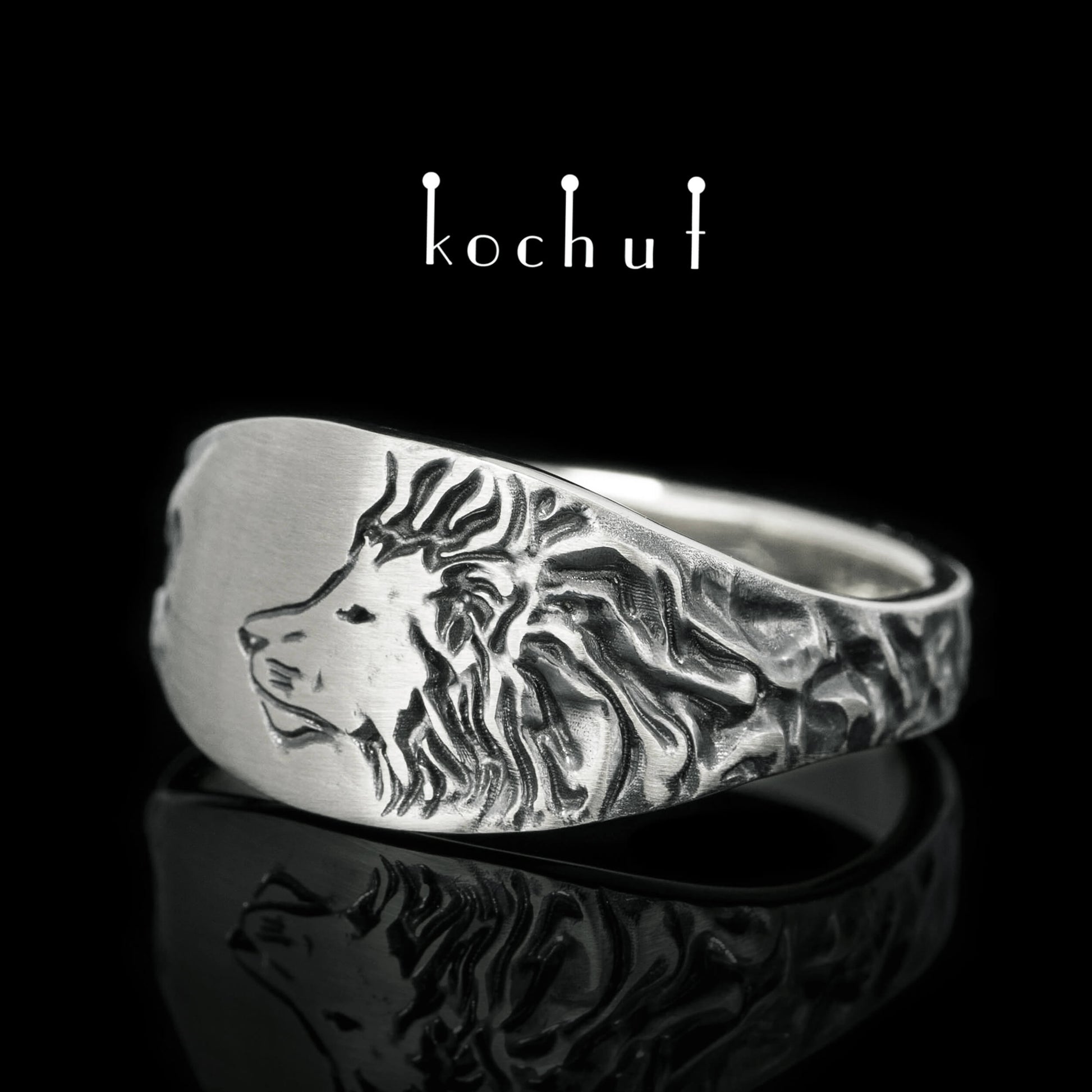 Dunkler Löwe — Ring aus oxidiertem Silber