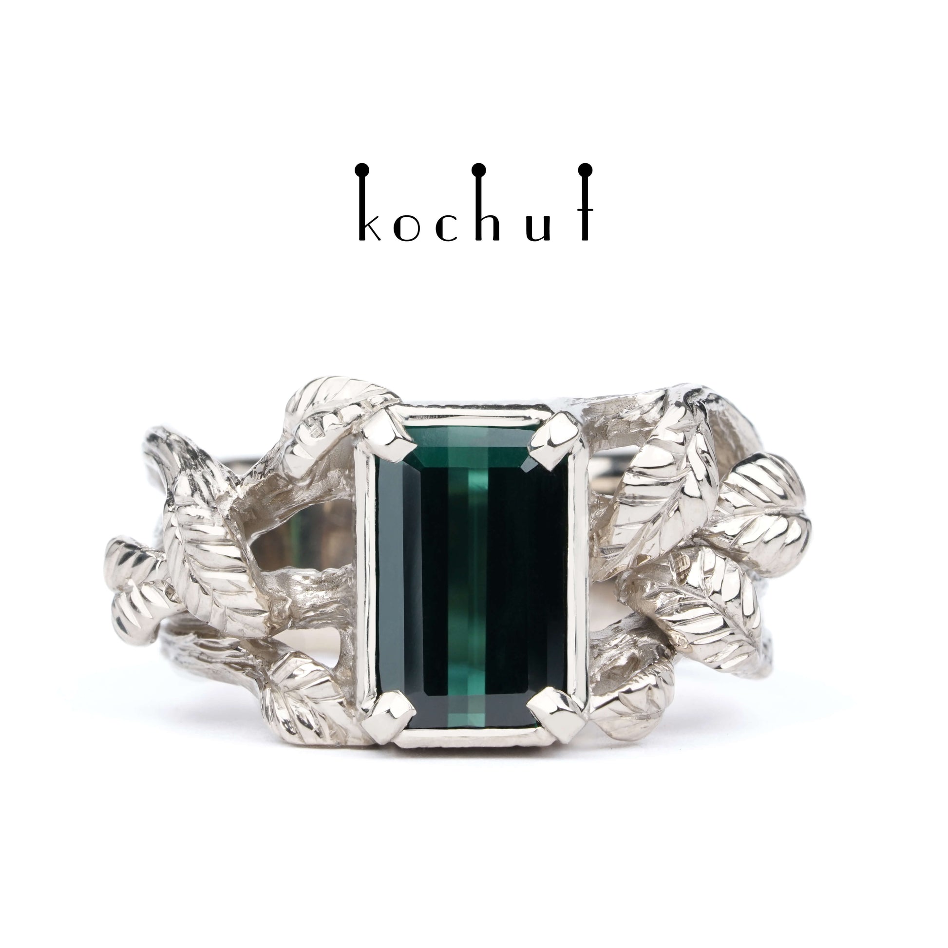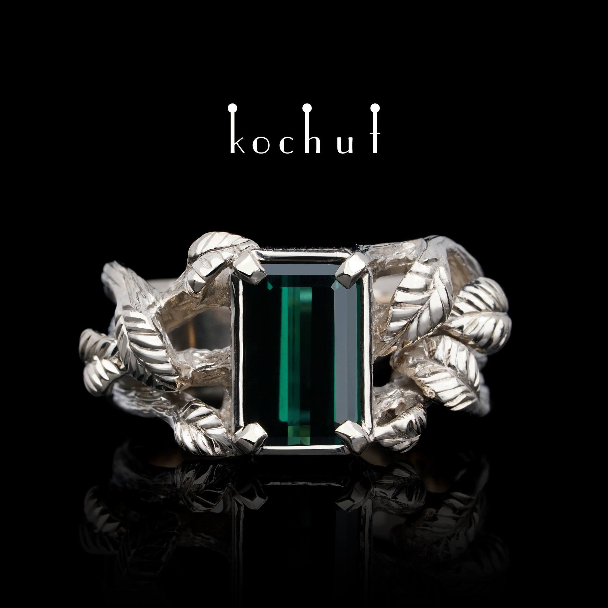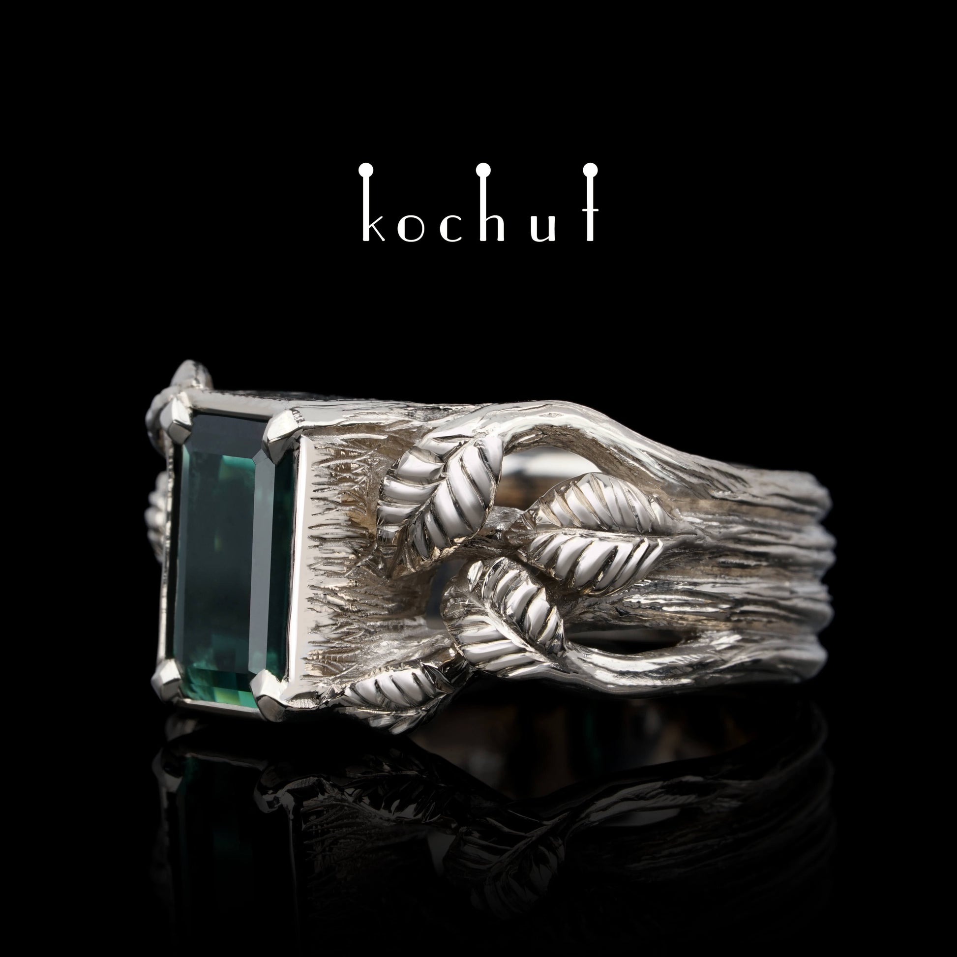 Sieh diesen Ring nicht mit deinen Augen, sondern mit deinem Herzen. Eine Quelle der Lebensenergie fließt in der tiefen Farbe des Turmalins. Blumen, die du gepflanzt hast, sprießen daraus. Luxuriöses Palladiumgold hält den Mund über ein tiefgründiges und fantastisches Geheimnis. Es ist all deine Kreativität. Kannst du es fühlen?