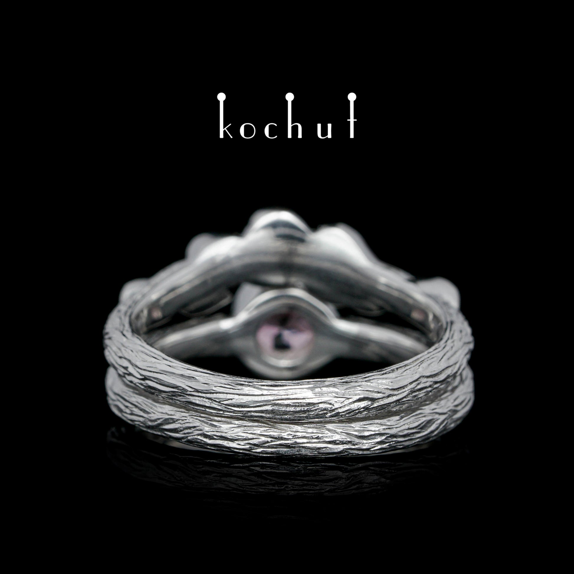 Der Doppelring „Erste Begegnung“ ist die Verkörperung der Zuneigung, die diese frühesten Momente so prägt. Ein elegant gefärbter pinker Topas ist festlich mit Silber verziert. Durch sie scheint die Hand des Meisters hinauszugreifen und dein Herz mit sublimarer Wärme in jedem Millimeter zu berühren.