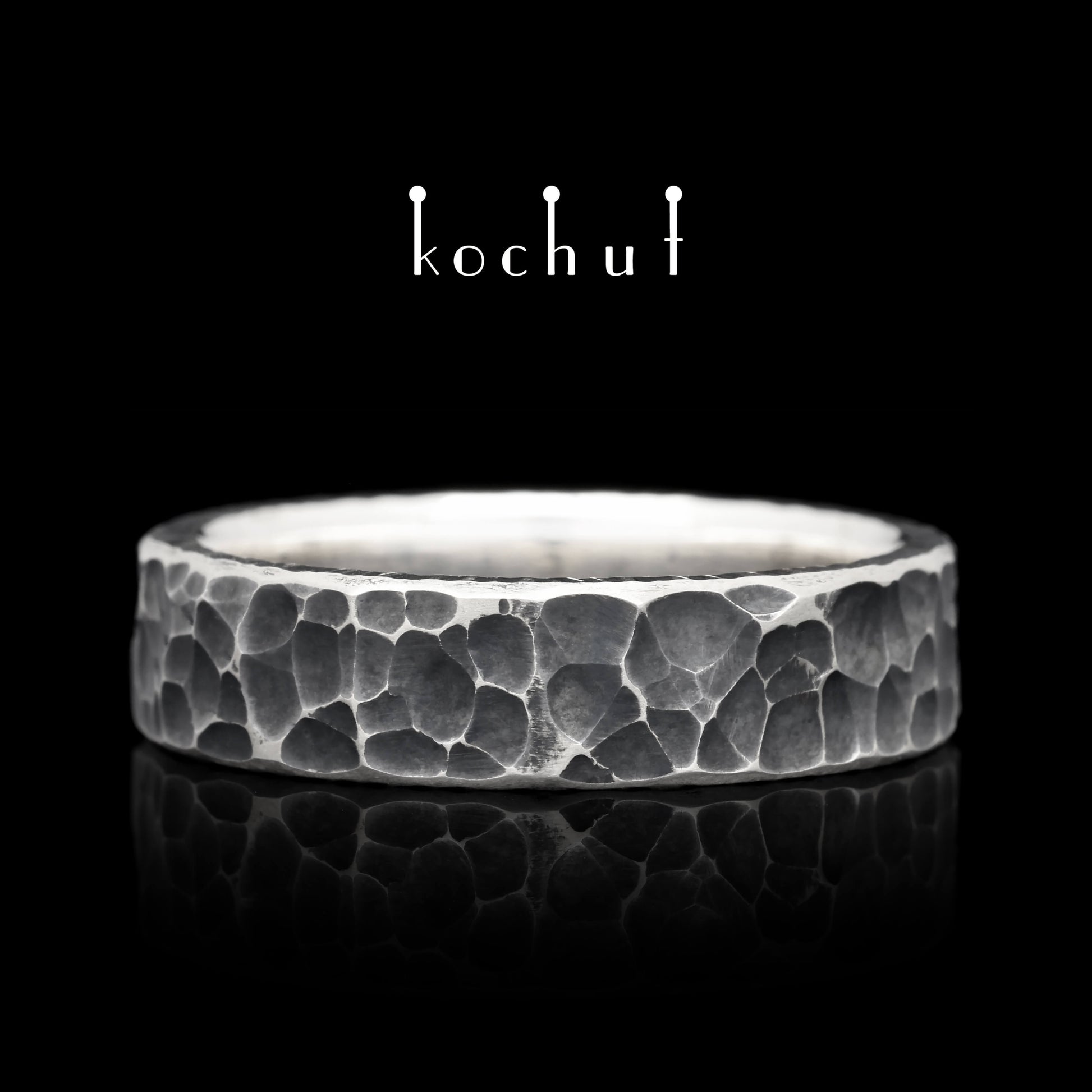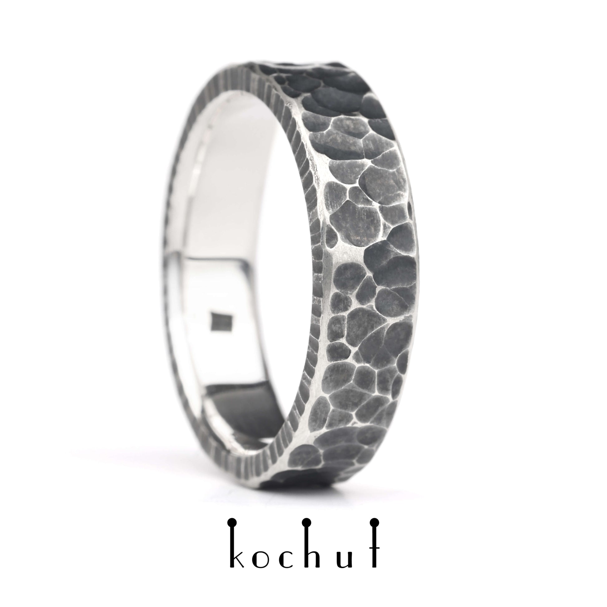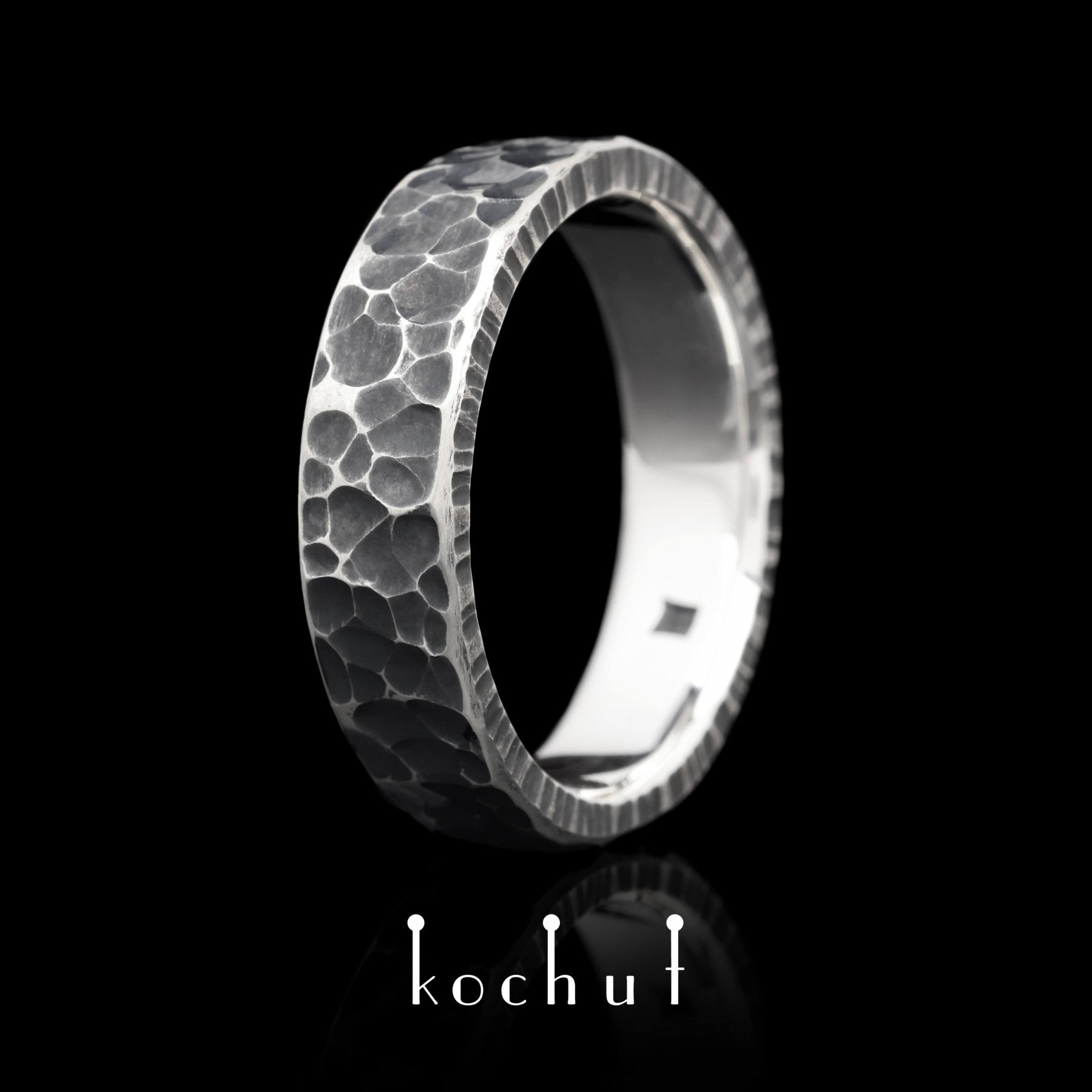 Ein brandneuer Ring mit „Extra“-Schmiedekunst. Silber, Oxidation.