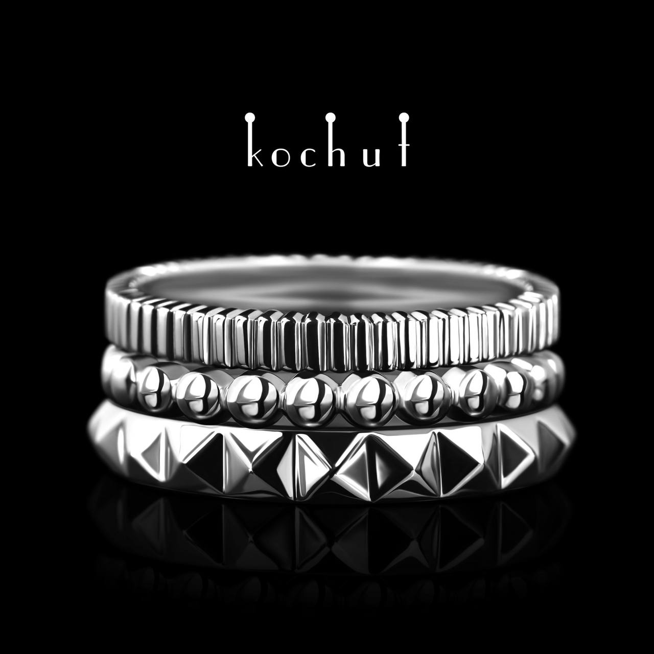 Facetten des Charakters — ein Set aus Weißgold-Ringen, rhodiniert mit Weißrhodium