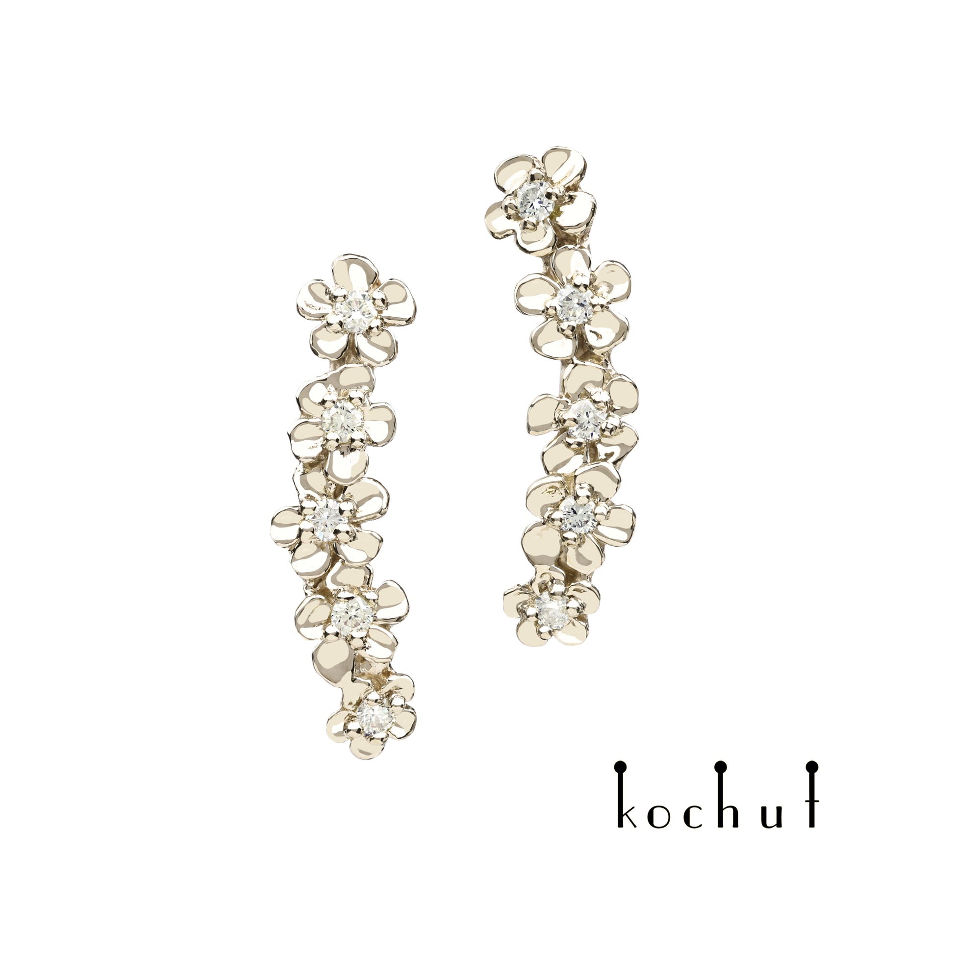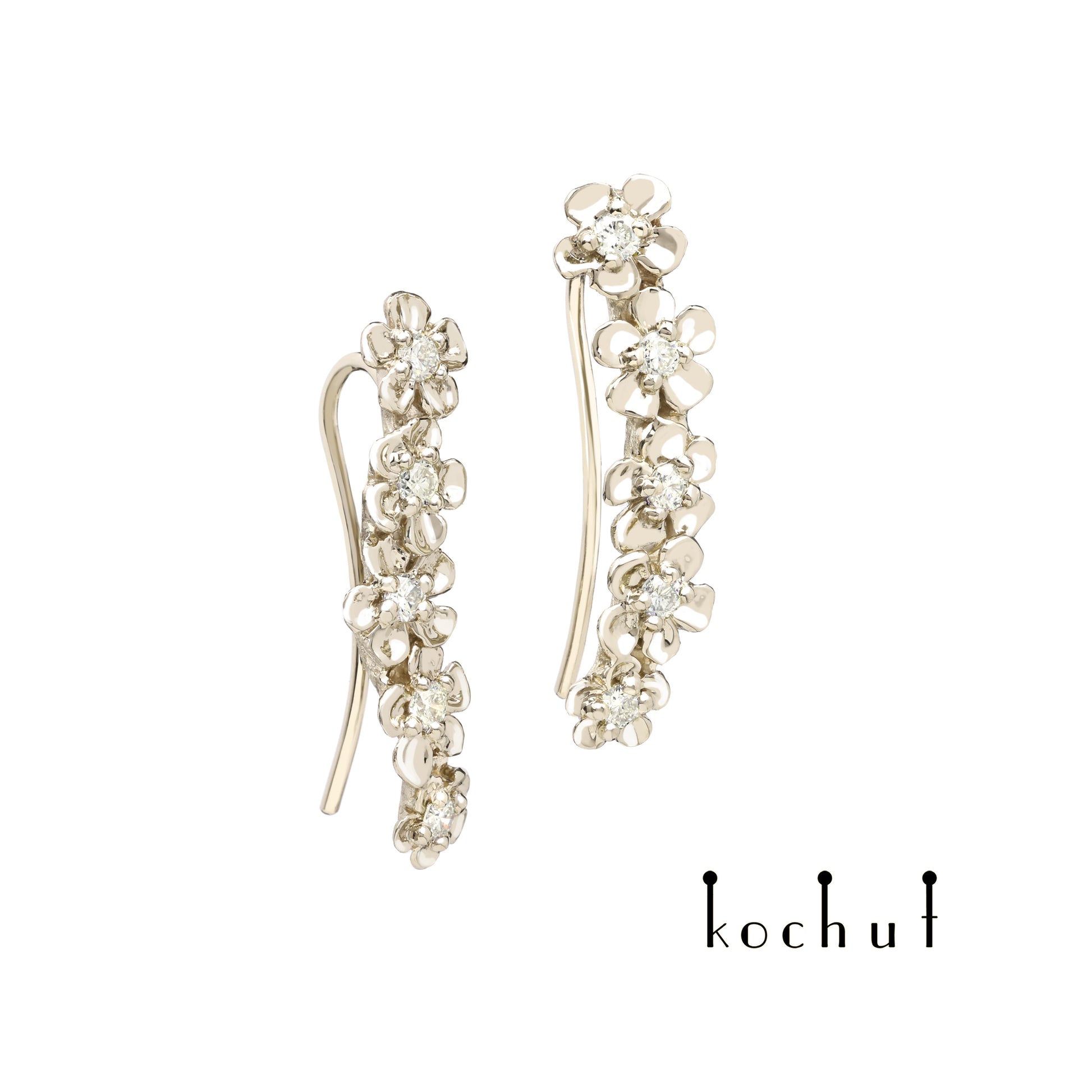 Florale Tiara — Ohrklemmen aus Weißgold mit Diamanten
