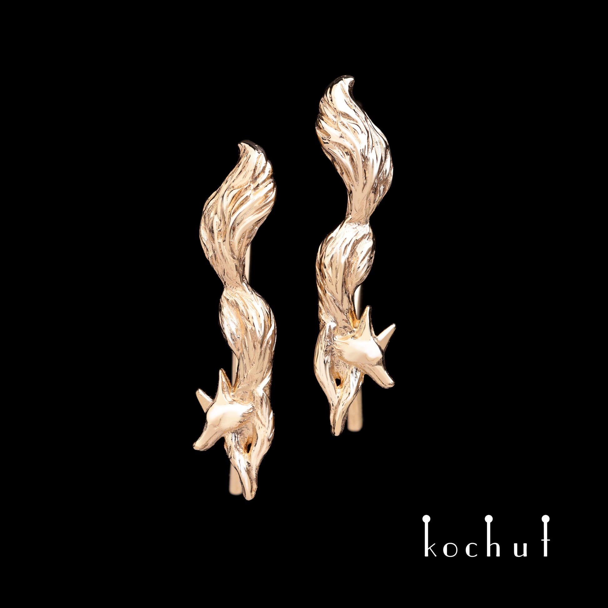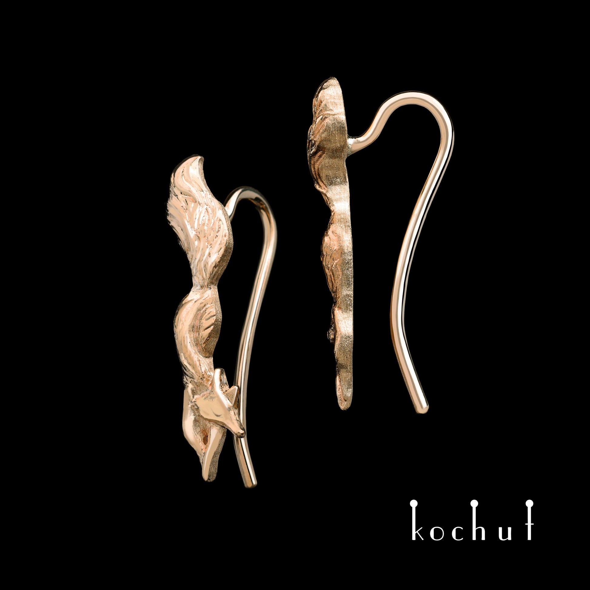 Die zarten „Füchse“-Ohrringe sind eine bezaubernde Waldszene, bei der die geschickte Hand des Meisters die Füchse fast zum Leben erweckt hat.