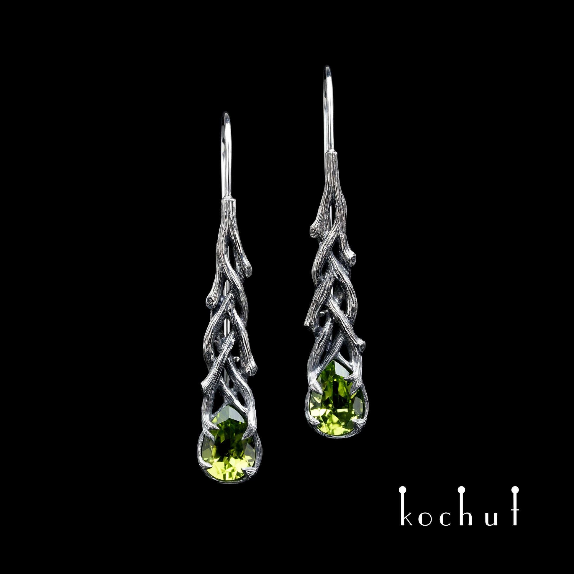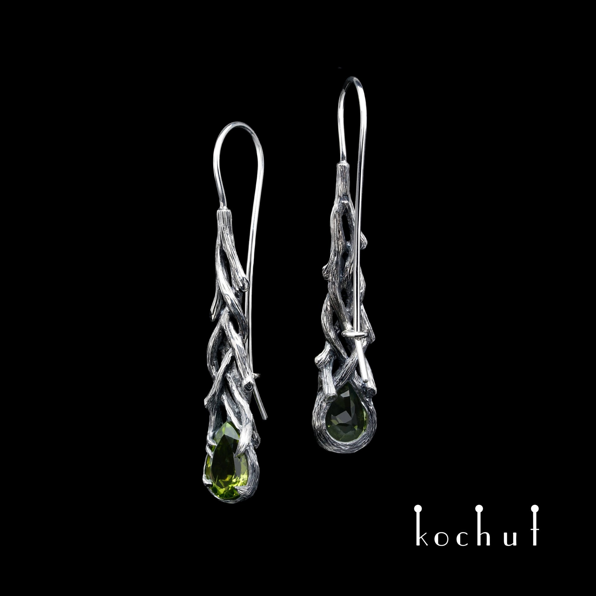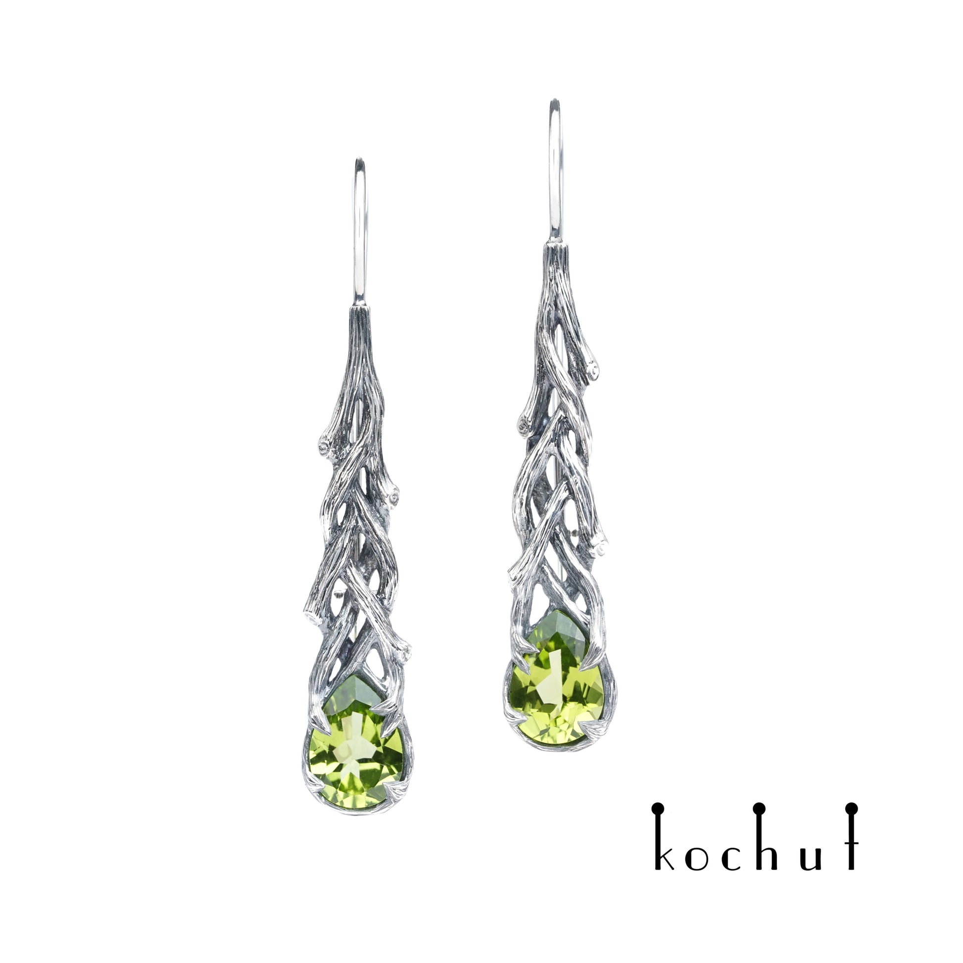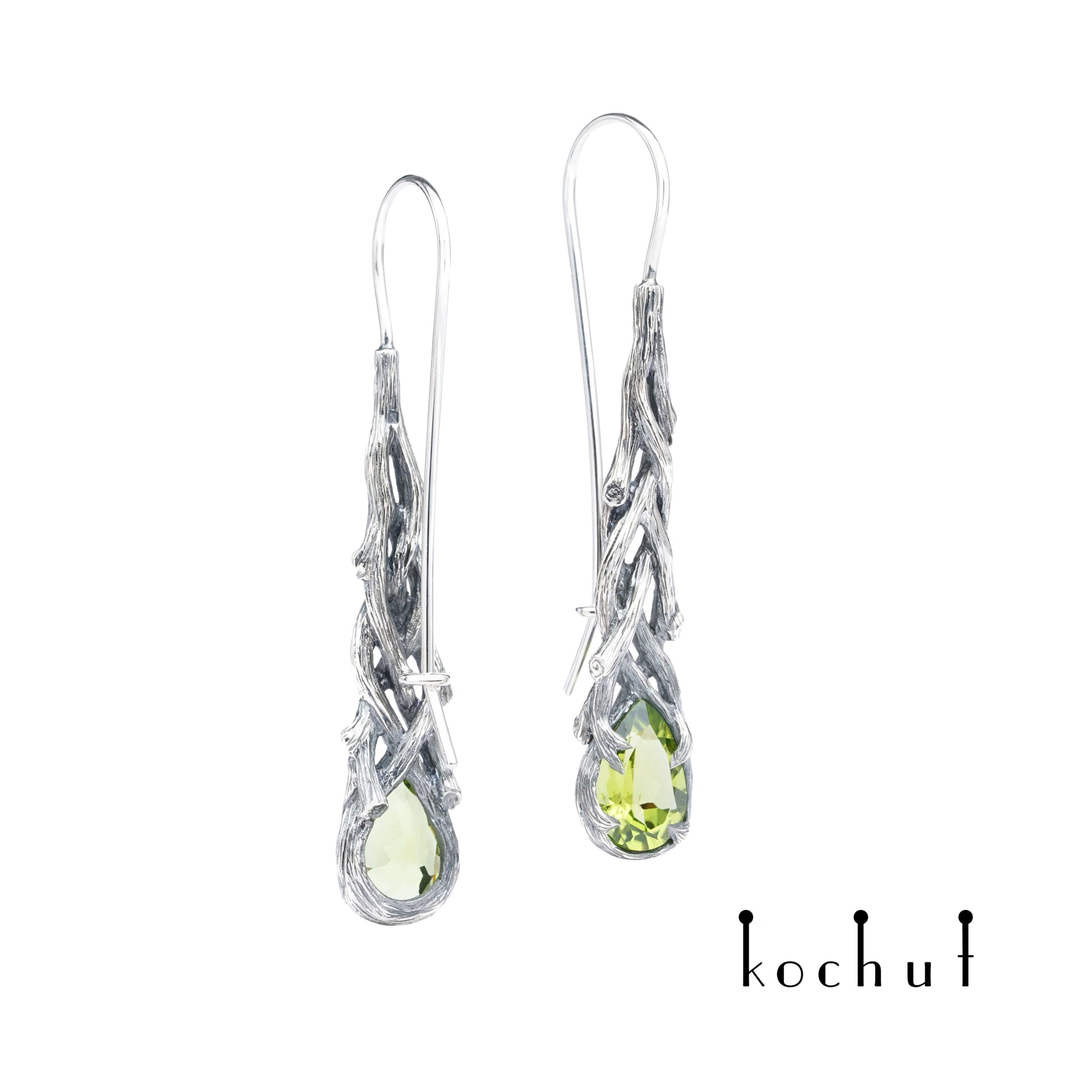 Galadriel — Ohrringe aus oxidiertem Silber mit Chrysolithen
