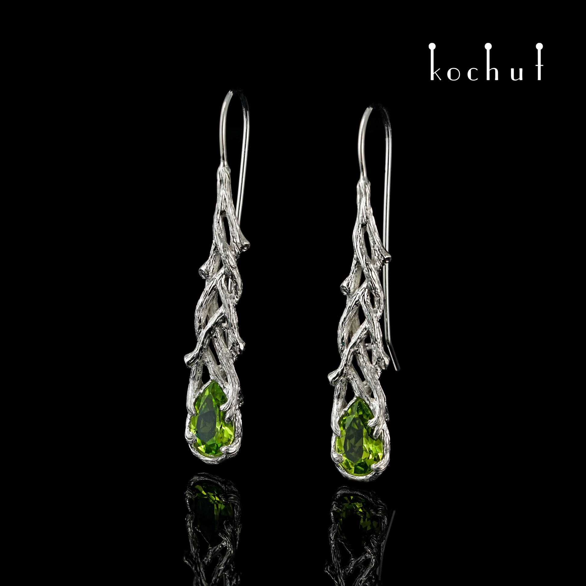 Galadriel — silberne Ohrringe mit Chrysolithen, plattiert mit weißem Rhodium