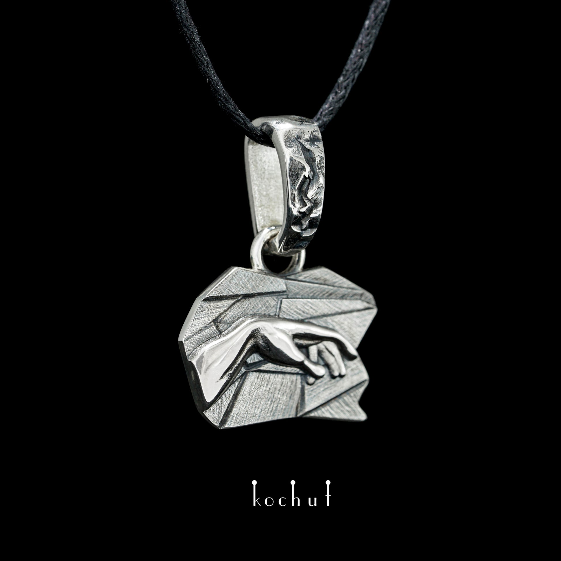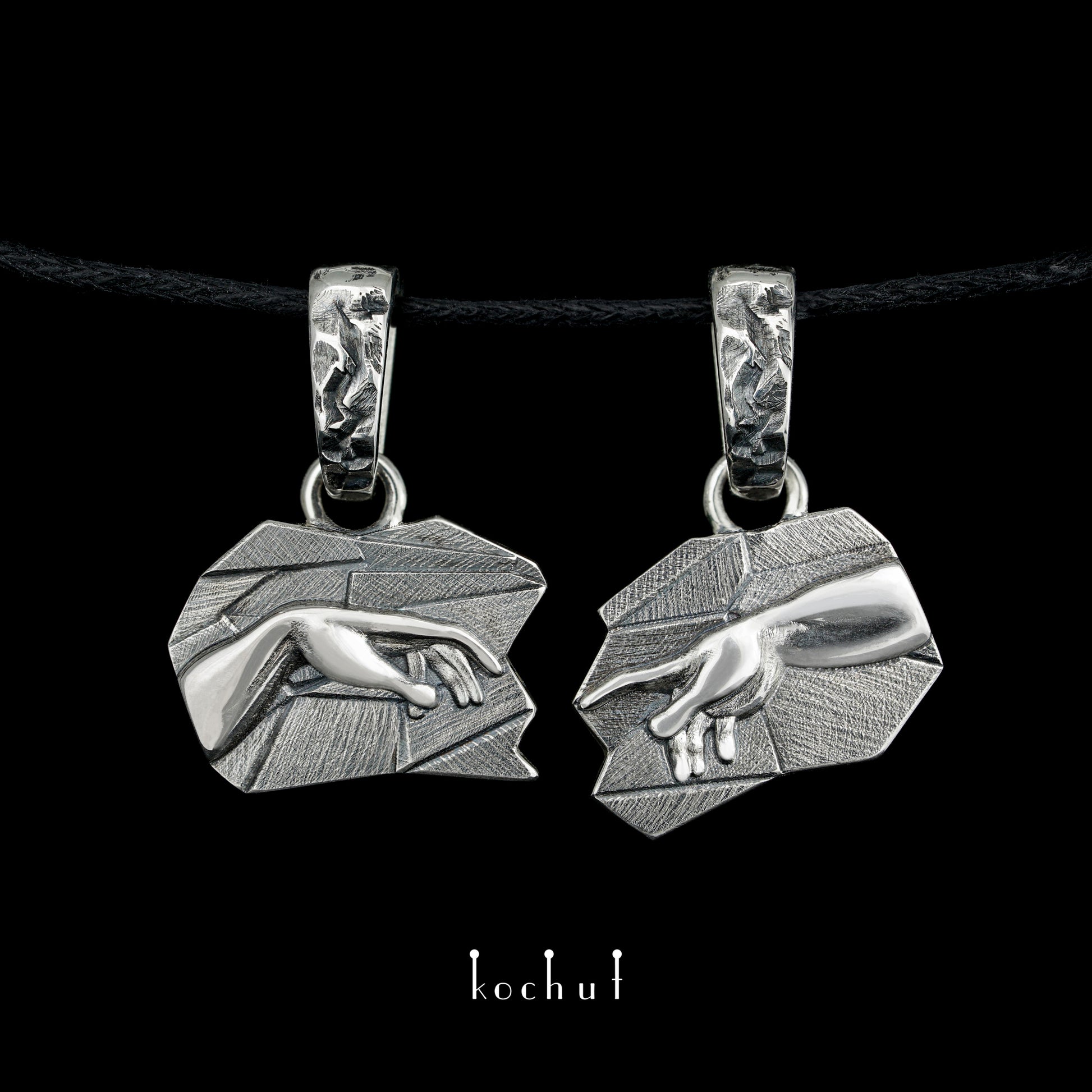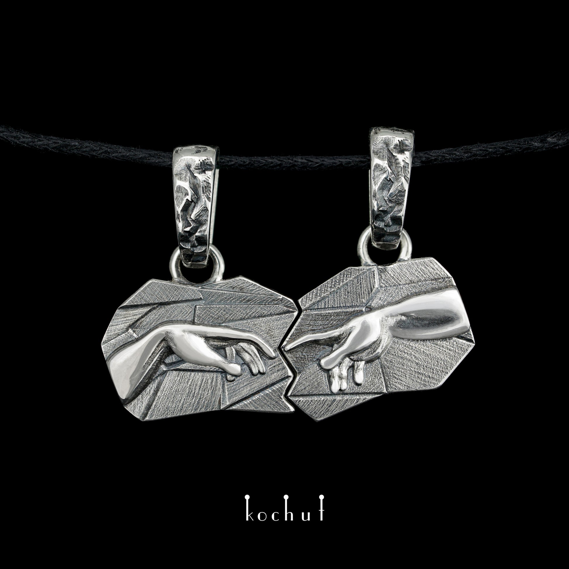 Der Doppelanhänger «Birth of Adam», basierend auf dem Gemälde von Michelangelo, besteht aus Silber mit oxidierter Beschichtung und ist ein Kunstwerk für sich.