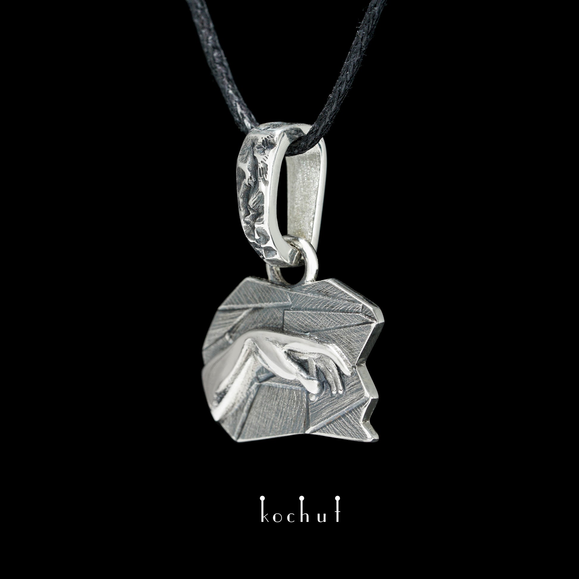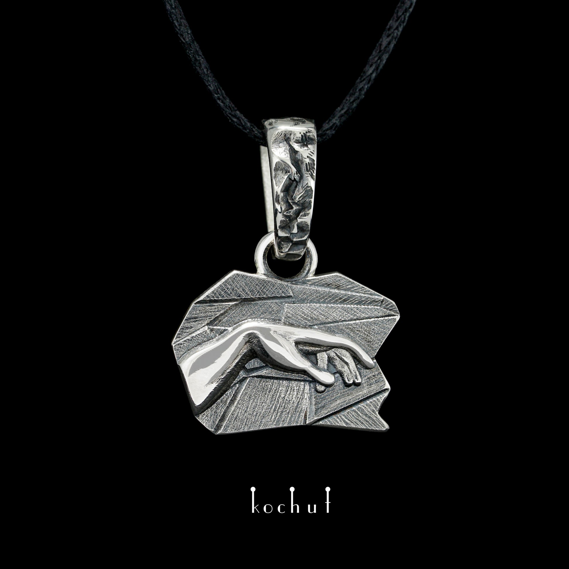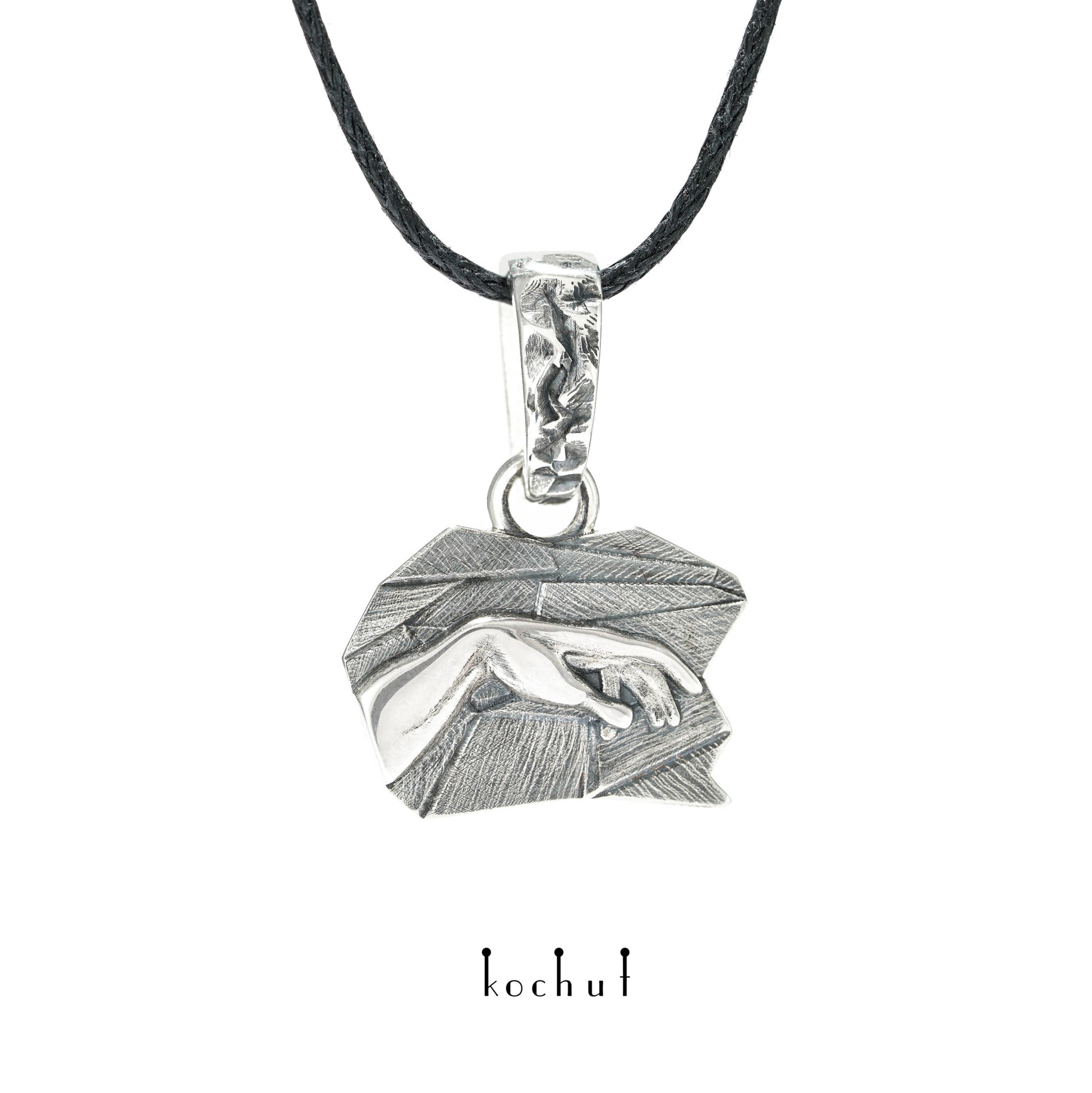 Der Doppelanhänger «Birth of Adam», basierend auf dem Gemälde von Michelangelo, besteht aus Silber mit oxidierter Beschichtung und ist ein Kunstwerk für sich.