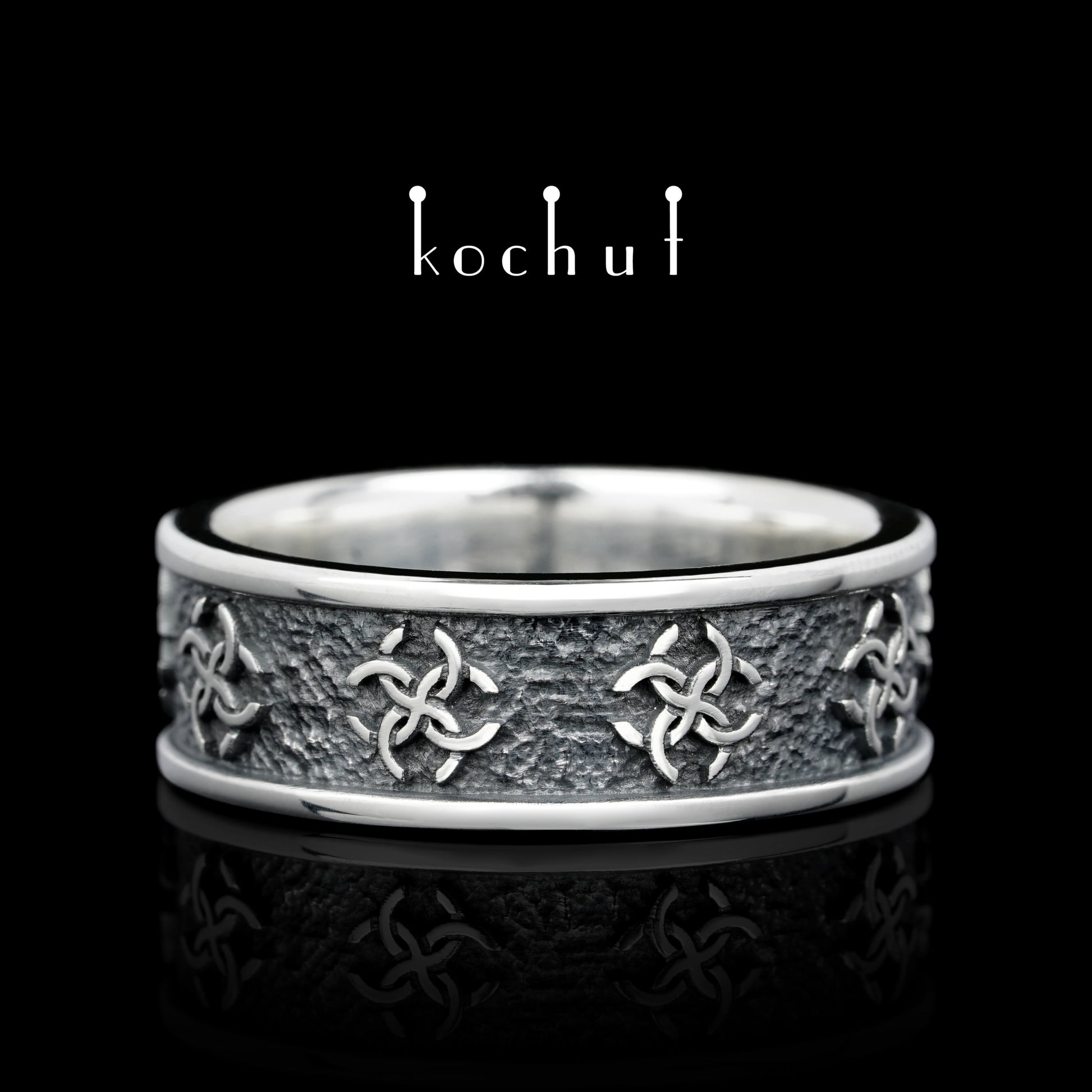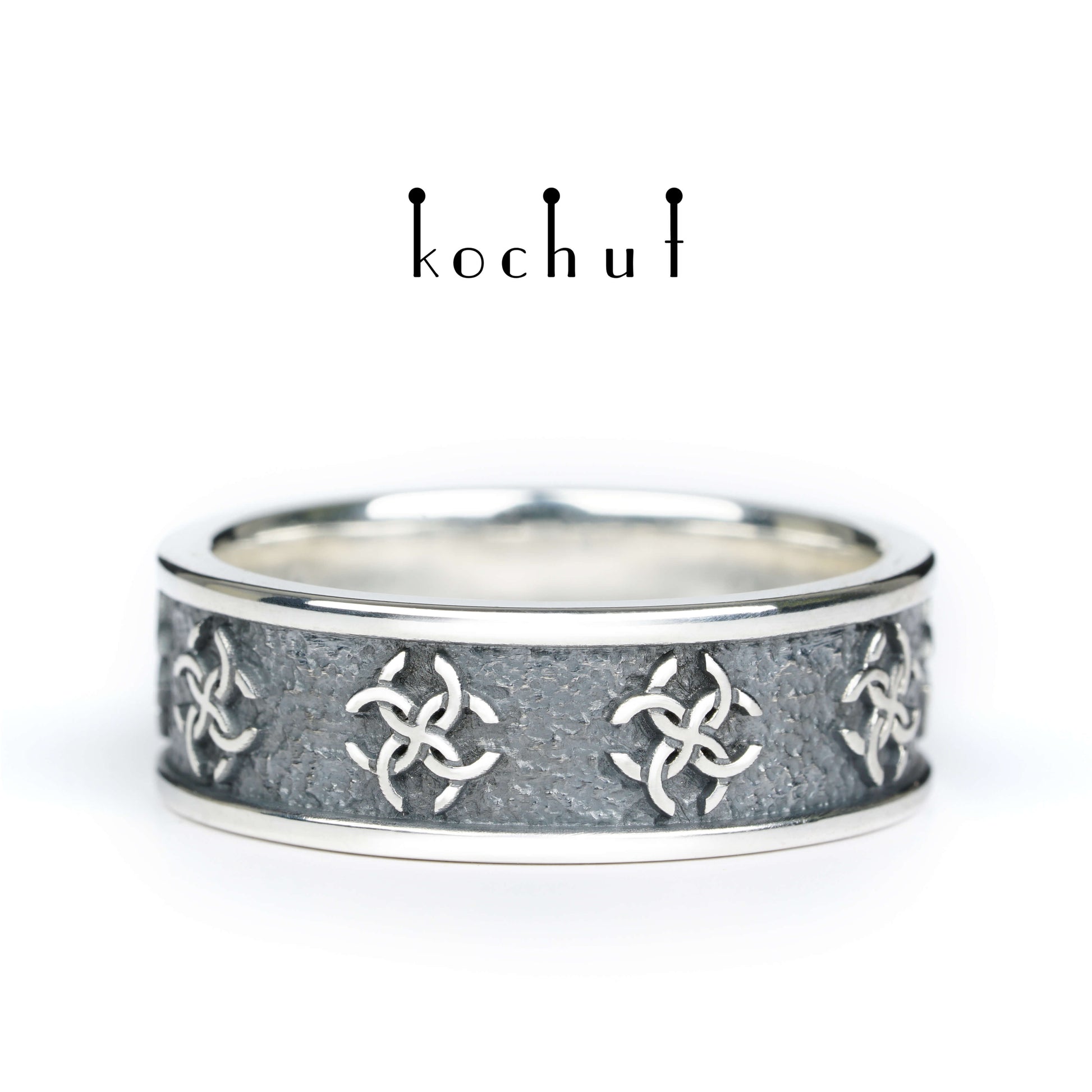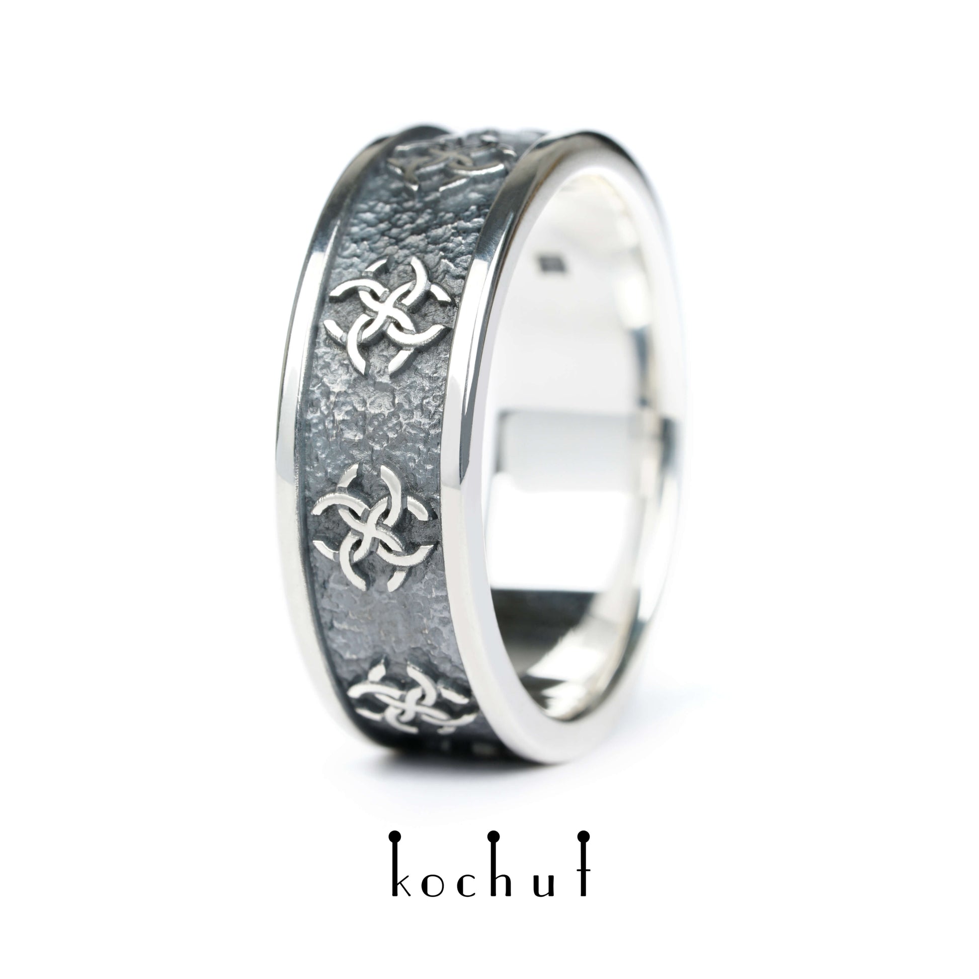 Ein kraftvolles Energiesymbol finden Sie auf dem Ehering aus unserer Kollektion „Genus-Amulett“. Es verleiht Ihnen Selbstvertrauen, wird zum Symbol eines familiären Herdes und gegenseitigen Vertrauens. Das slawische Symbol verkörpert die Verschmelzung der weiblichen und männlichen Elemente und hilft, harmonische Beziehungen in der Familie zu gewährleisten.