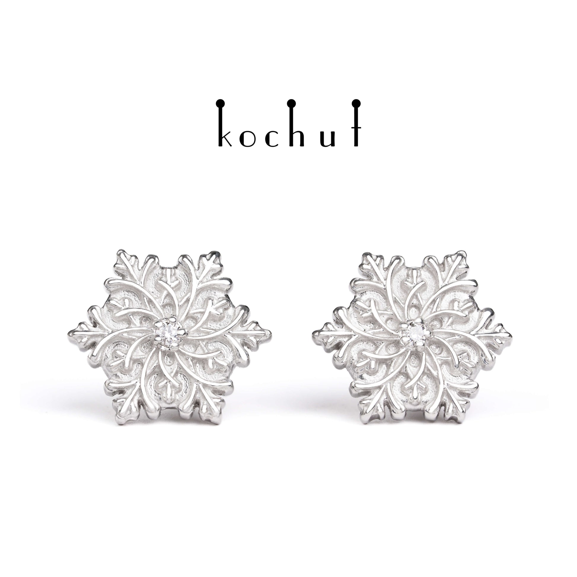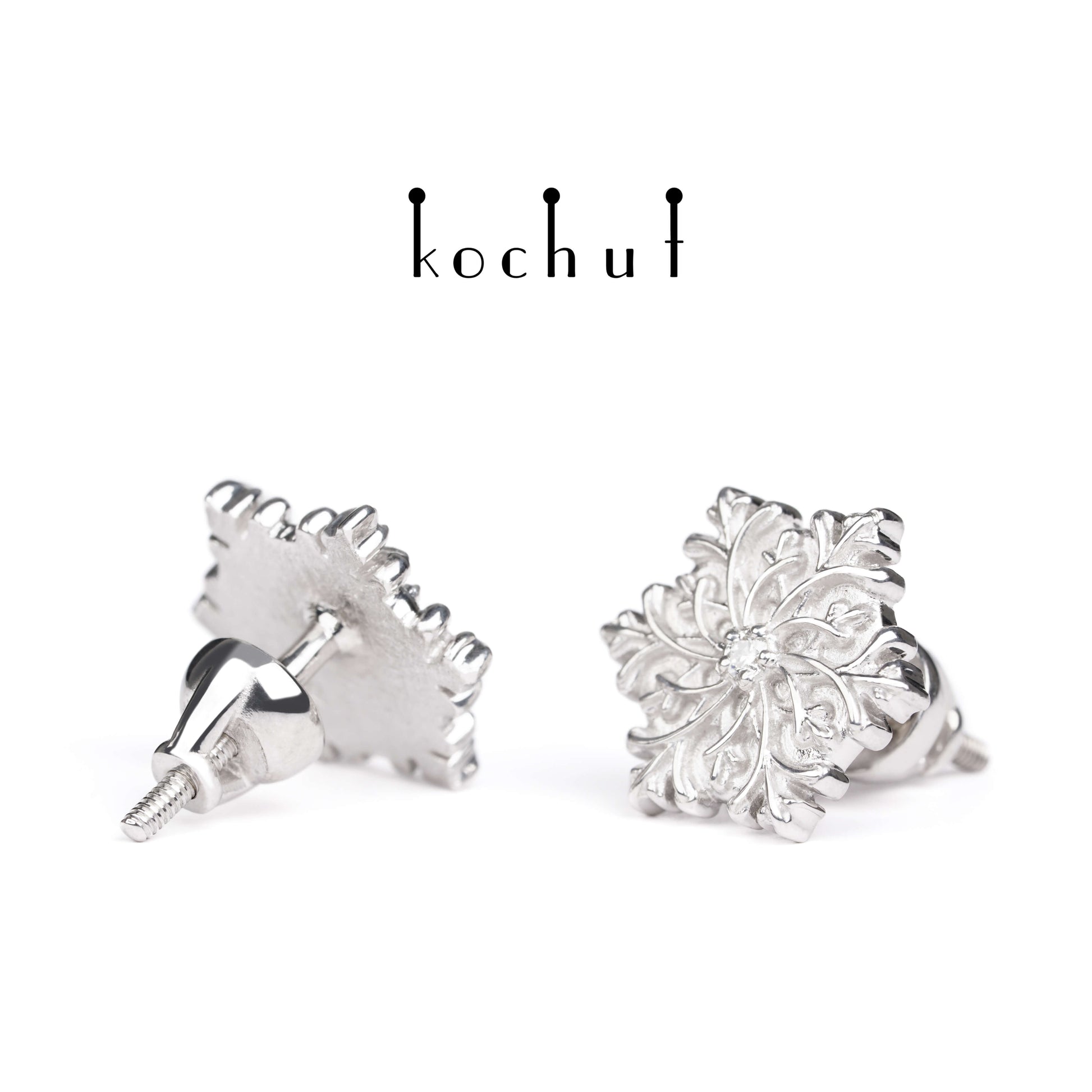 Gerda's Berührung — Ohrringe aus Silber mit Diamanten, überzogen mit weißem Rhodium