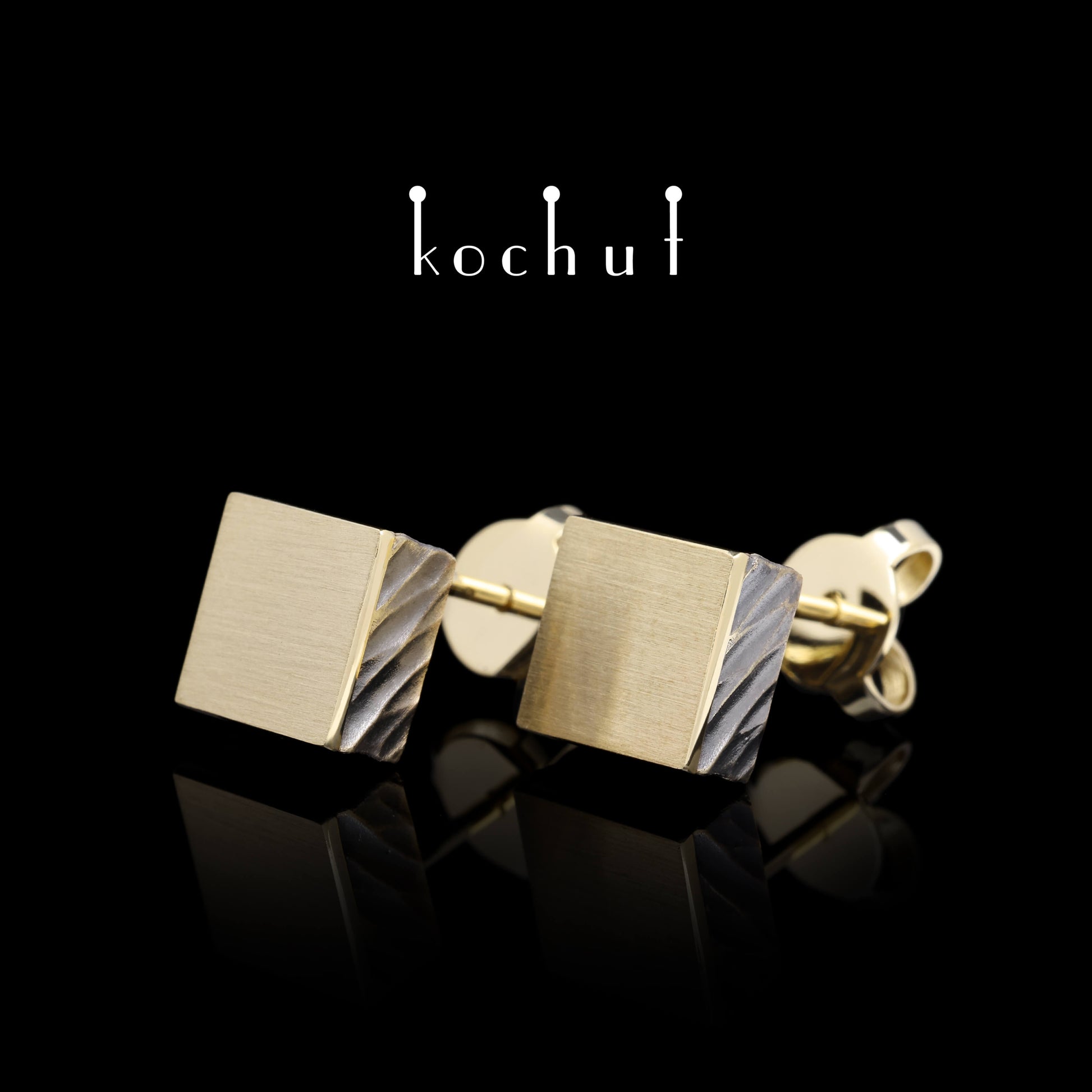 Golden Square — Ohrringe aus Gelbgold, beschichtet mit schwarzem Rhodium
