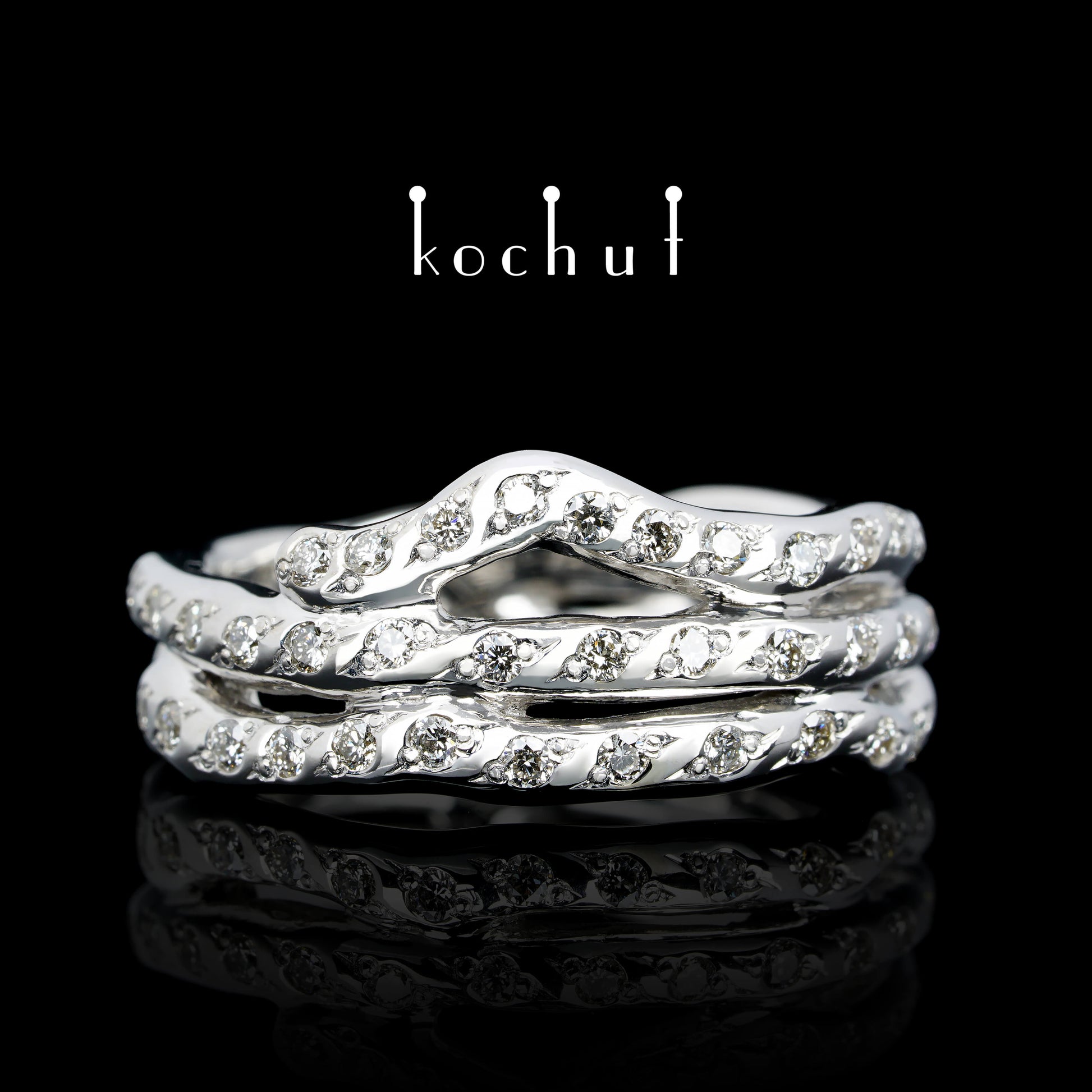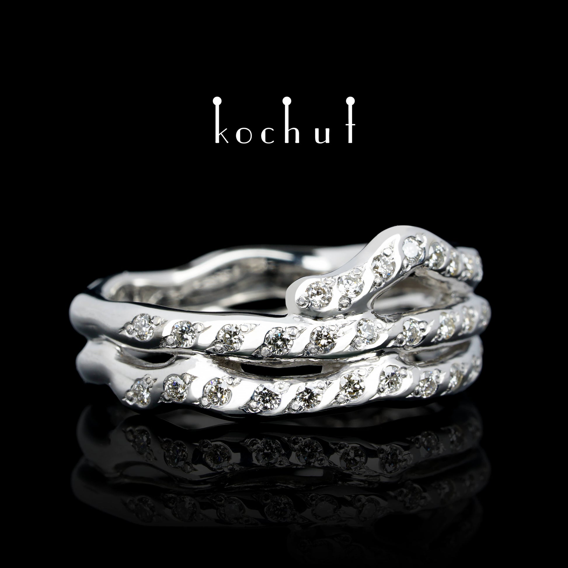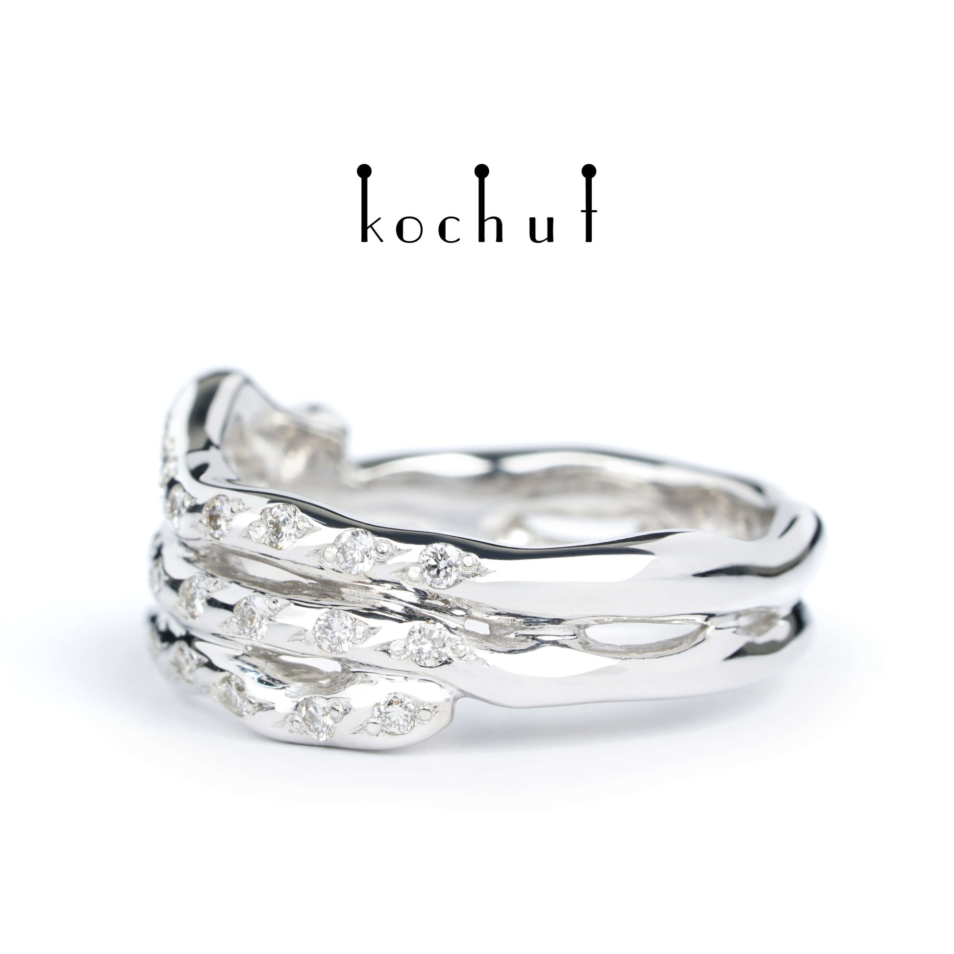Haarnadelkurve — Ring aus Weißgold mit Diamanten, platiert mit weißem Rhodium