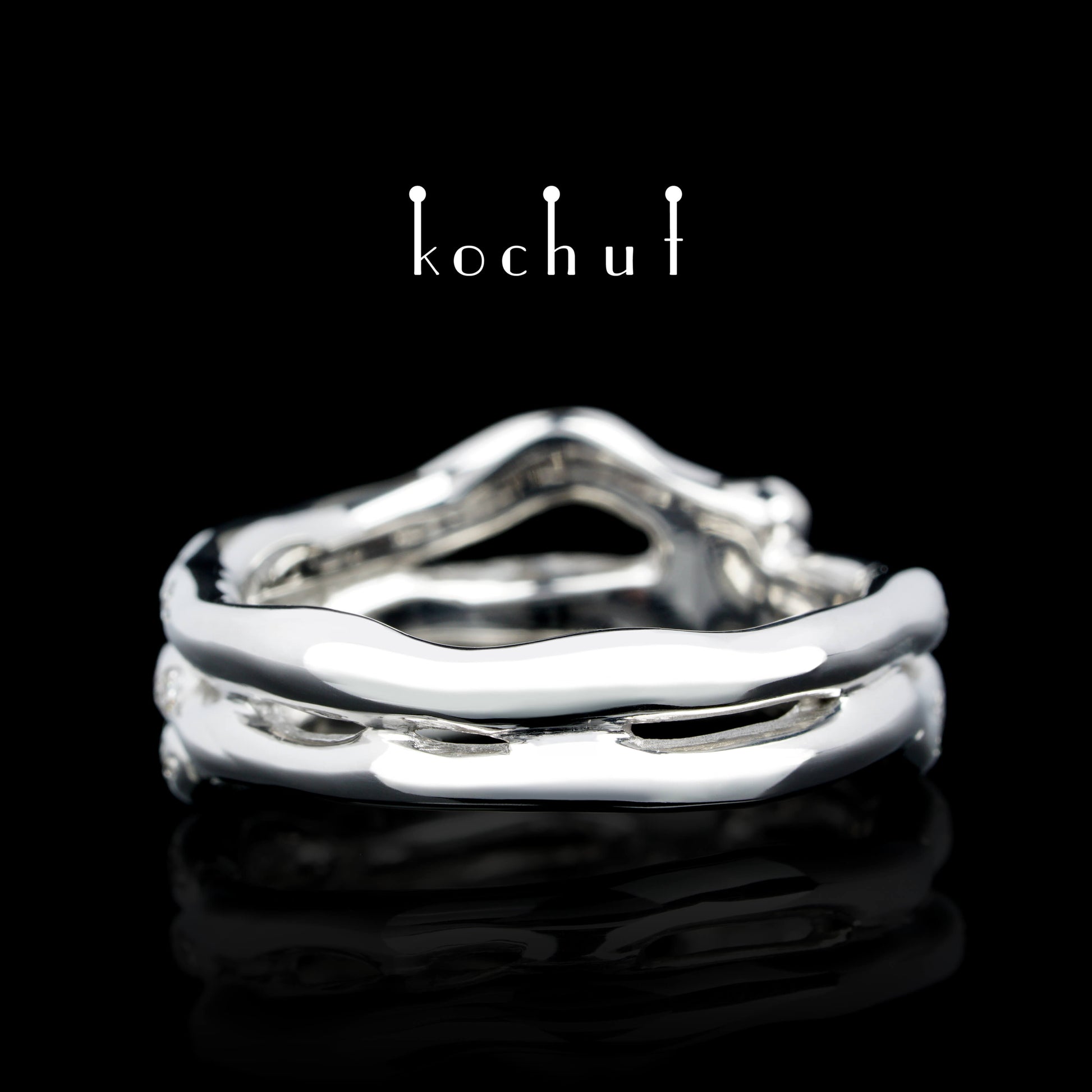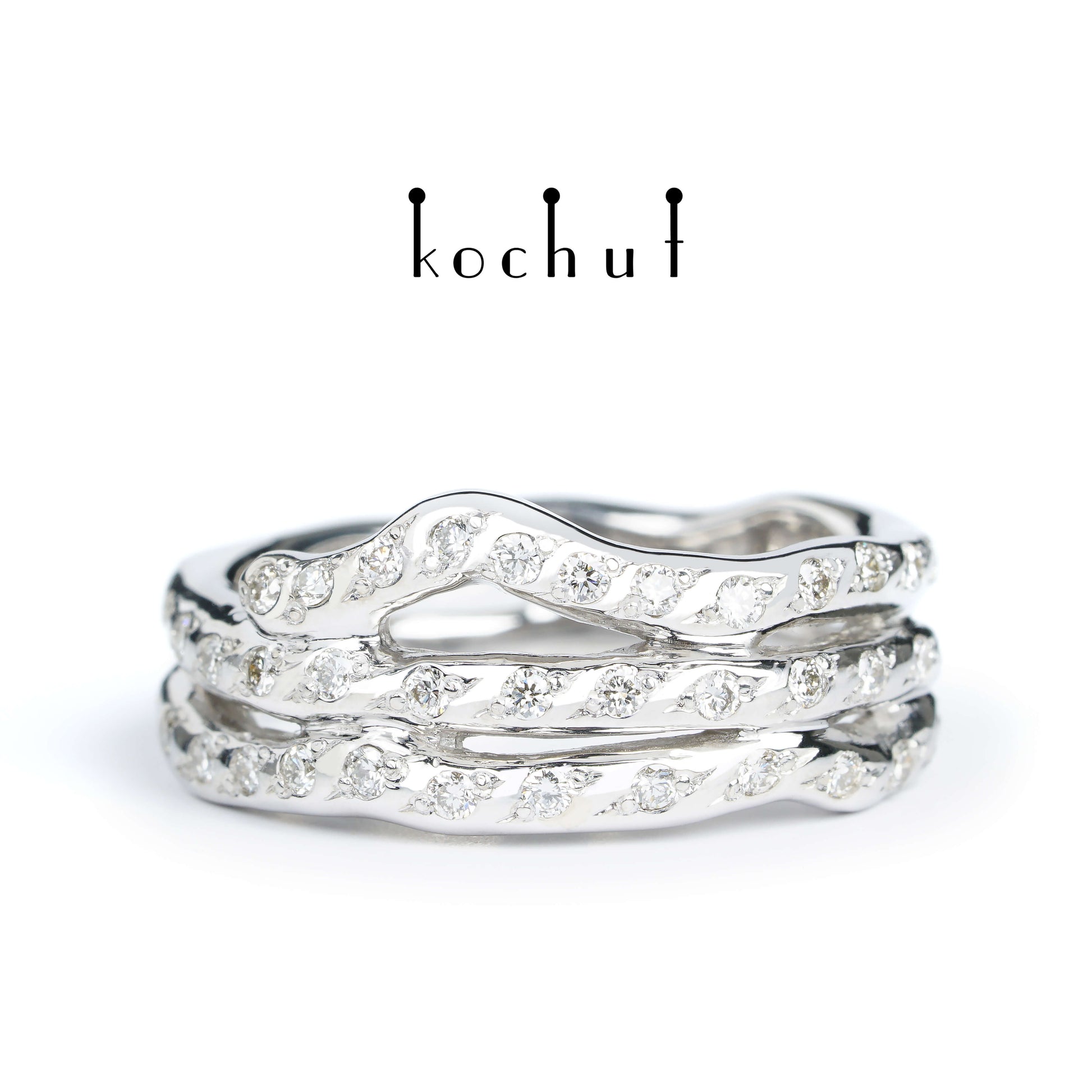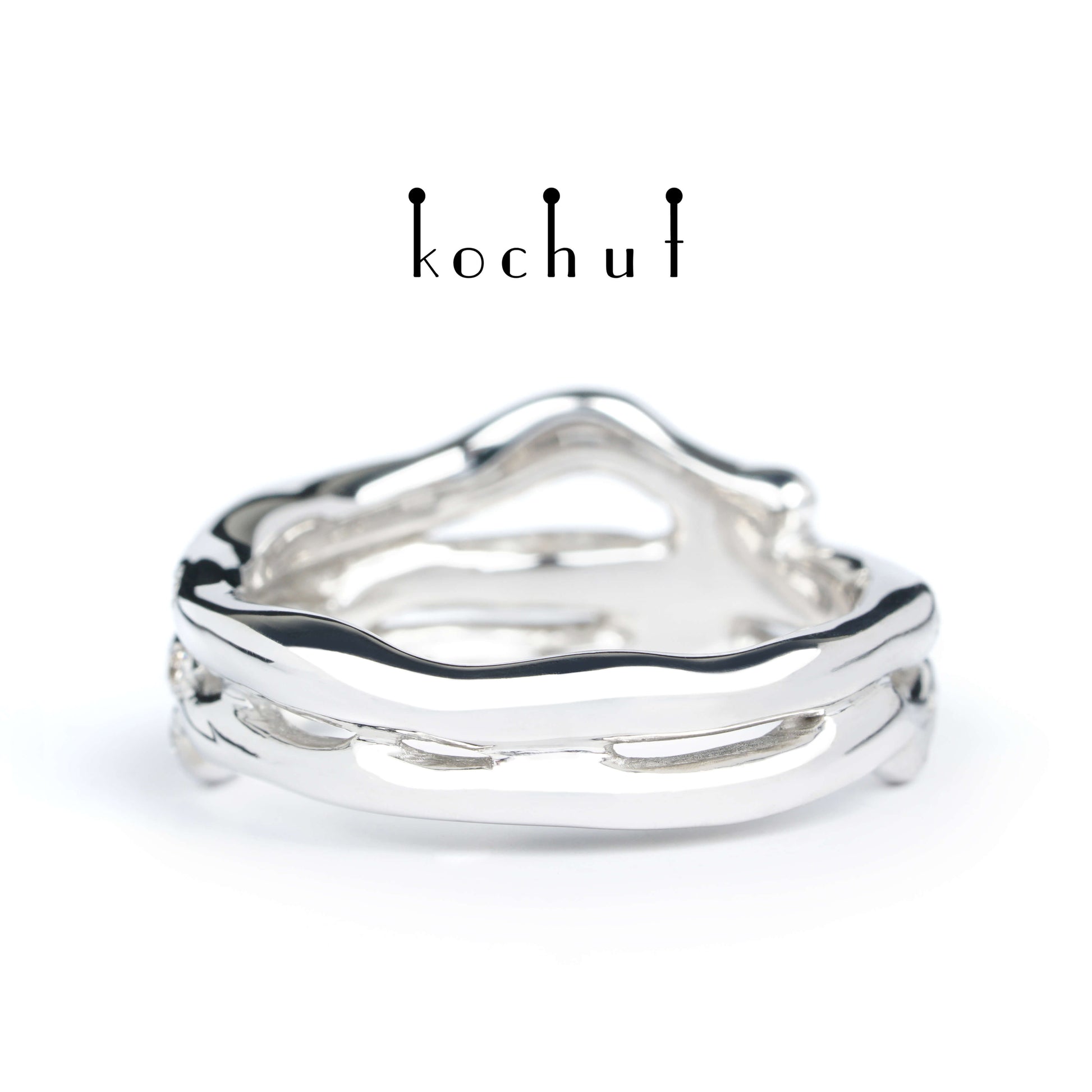 Haarnadelkurve — Ring aus Weißgold mit Diamanten, platiert mit weißem Rhodium