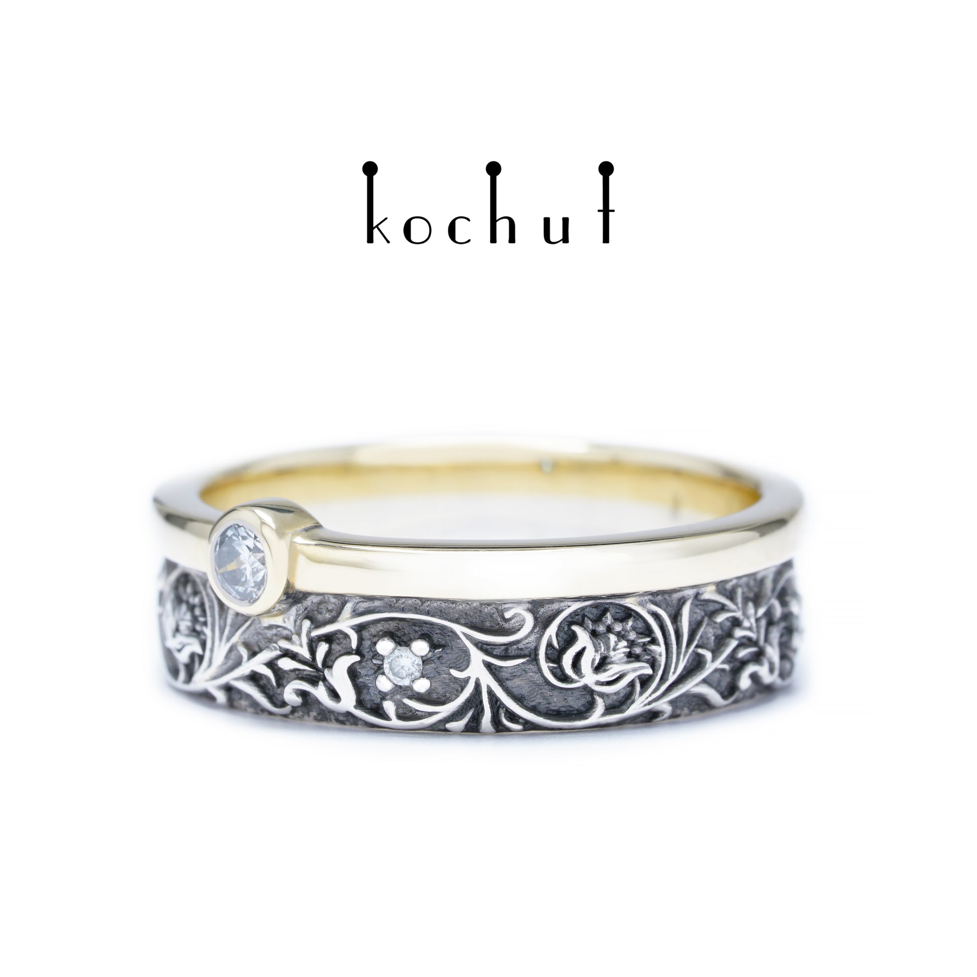 Harmonie der Natur — ein Ring aus Silber und Gelbgold mit Diamanten, überzogen mit schwarzem Rhodium