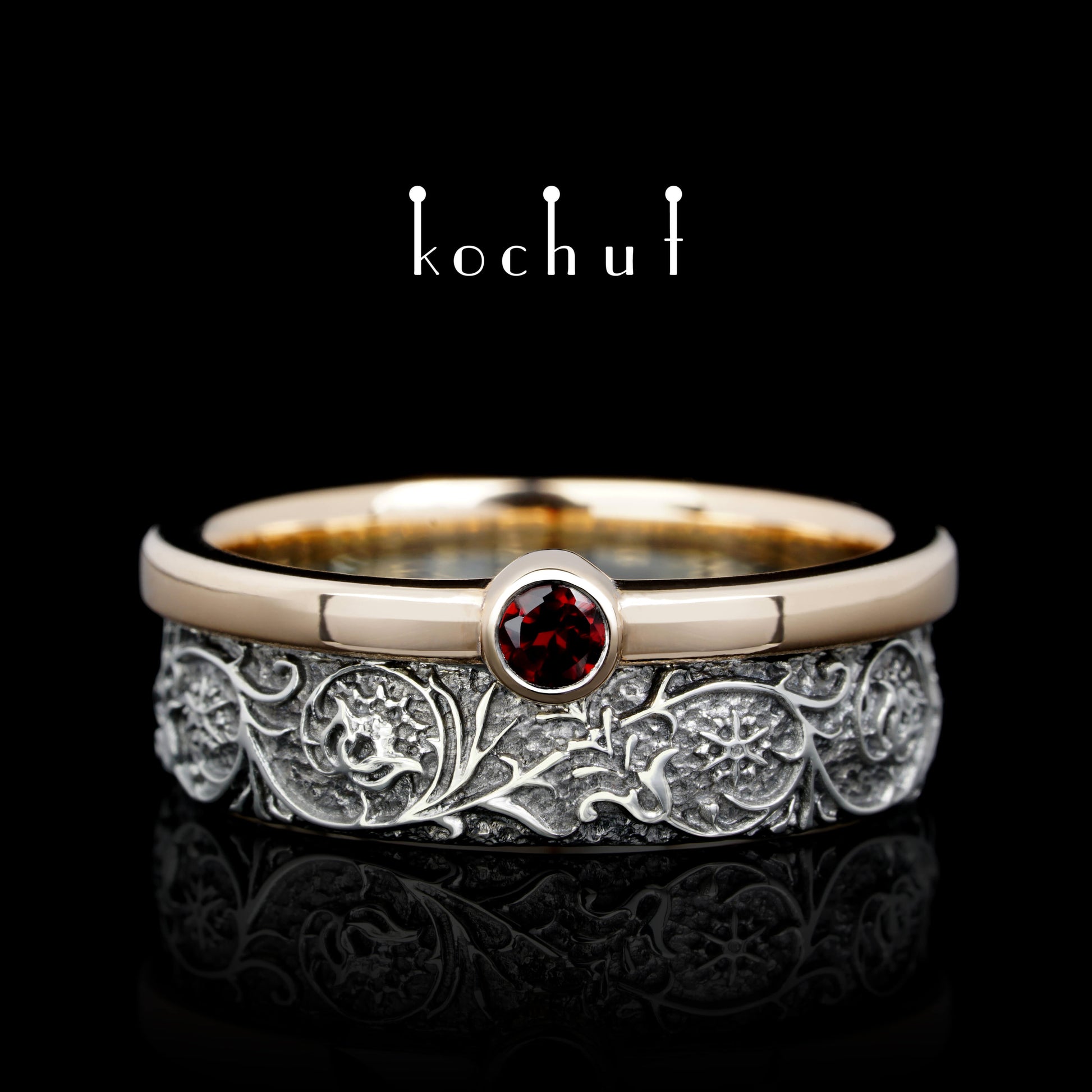 Harmonie der Natur — Ring aus Silber, Rotgold mit Granat, überzogen mit schwarzem Rhodium