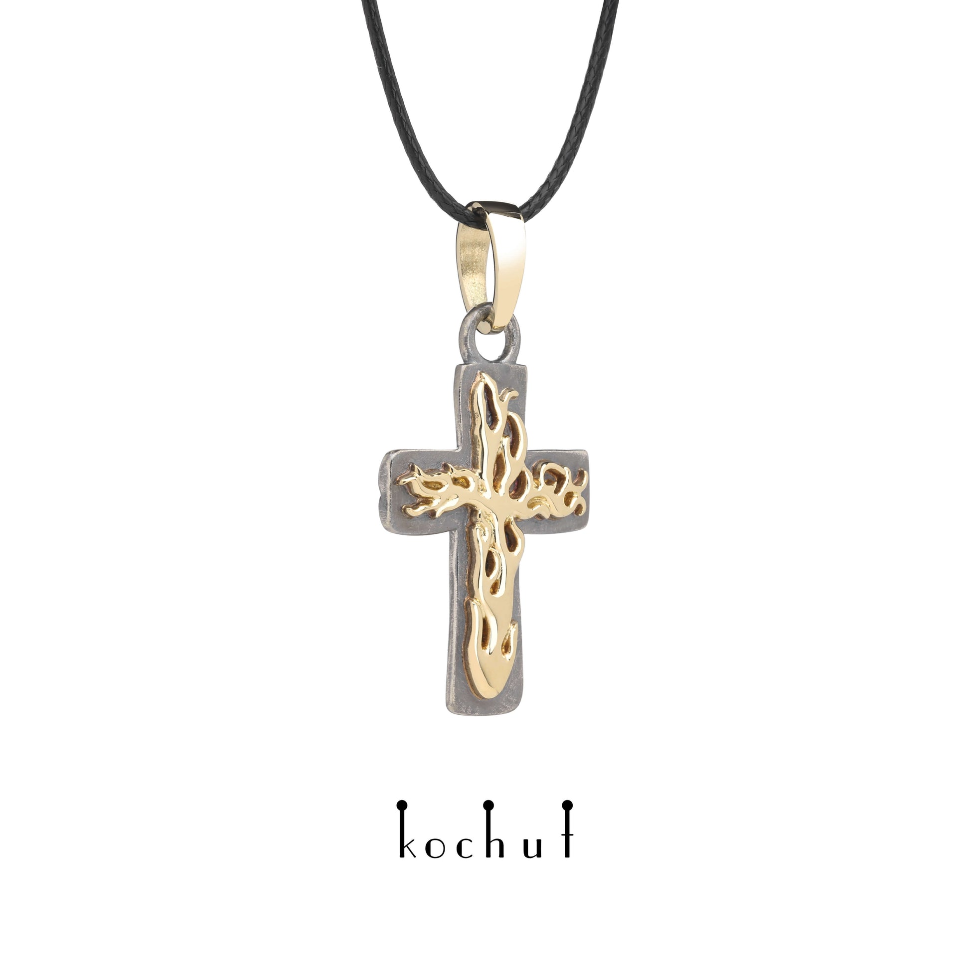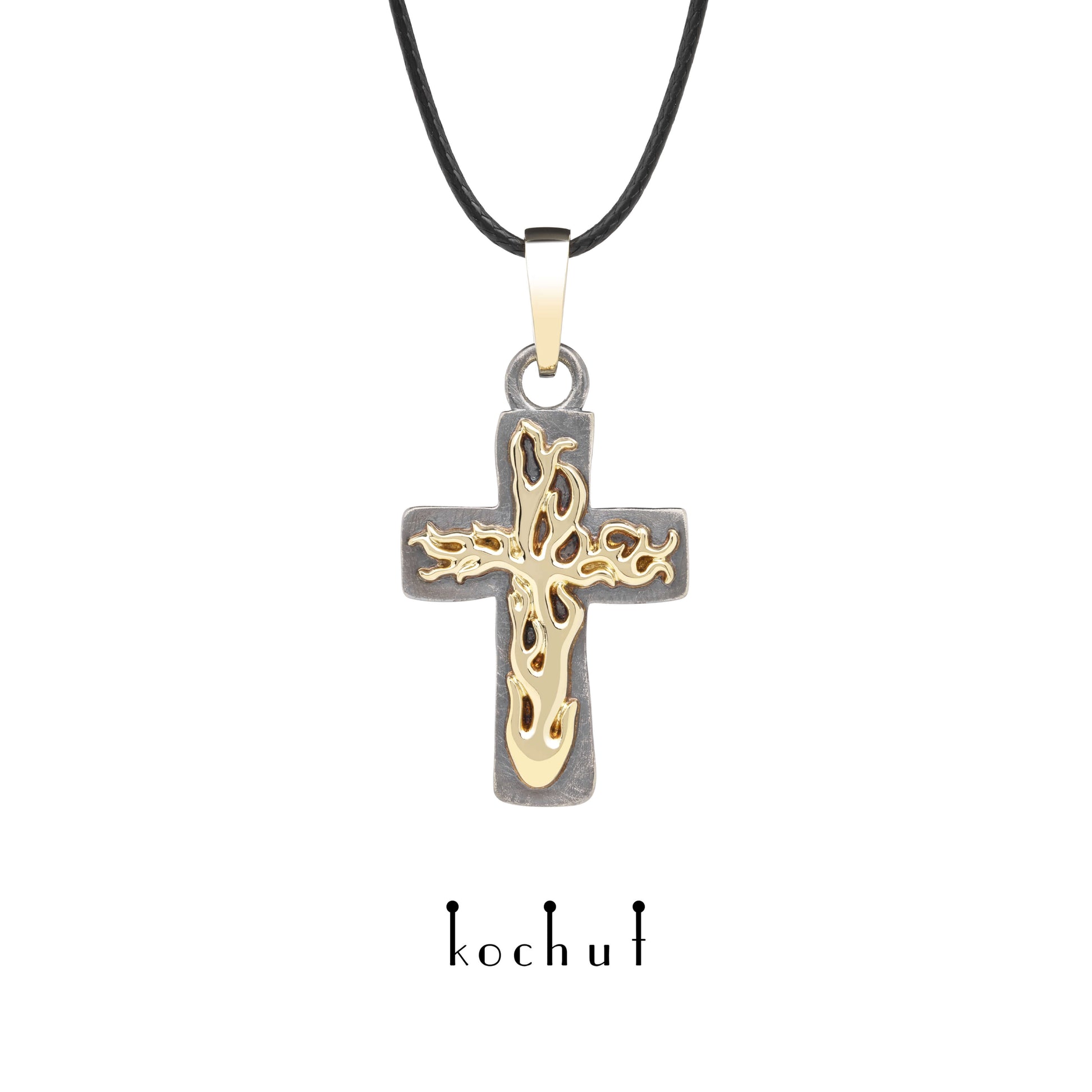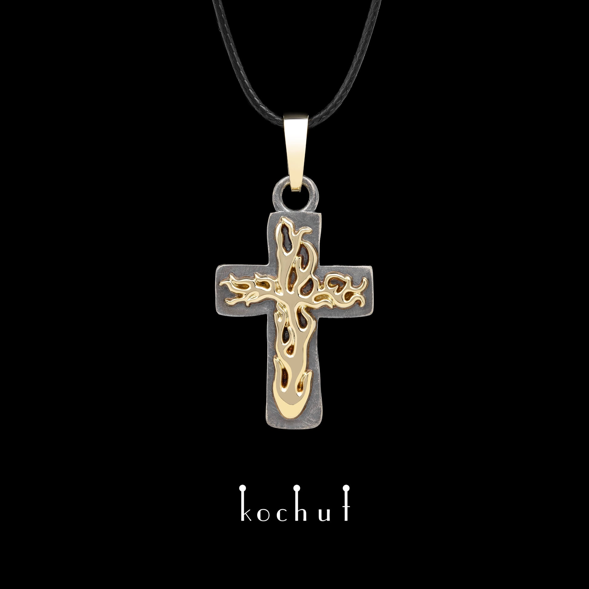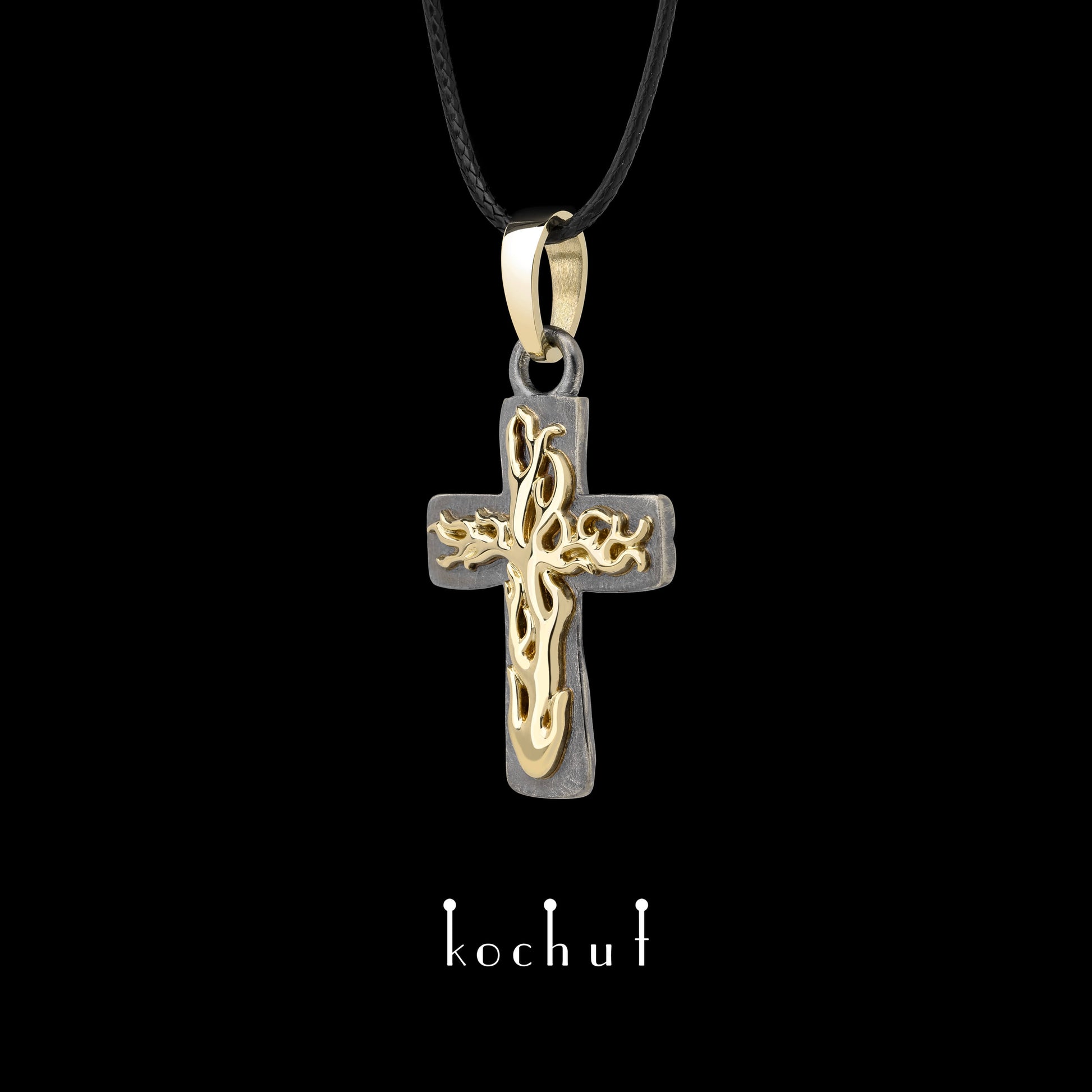 Heiliger Feuer — Kreuz aus oxidiertem Silber und Gelbgold