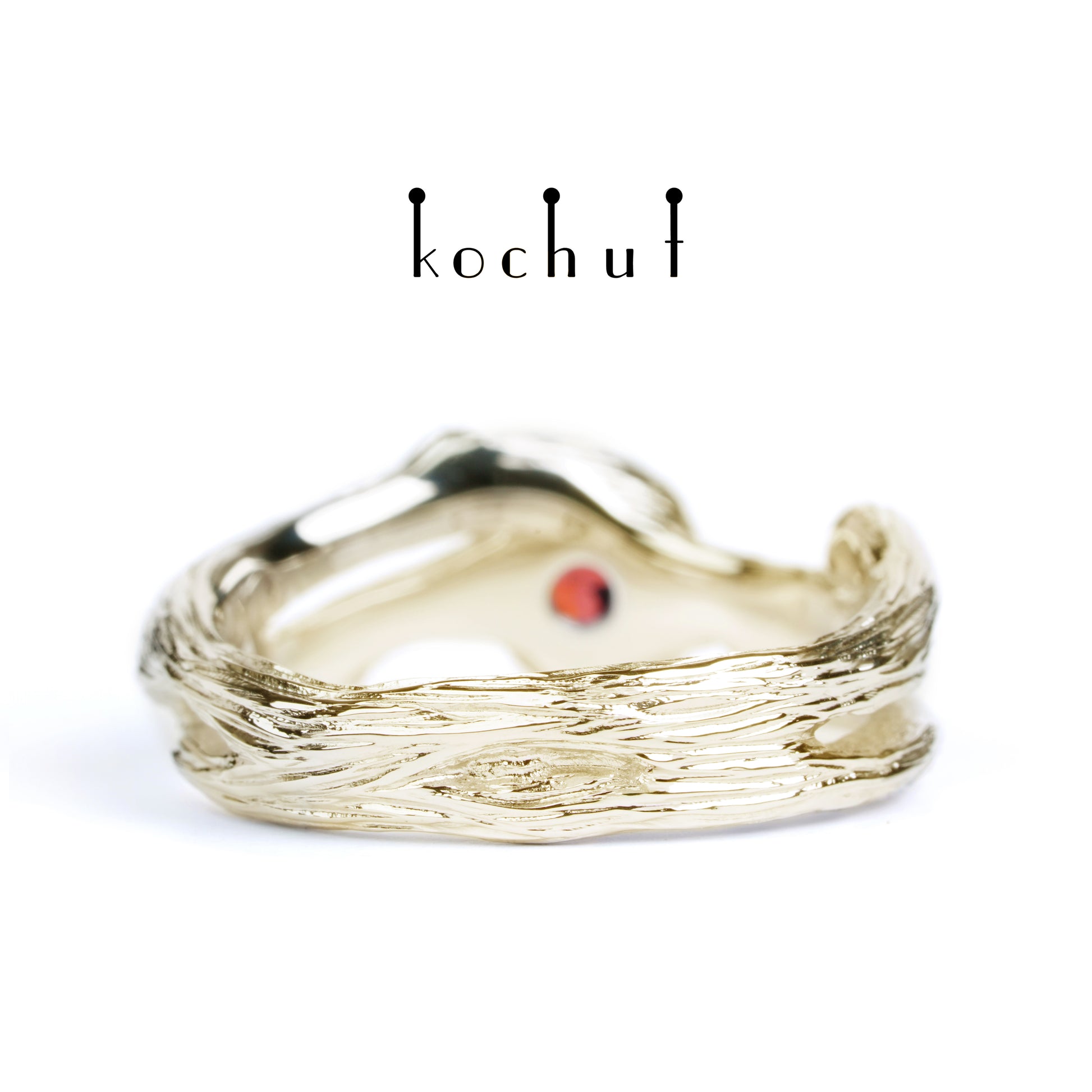 Herz des Waldes — Ring aus Gelbgold mit Granat und Diamanten