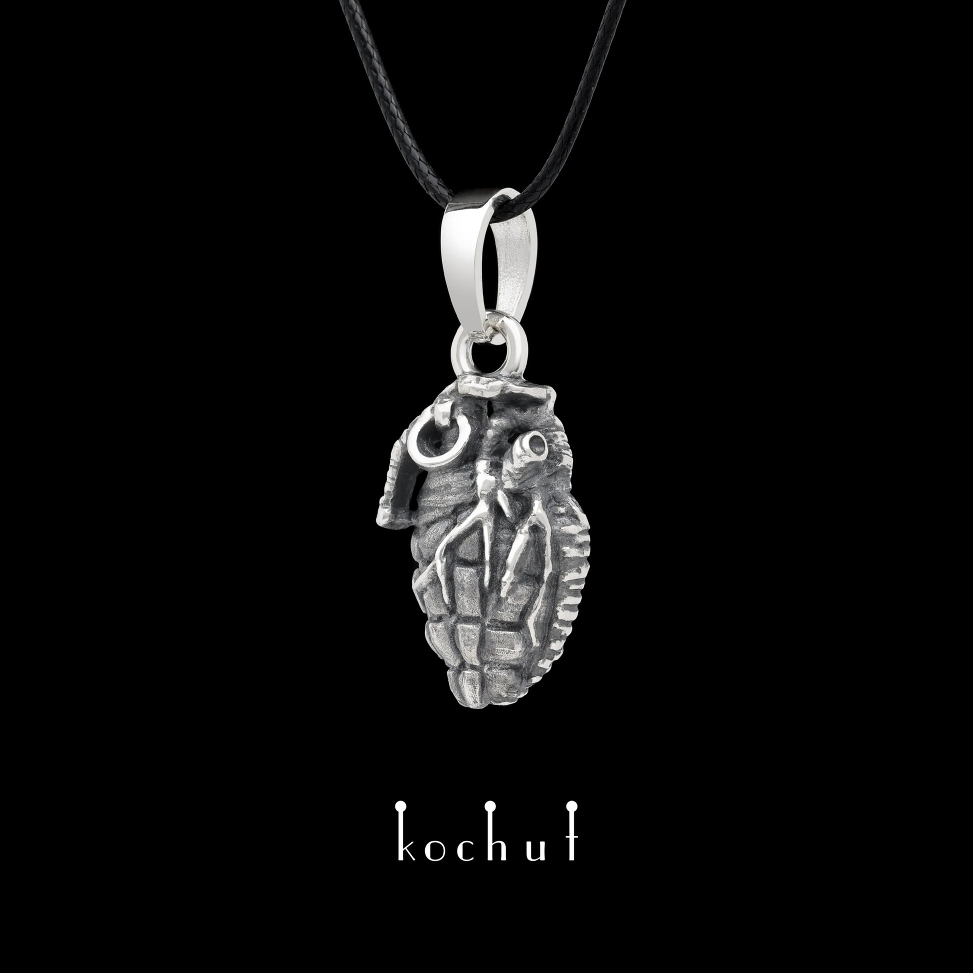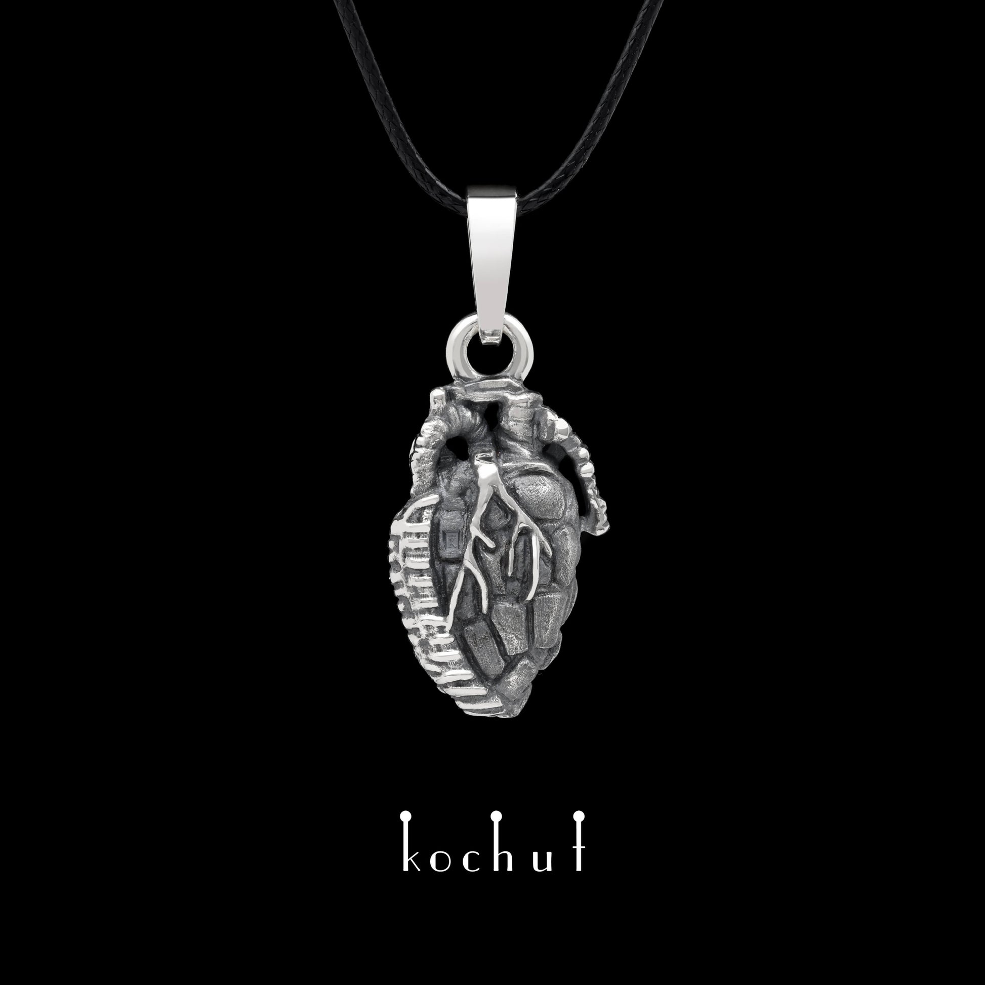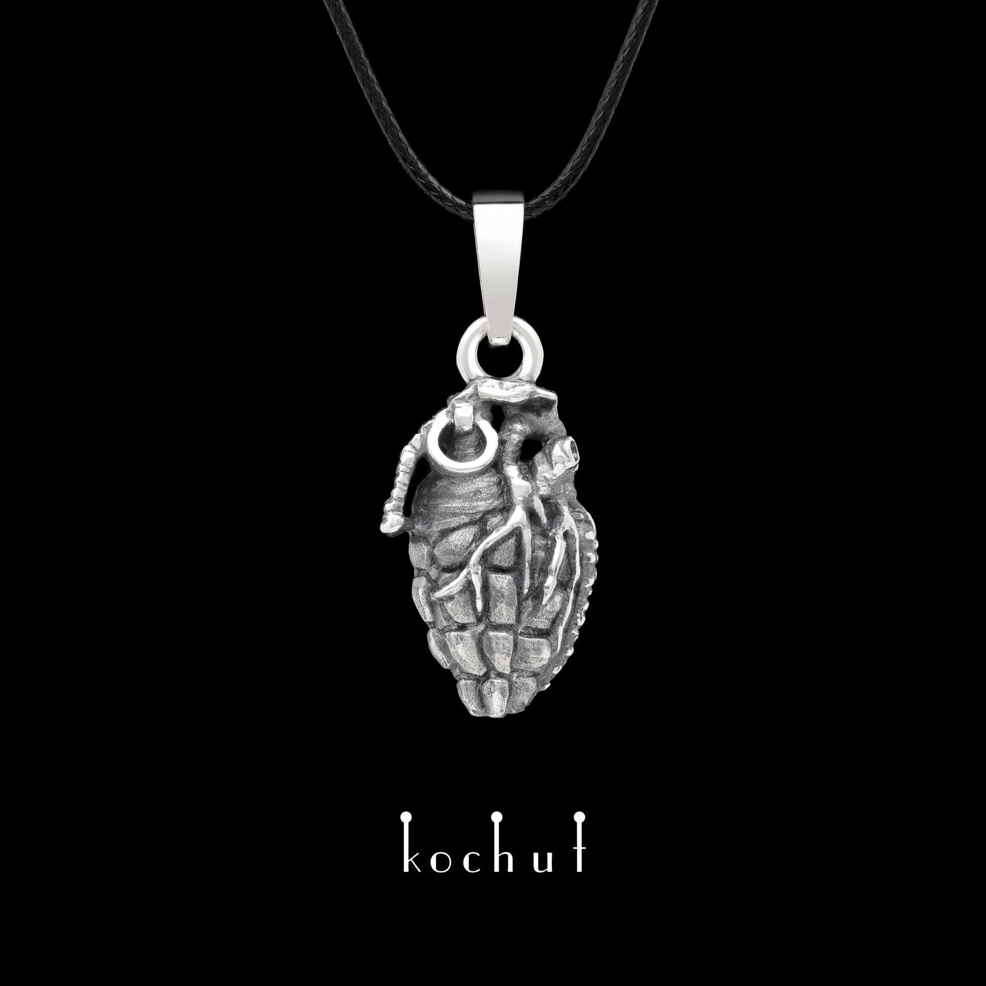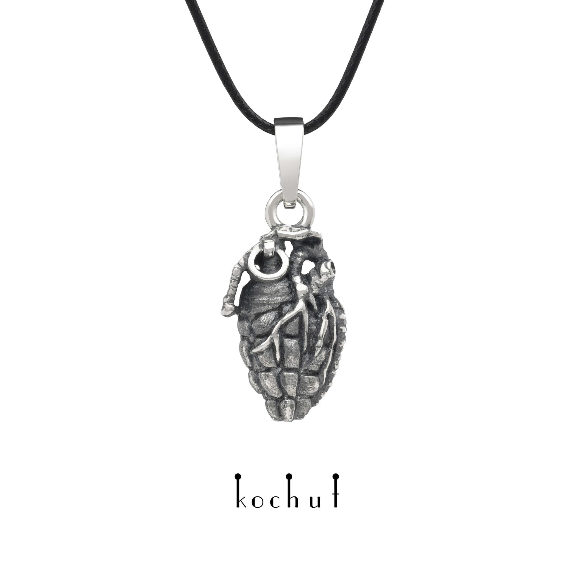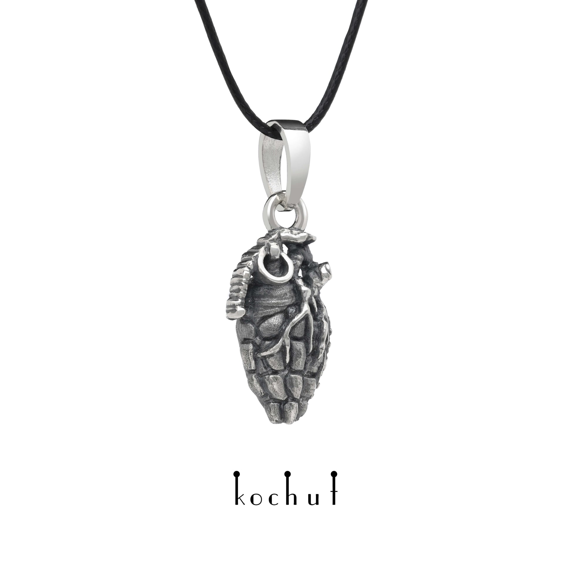 Herz-Granate — Anhänger aus oxidiertem Silber, schlägt im Takt der Streitkräfte der Ukraine