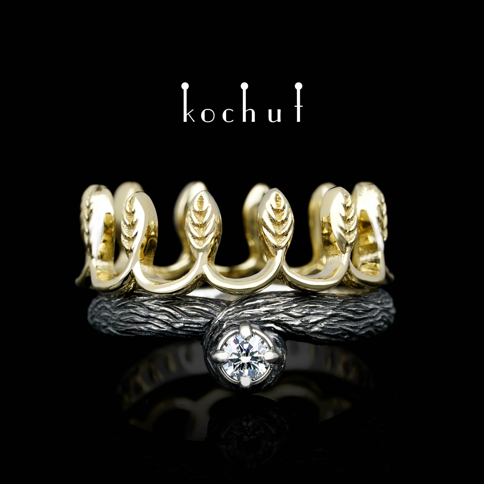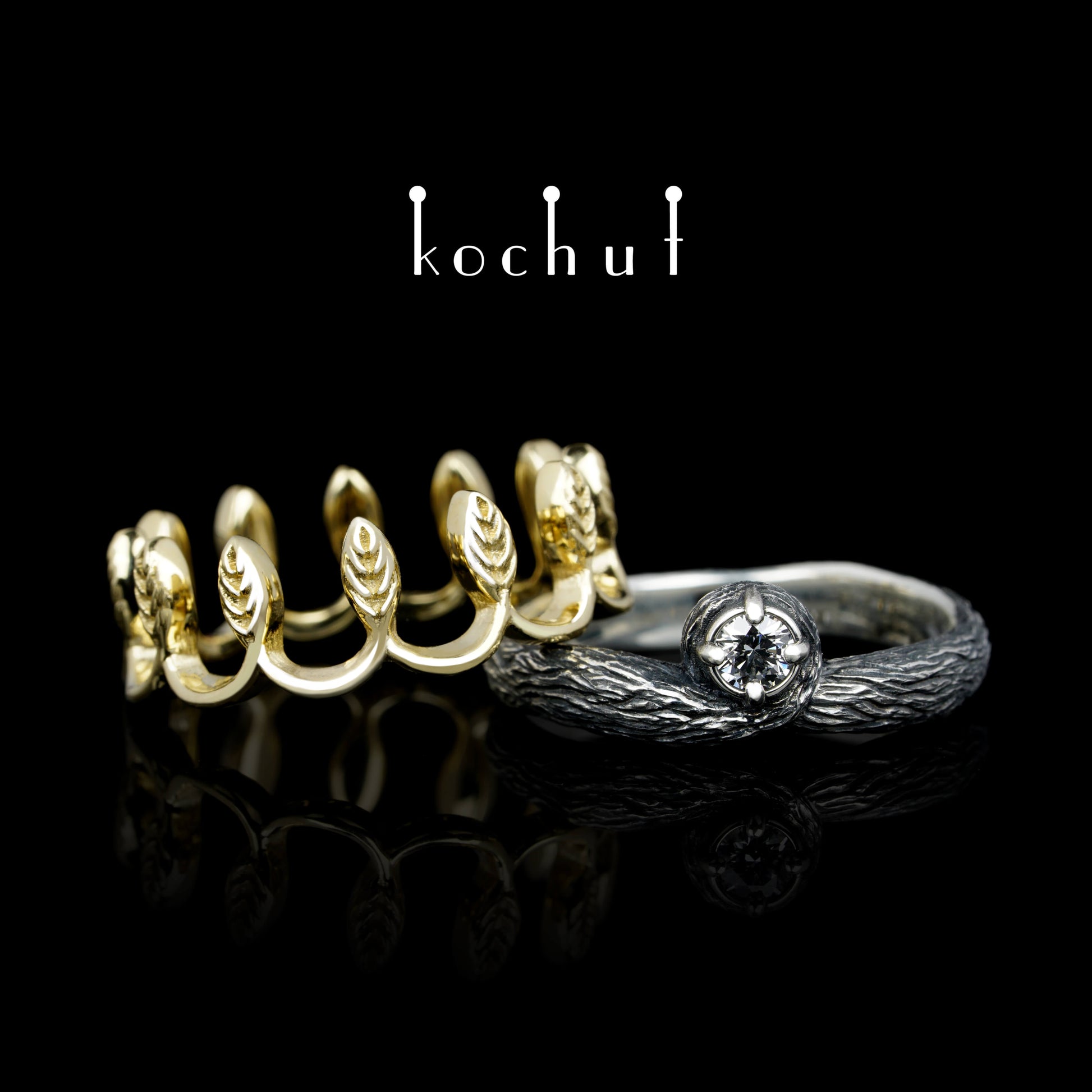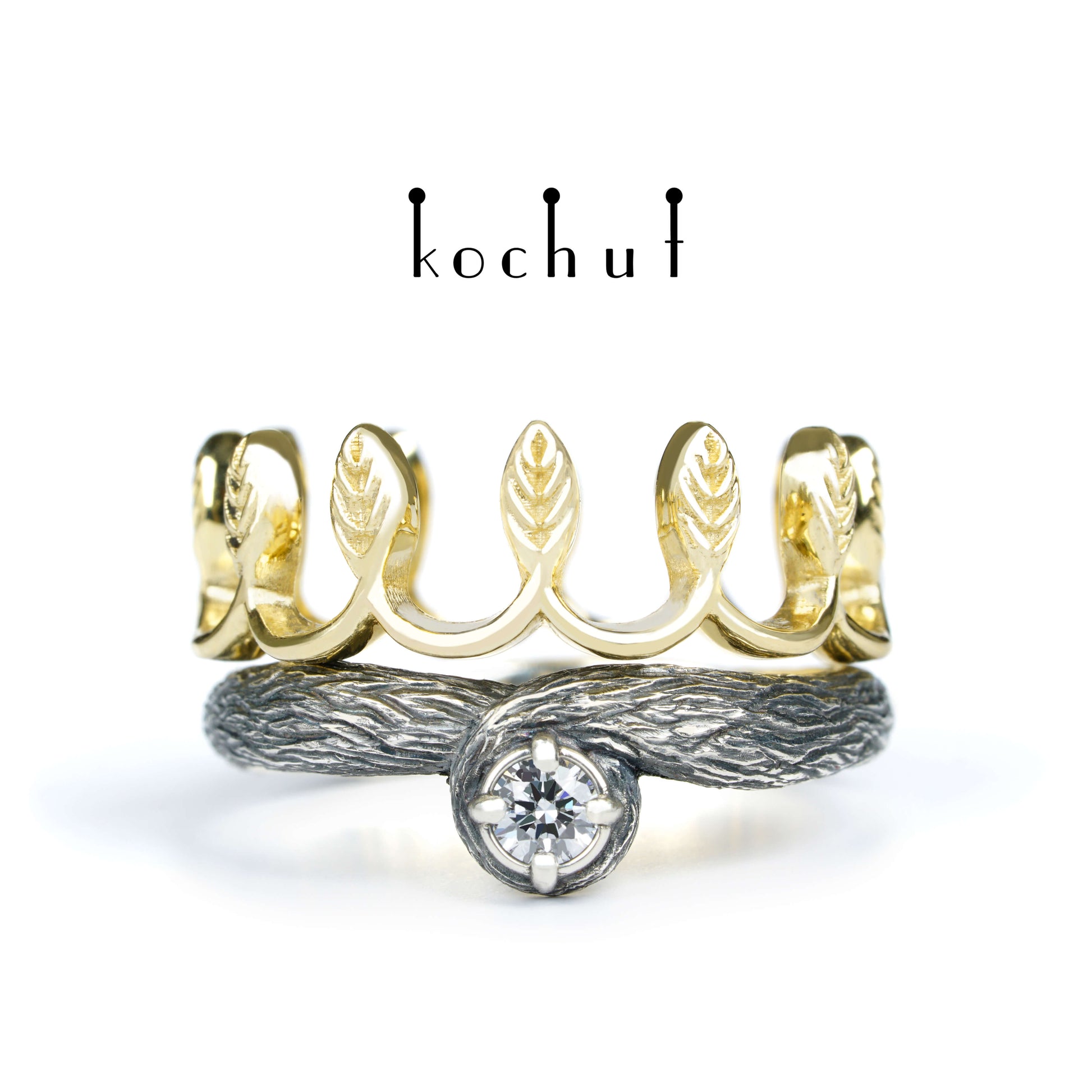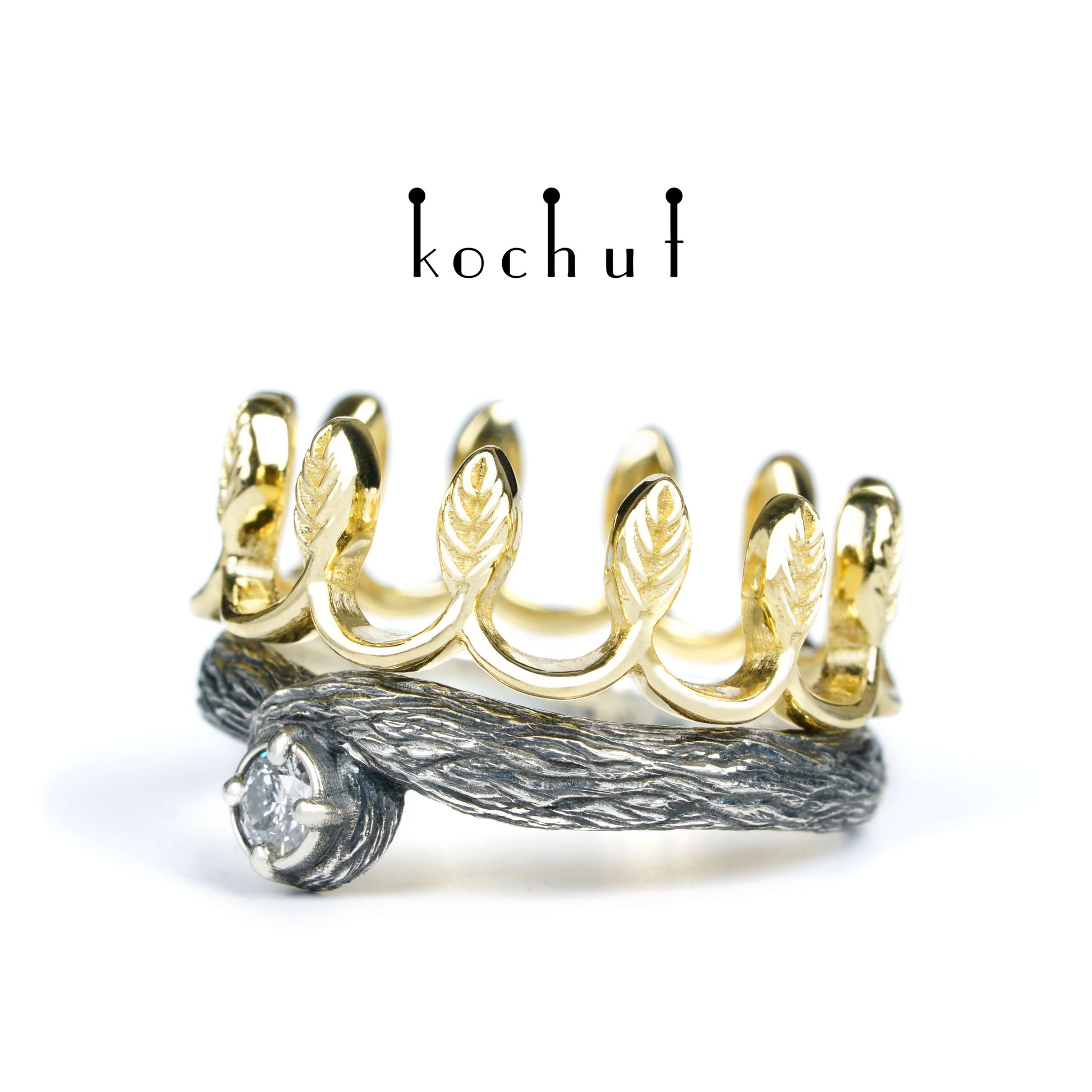Ihre Majestät — Doppelring aus oxidiertem Silber und Gelbgold mit Diamant
