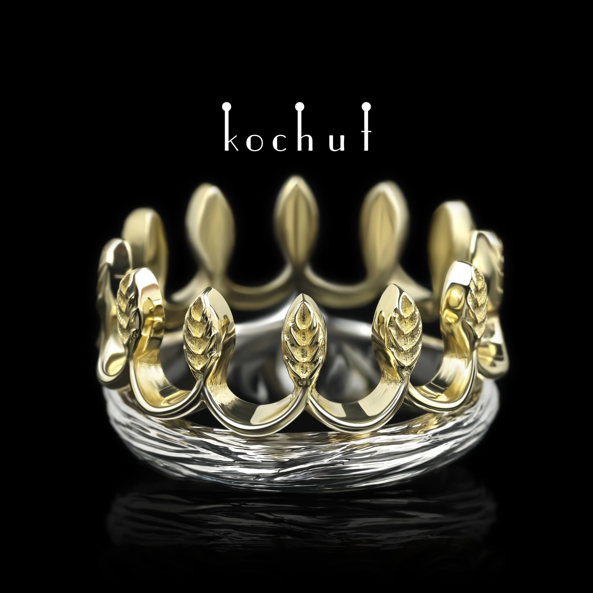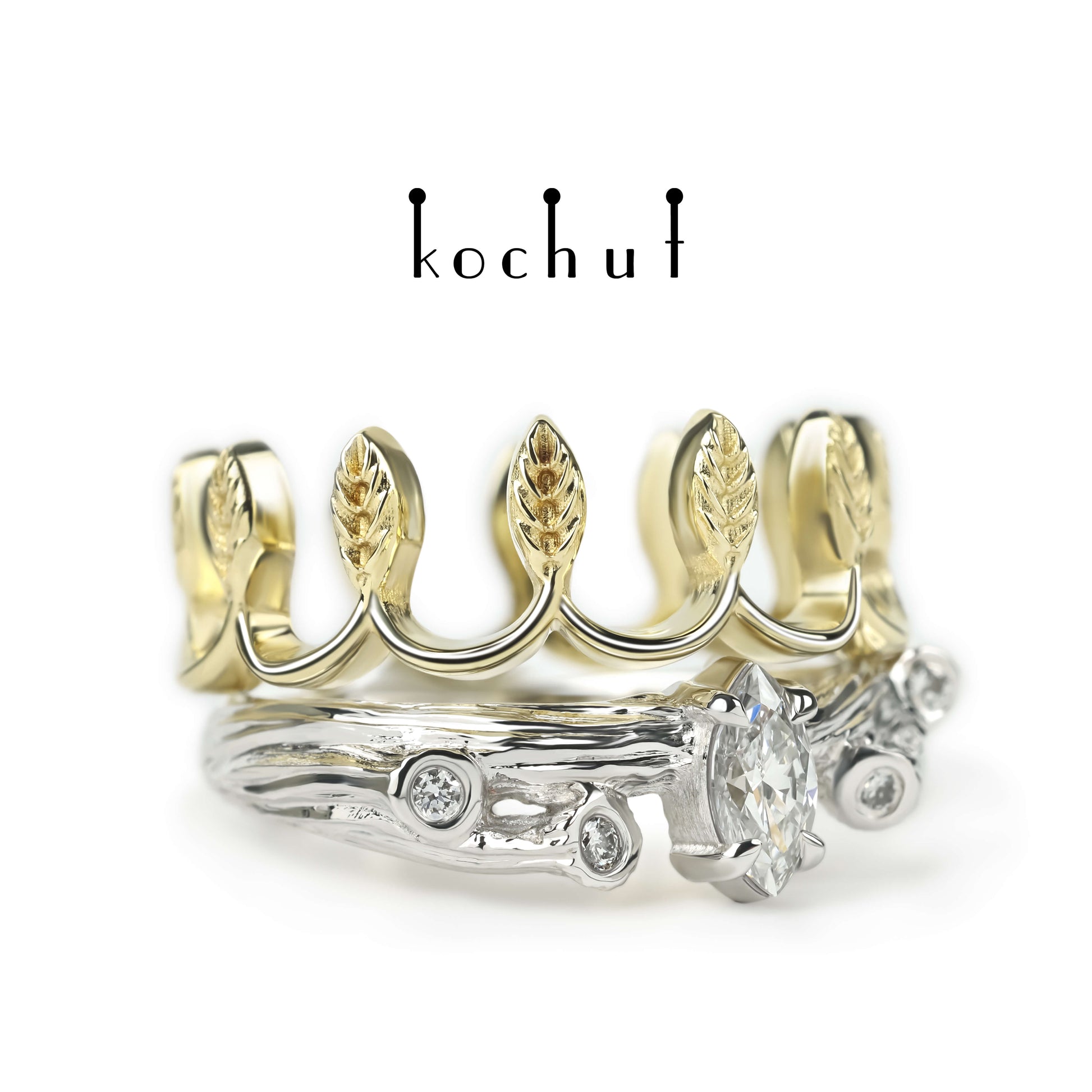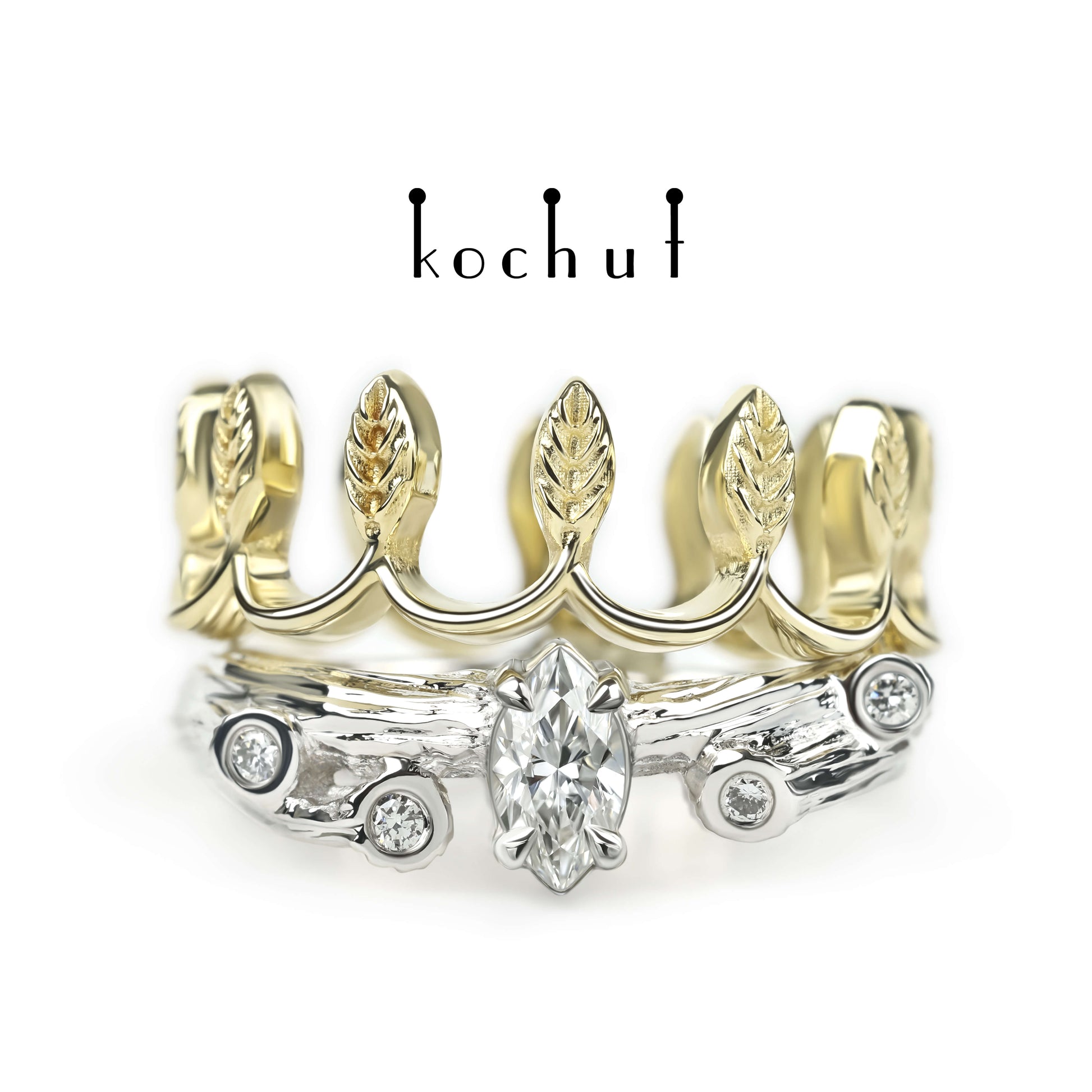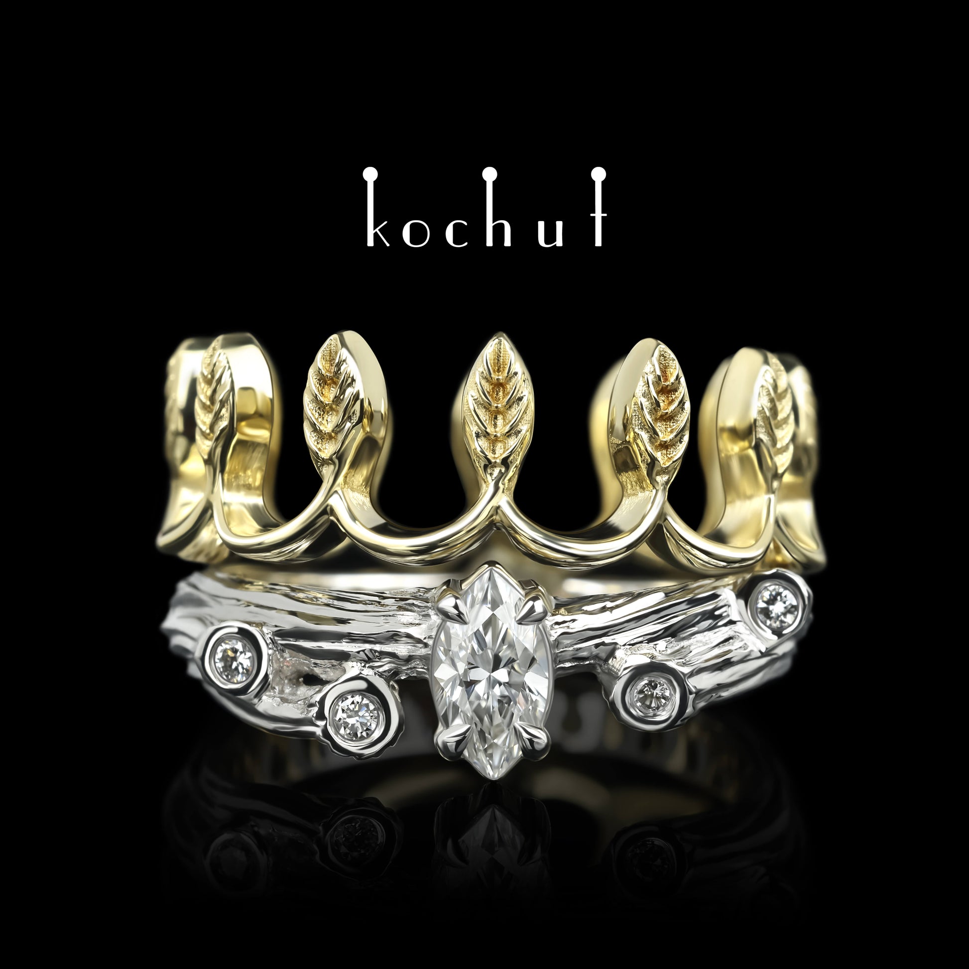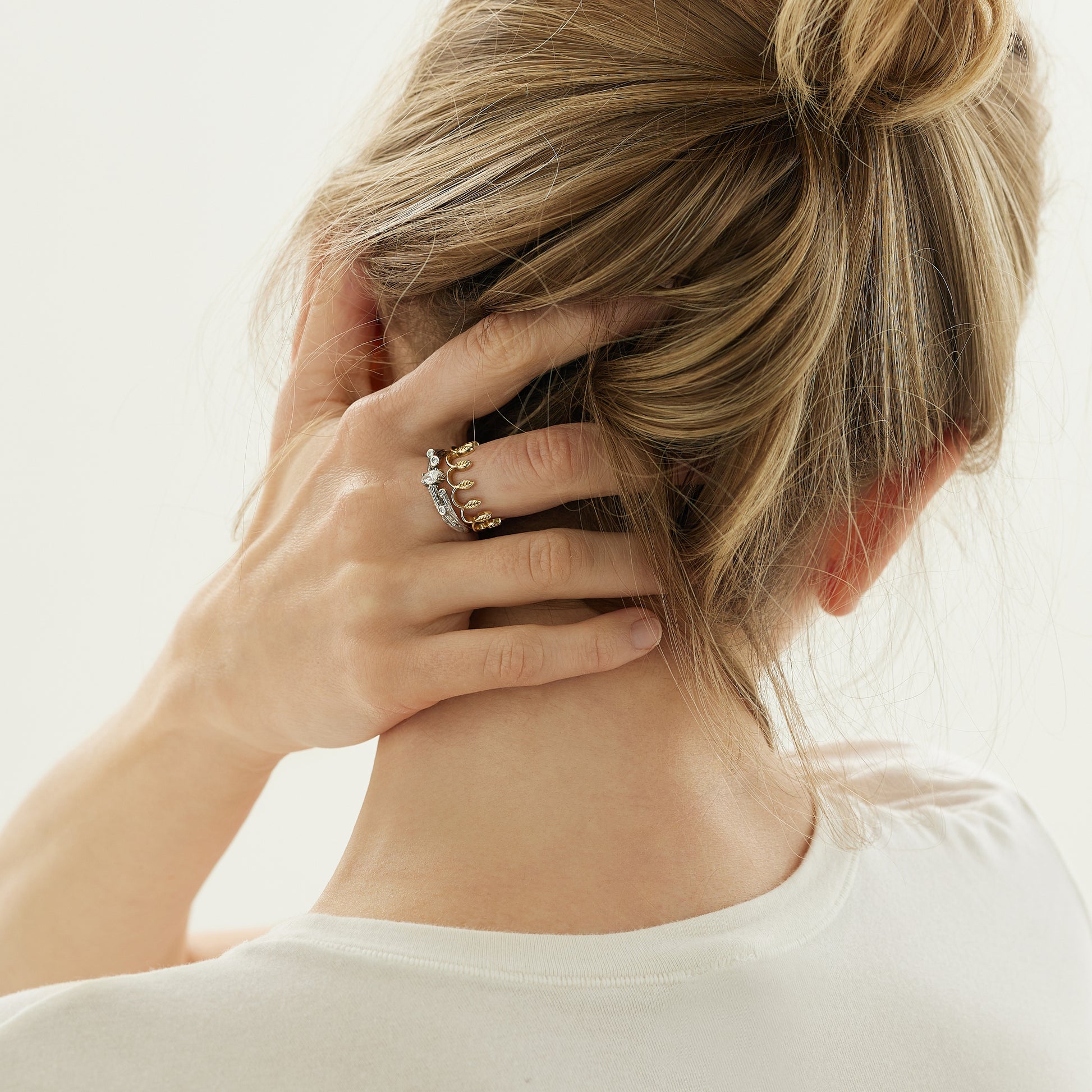 Ihre Majestät — Doppelring aus Weiß- und Gelbgold mit Diamanten, beschichtet mit weißem Rhodium