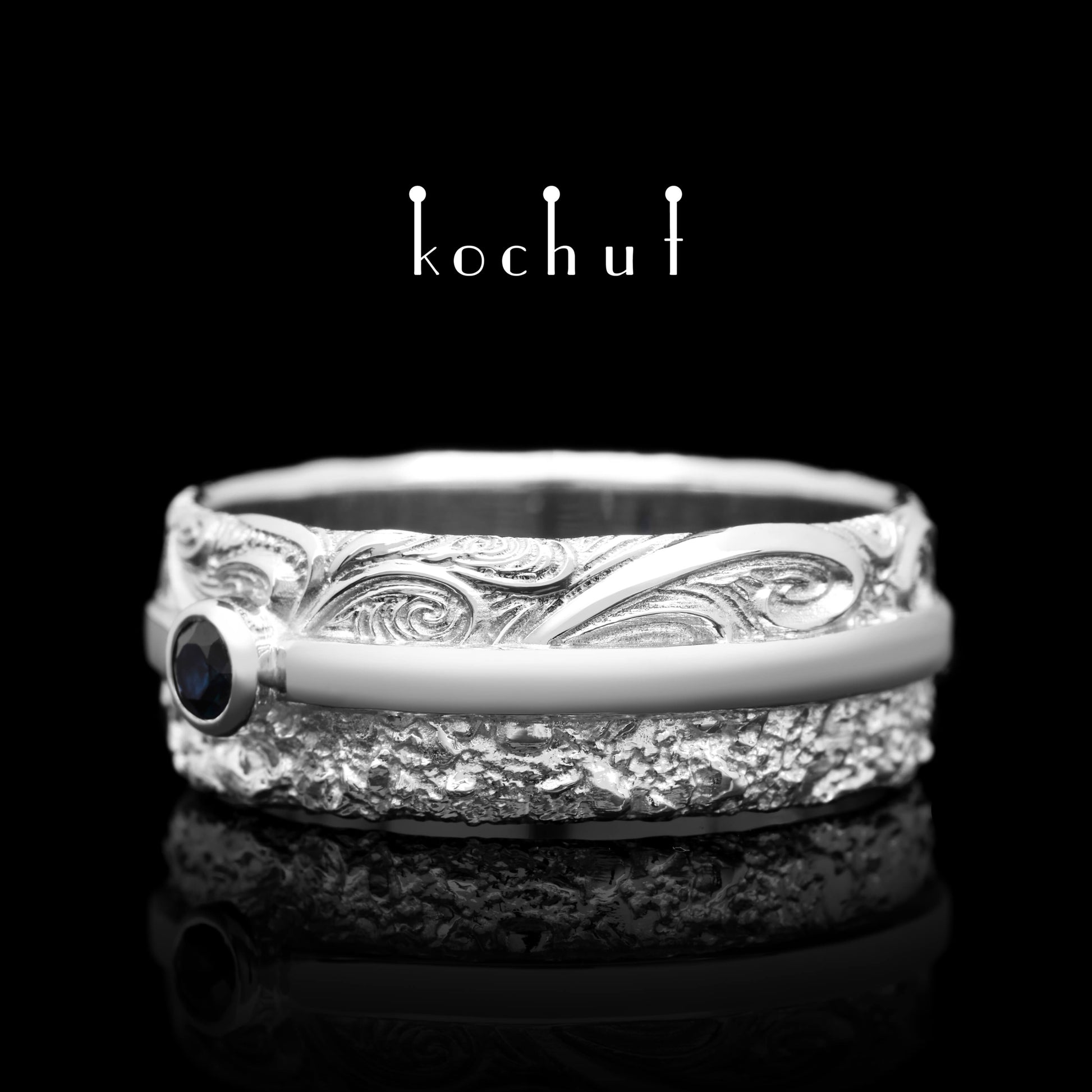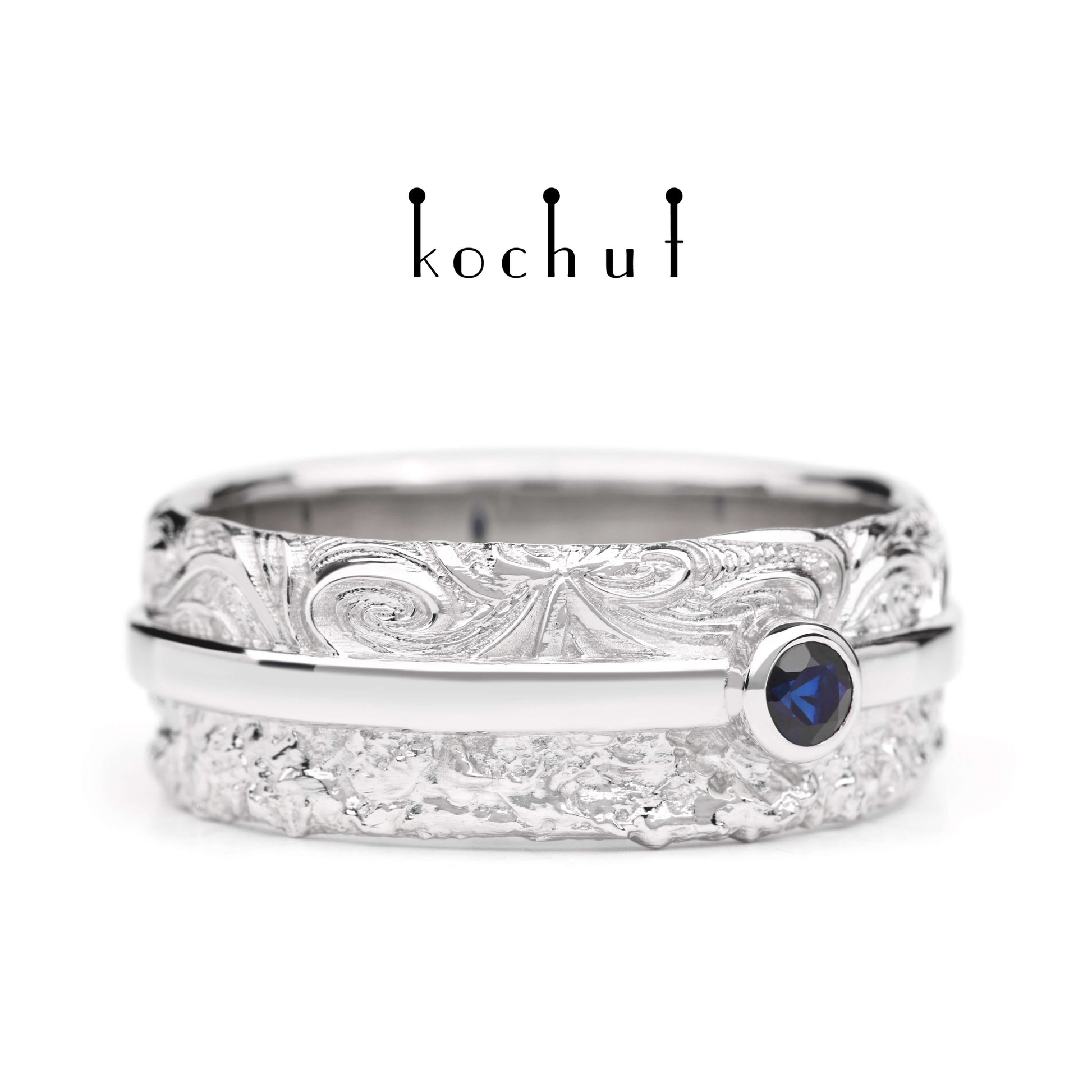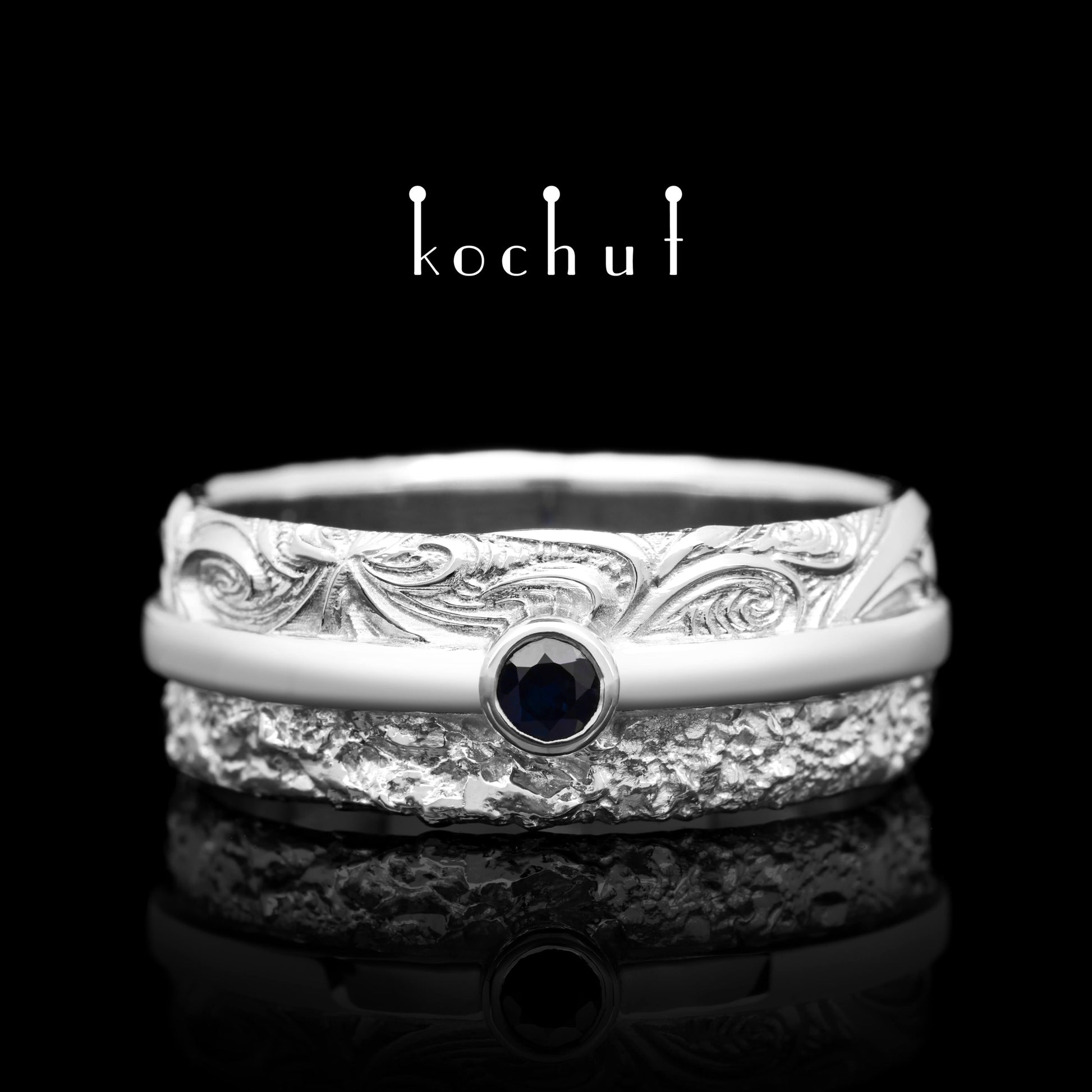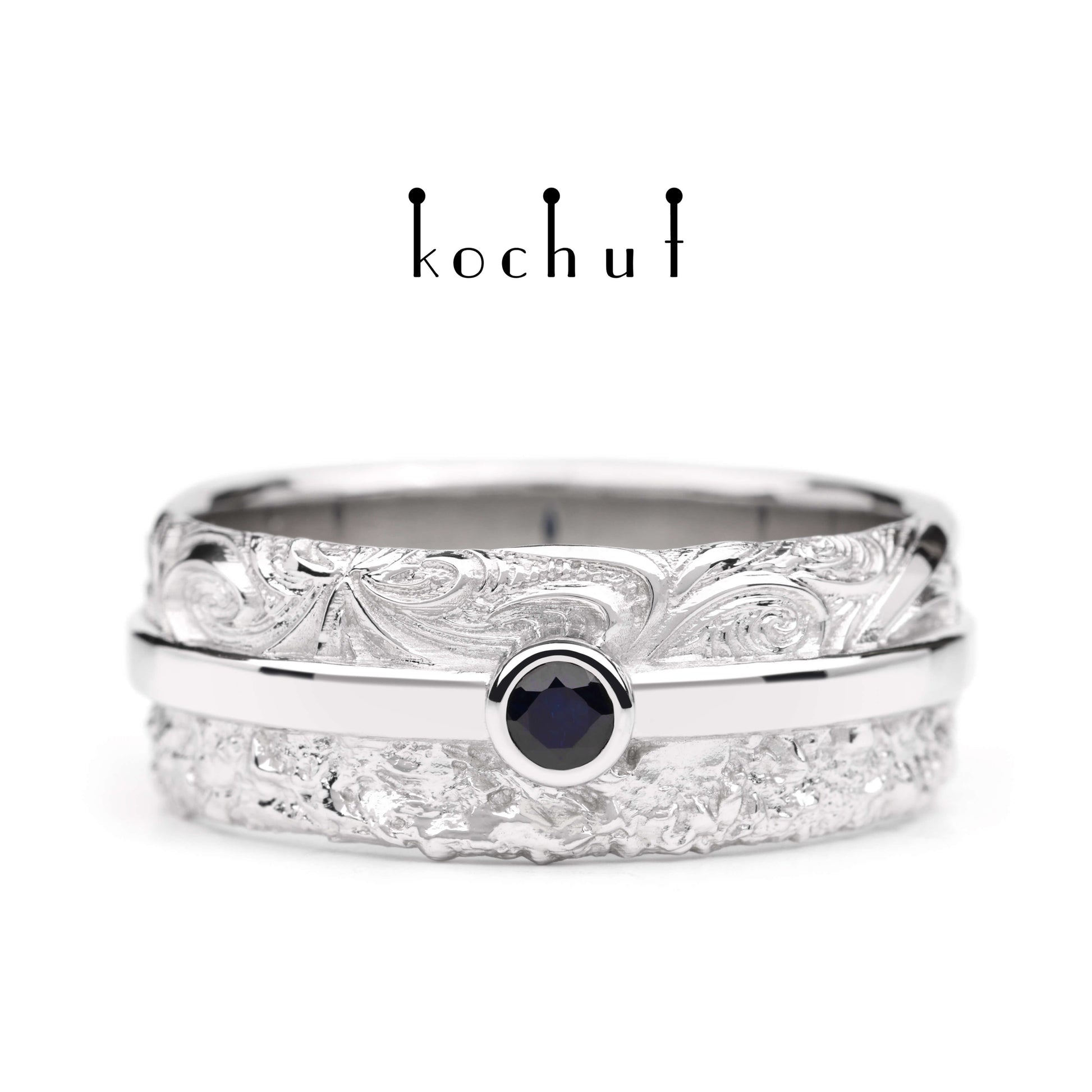 In Freude und Leid — Ehering aus Weißgold mit Saphir, beschichtet mit WeißgoldrhODium
