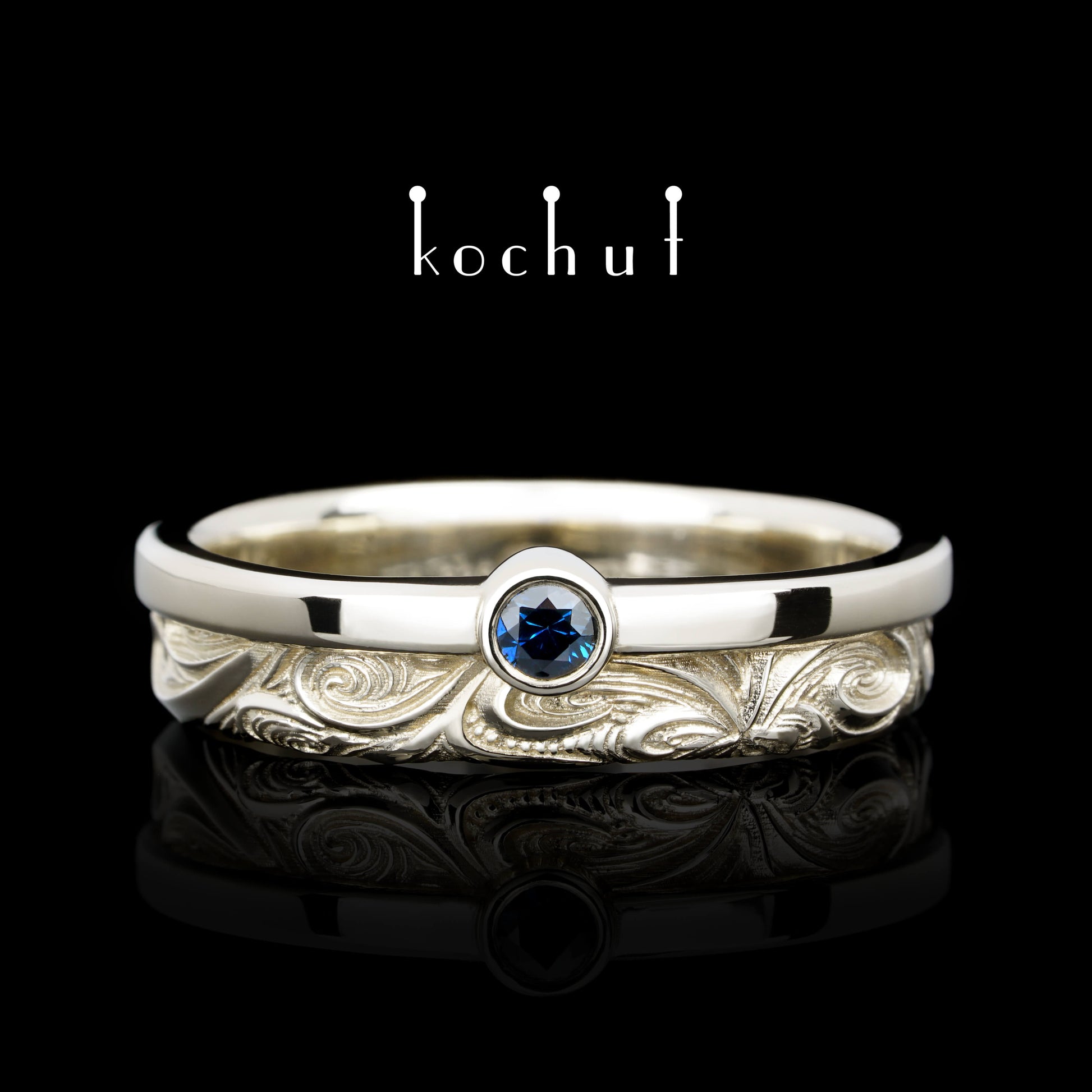 In Freude und Leid: Halbe — Ring aus Weißgold mit Saphir