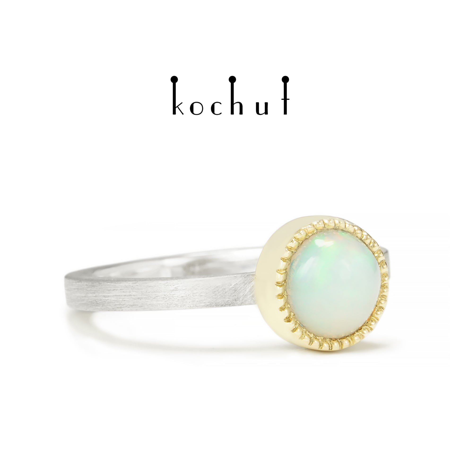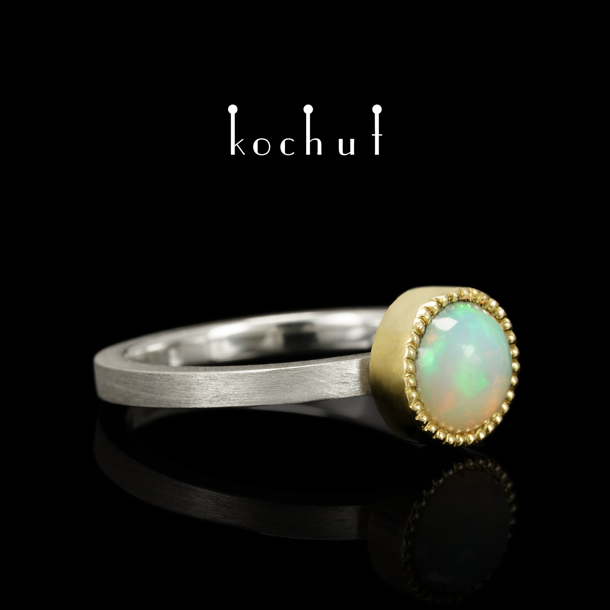 Jupiter — ein Ring aus Silber, Gelbgold und Opal