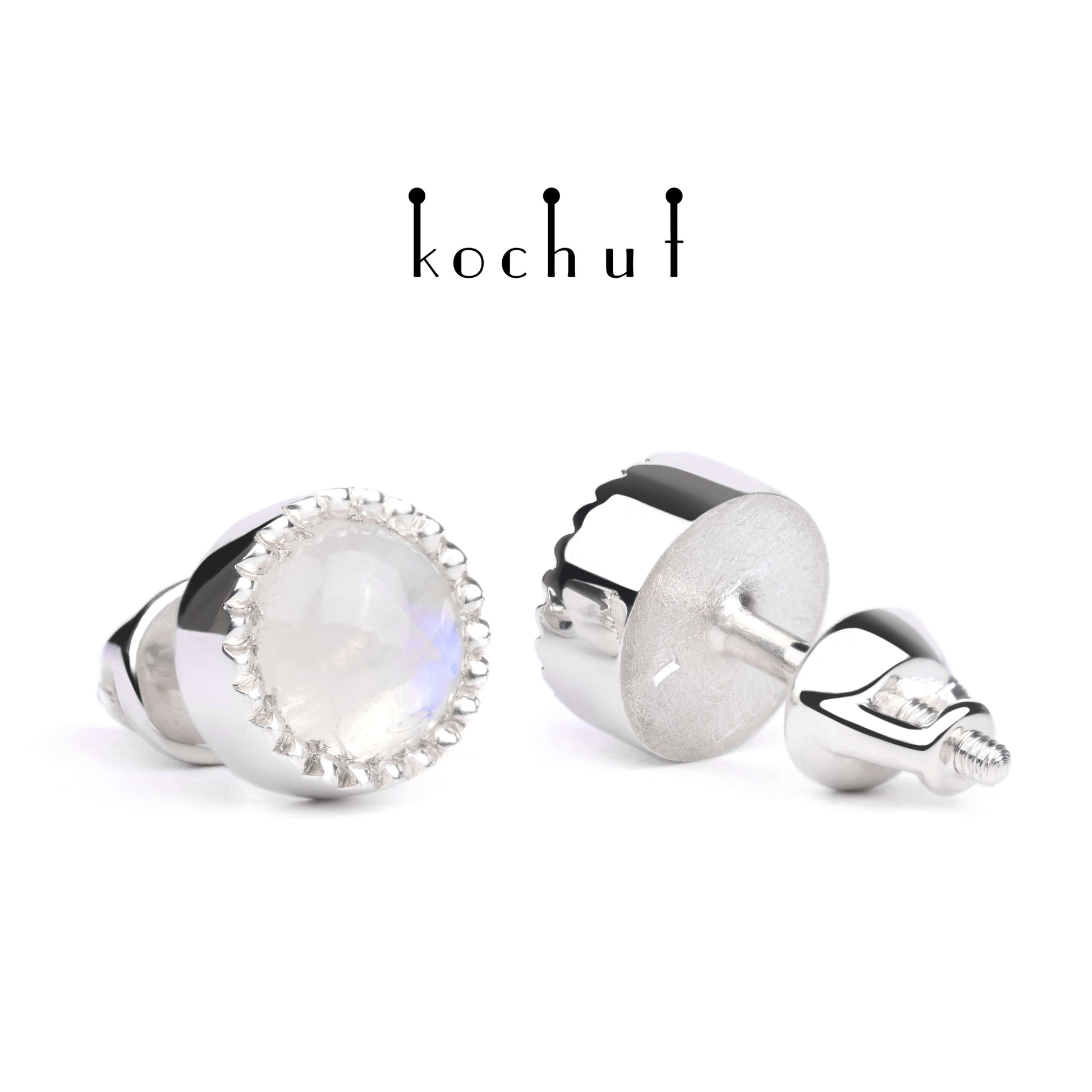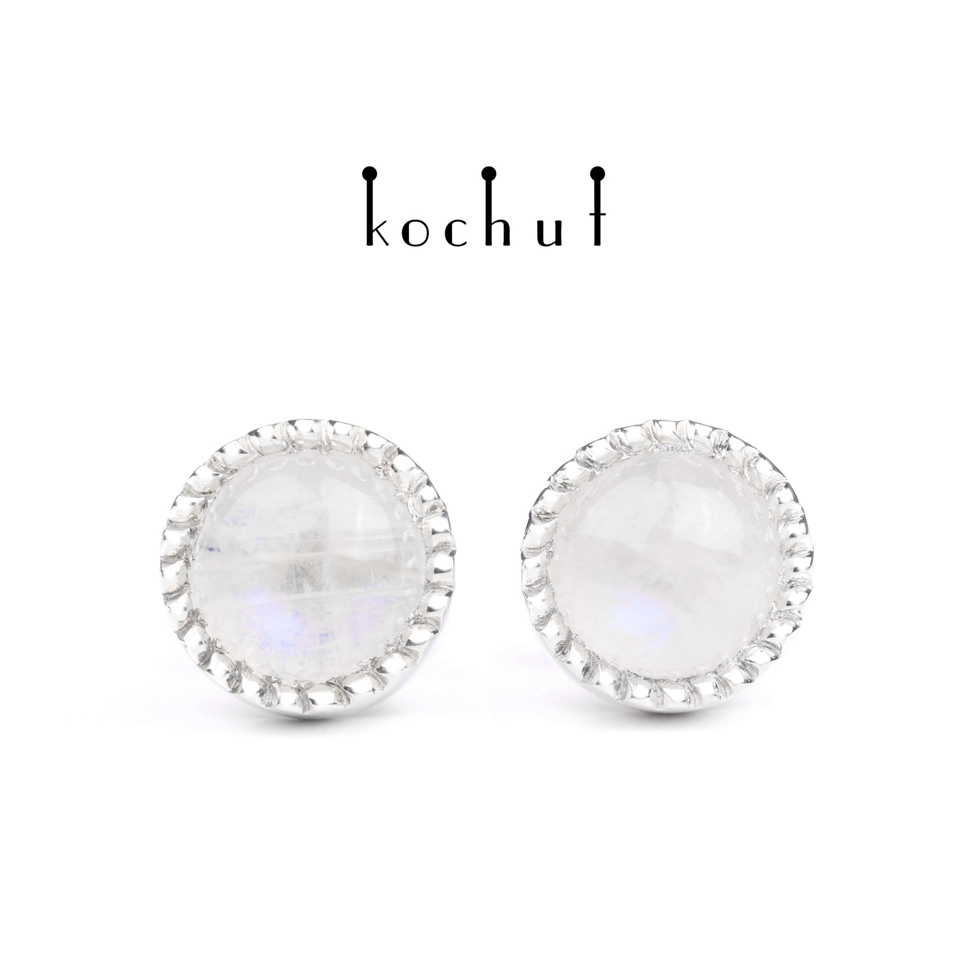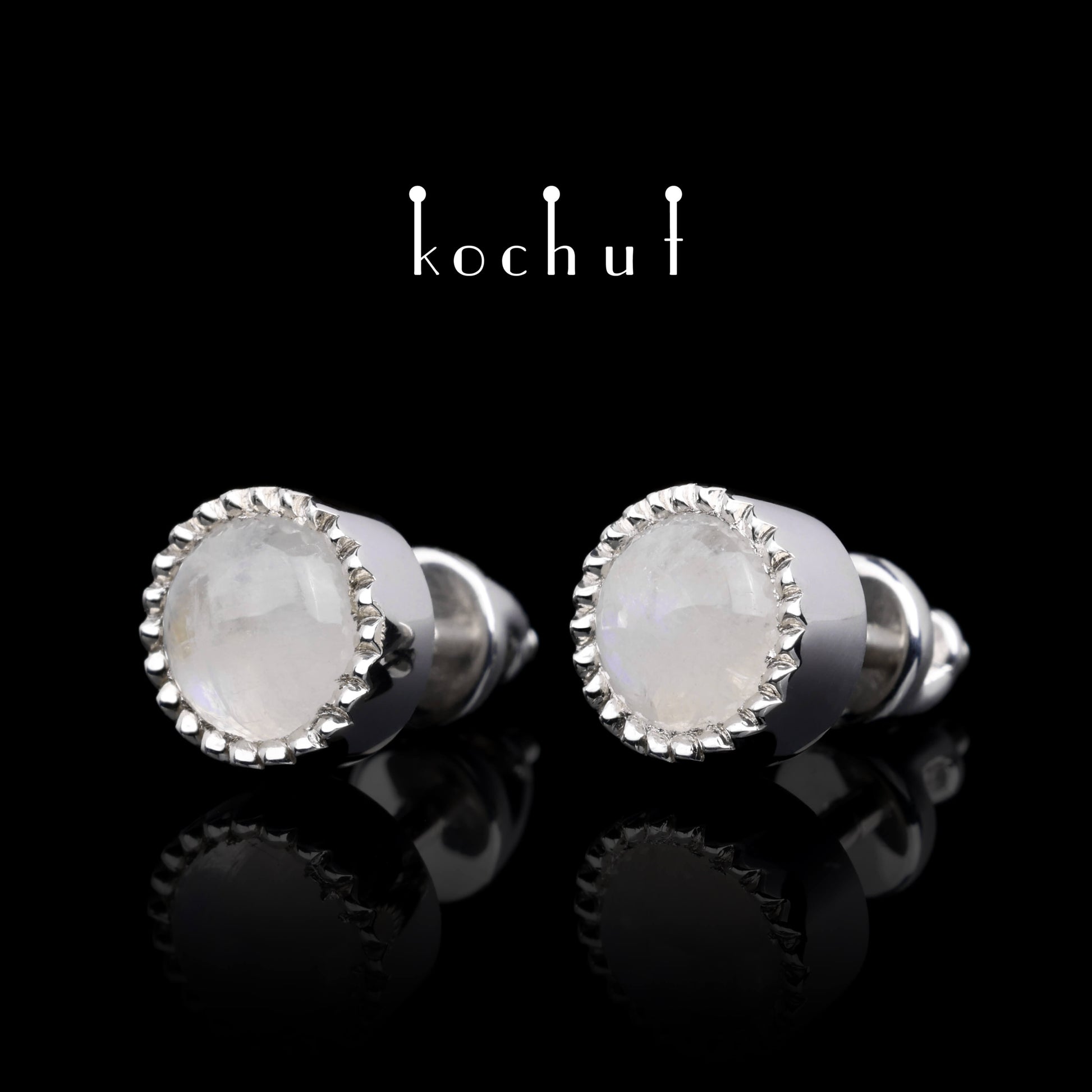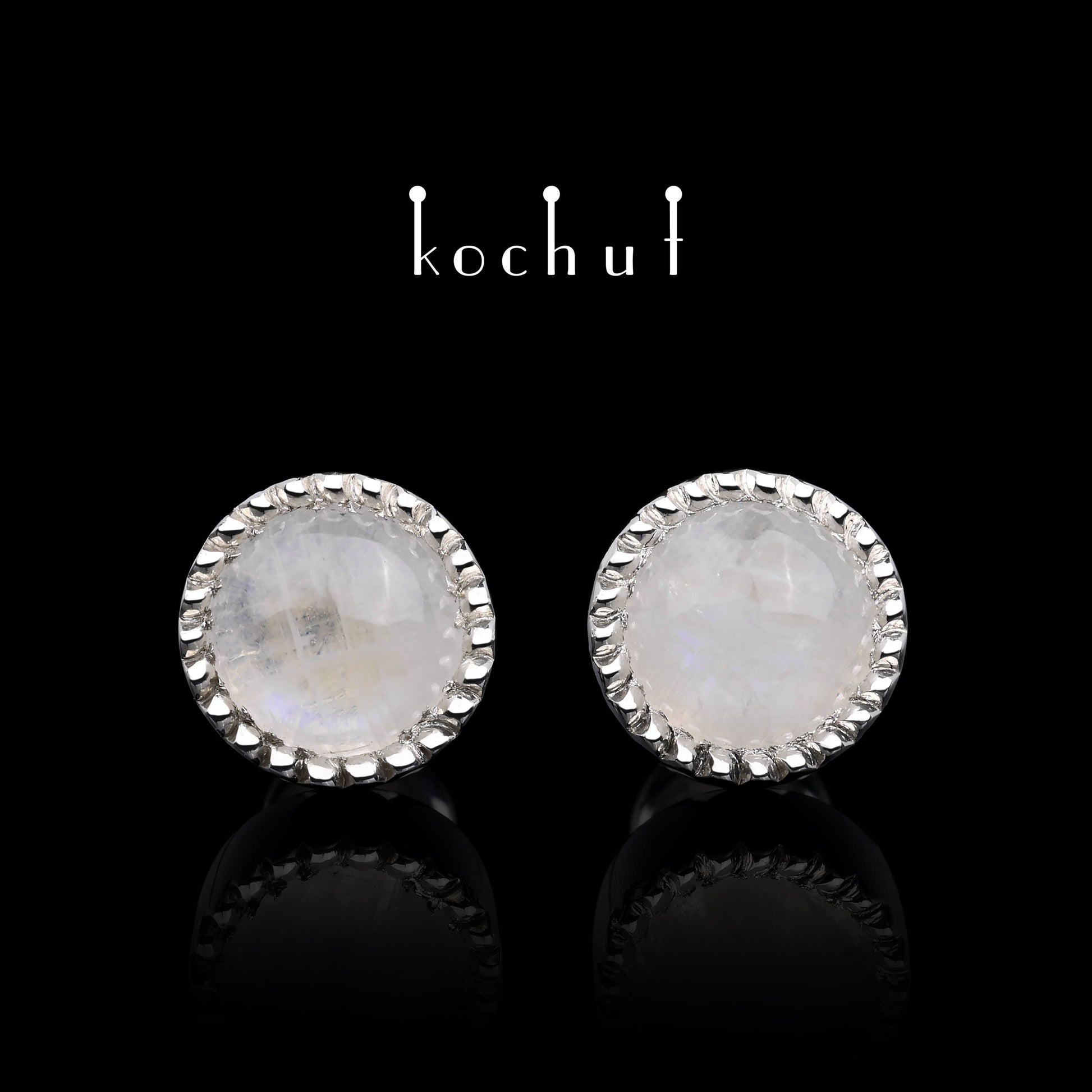 Jupiter — silberne Ohrstecker mit Mondsteinen, beschichtet mit weißem Rhodium