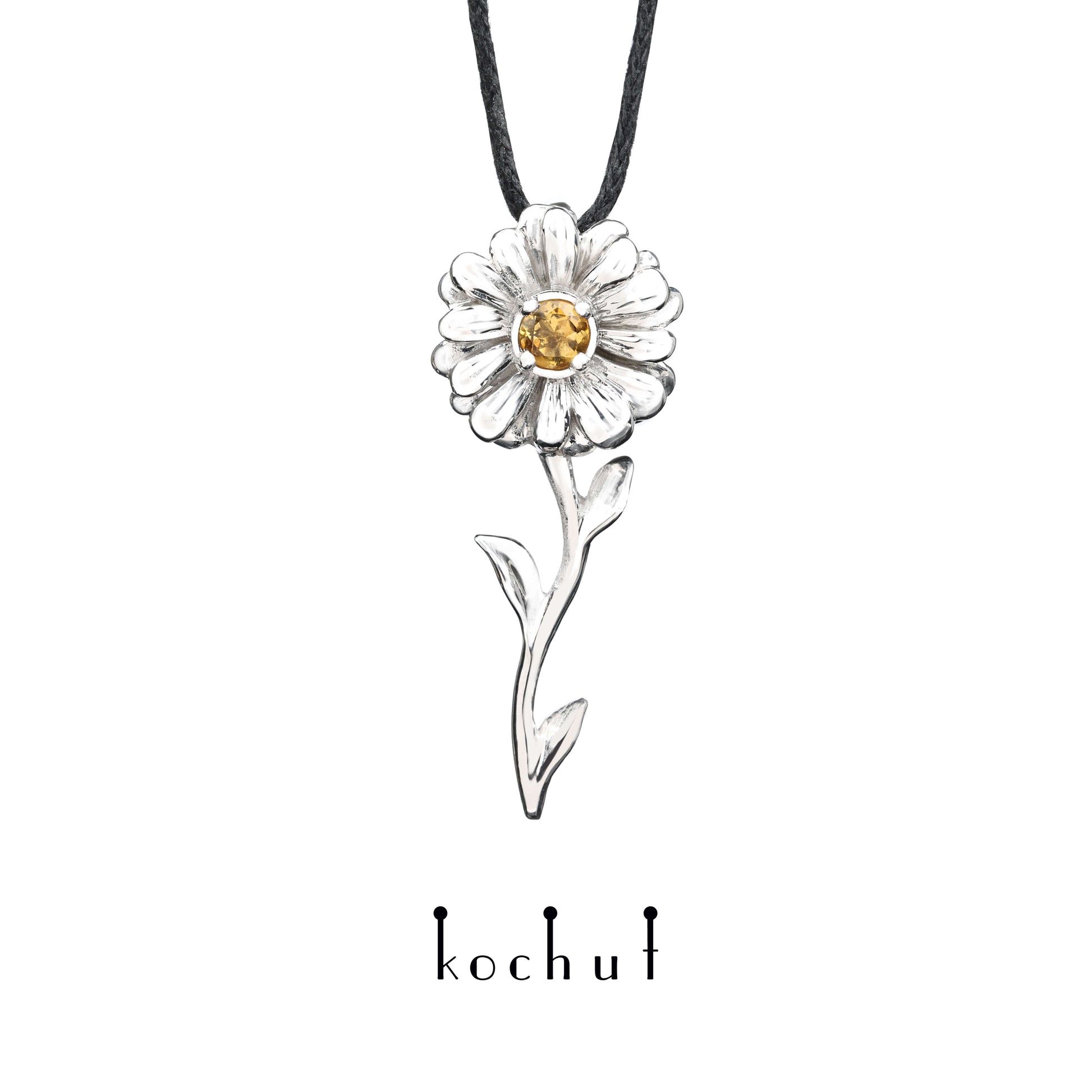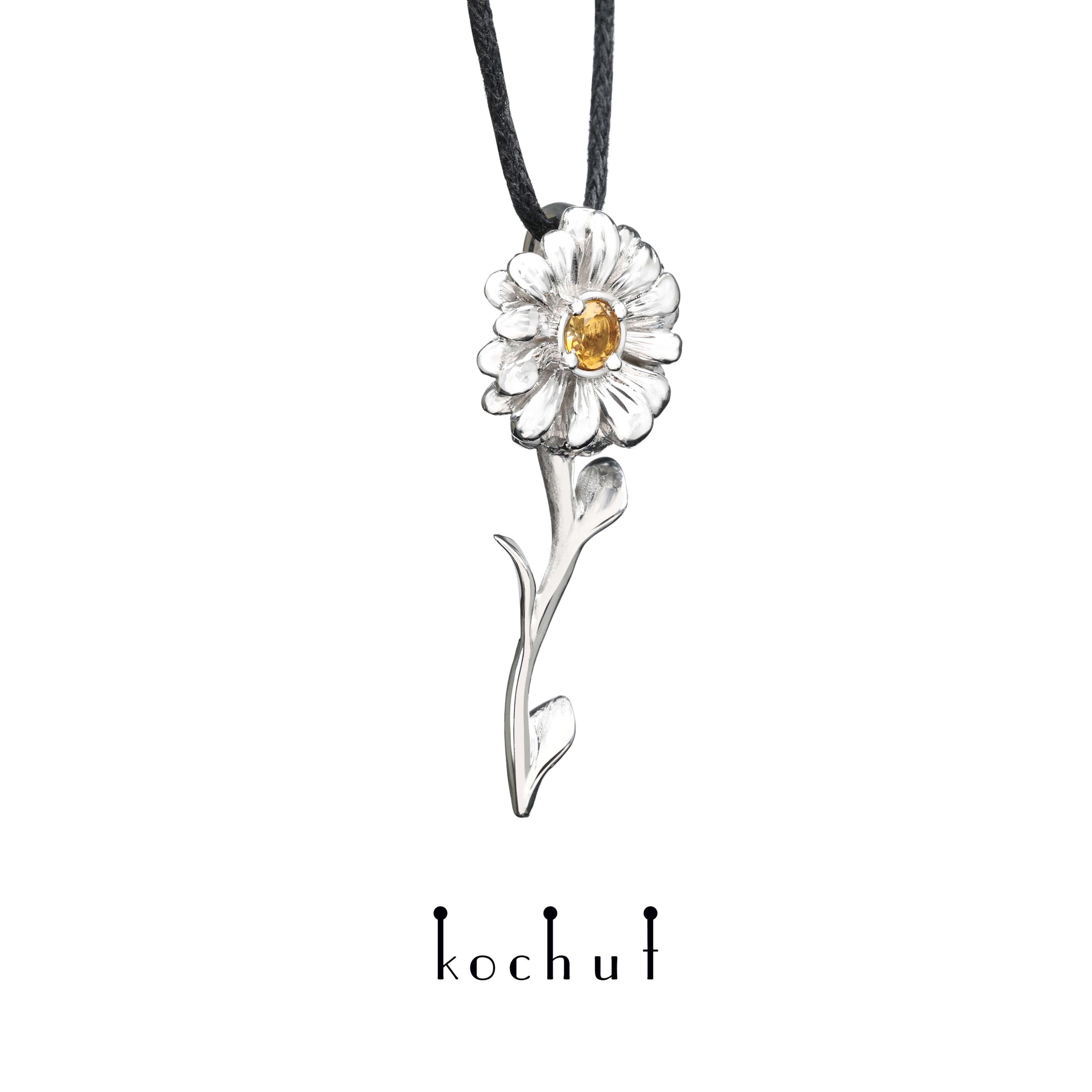 Kamille — Silberanhänger mit Citrin, beschichtet mit weißem Rhodium