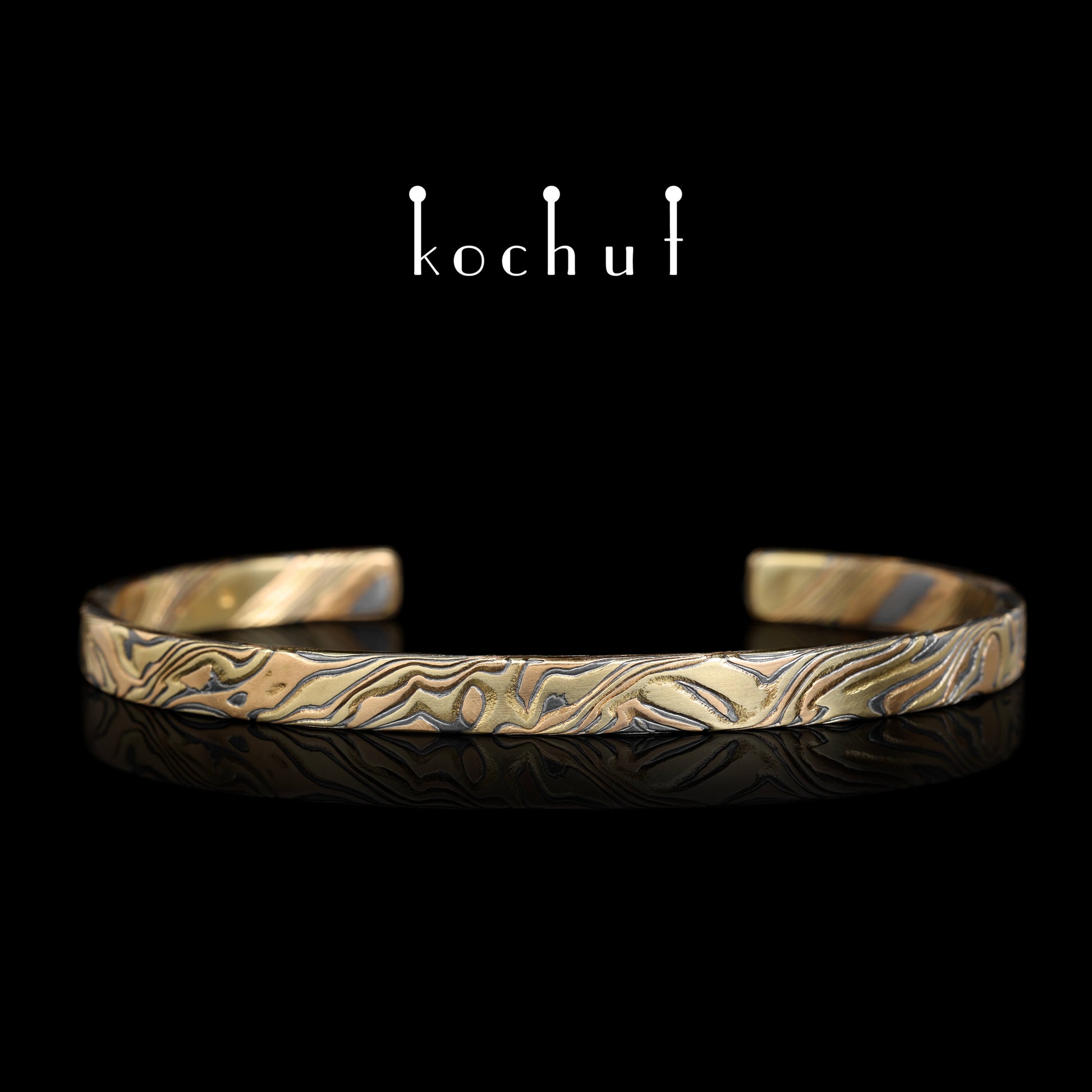Kanso — Mokume-Armband aus Rot-, Gelb- und Weißgold sowie graviertem, oxidiertem Silber