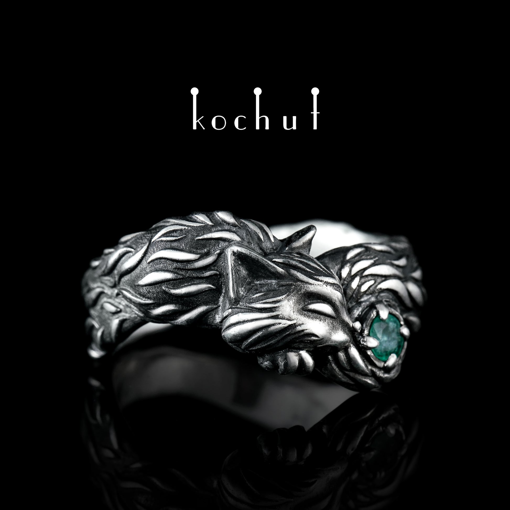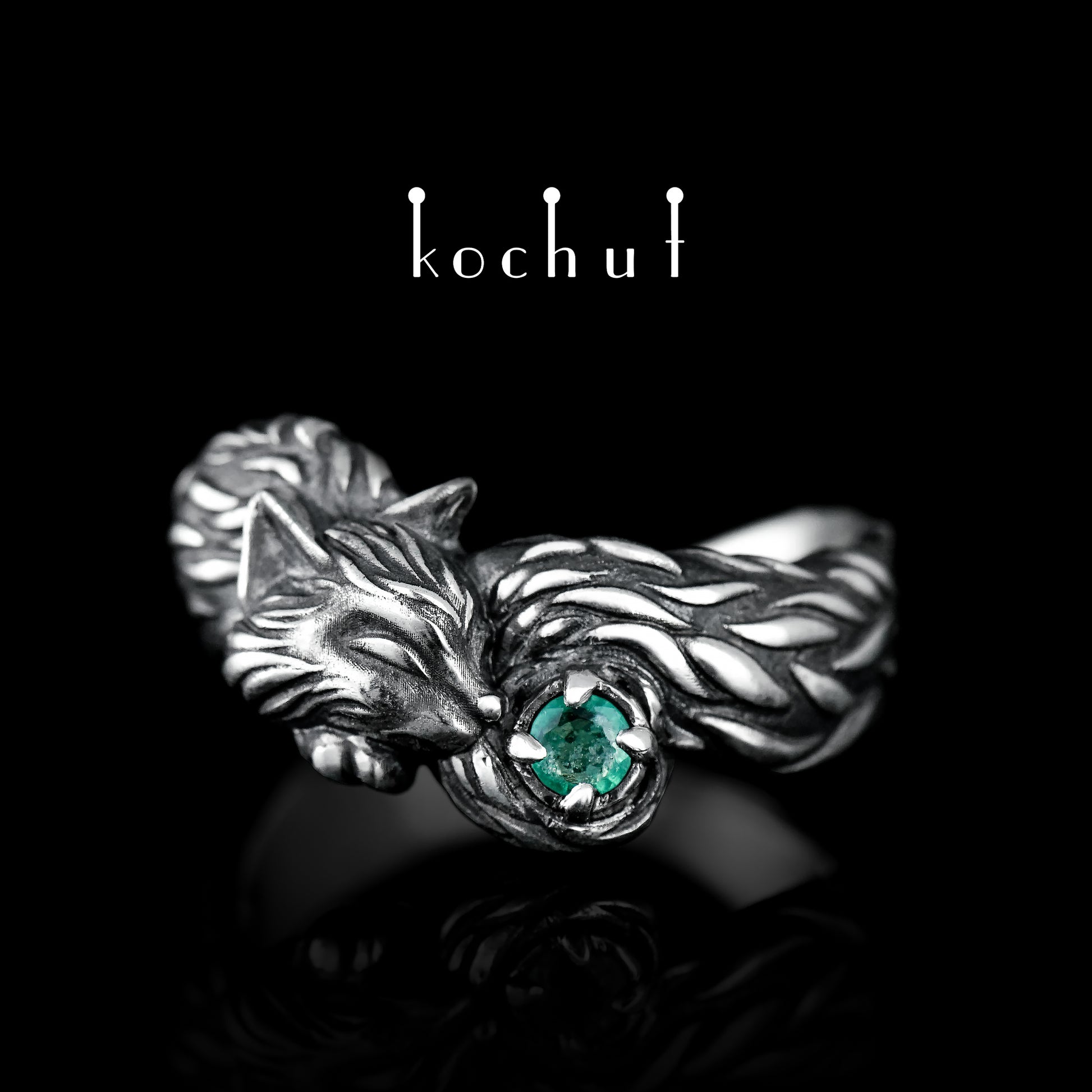 Wir haben einen Ring gefertigt, der so oft bei Ihnen sein wird wie Ihr eigener pelziger Freund. Er wurde aus Silber geschmiedet. Diese Katze ist ein fröhliches, gemütliches, weiches Wesen, das einen mystischen Smaragd schützt. Hoffen wir, dass die Sprüche wahr sind und sie wirklich neun Leben haben :)