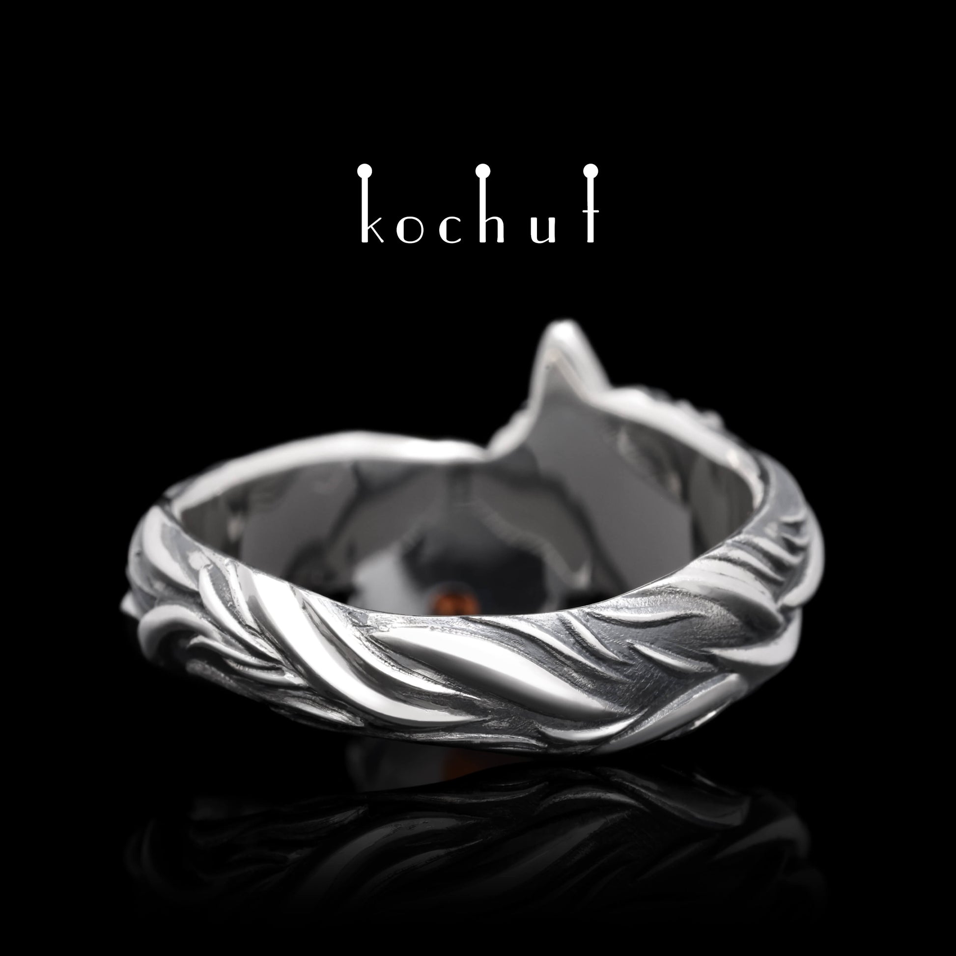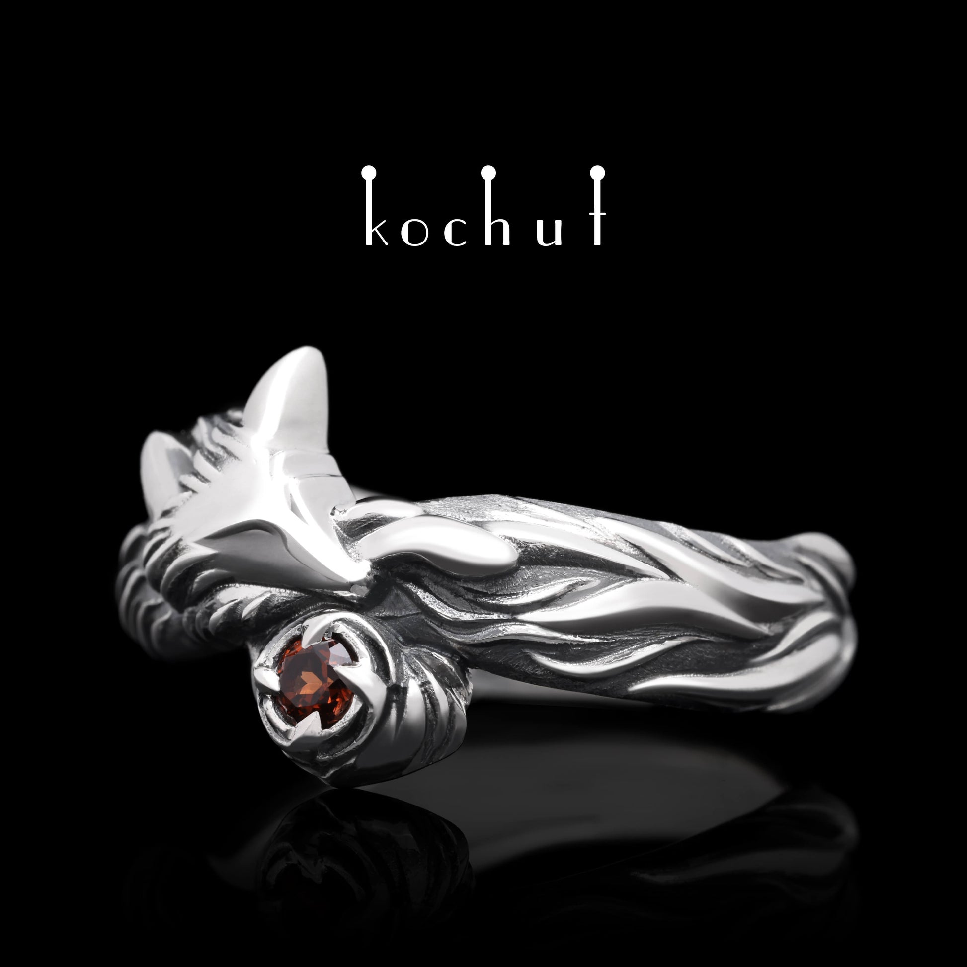 Kleiner Fuchs — Ring aus oxidiertem Silber mit Granat