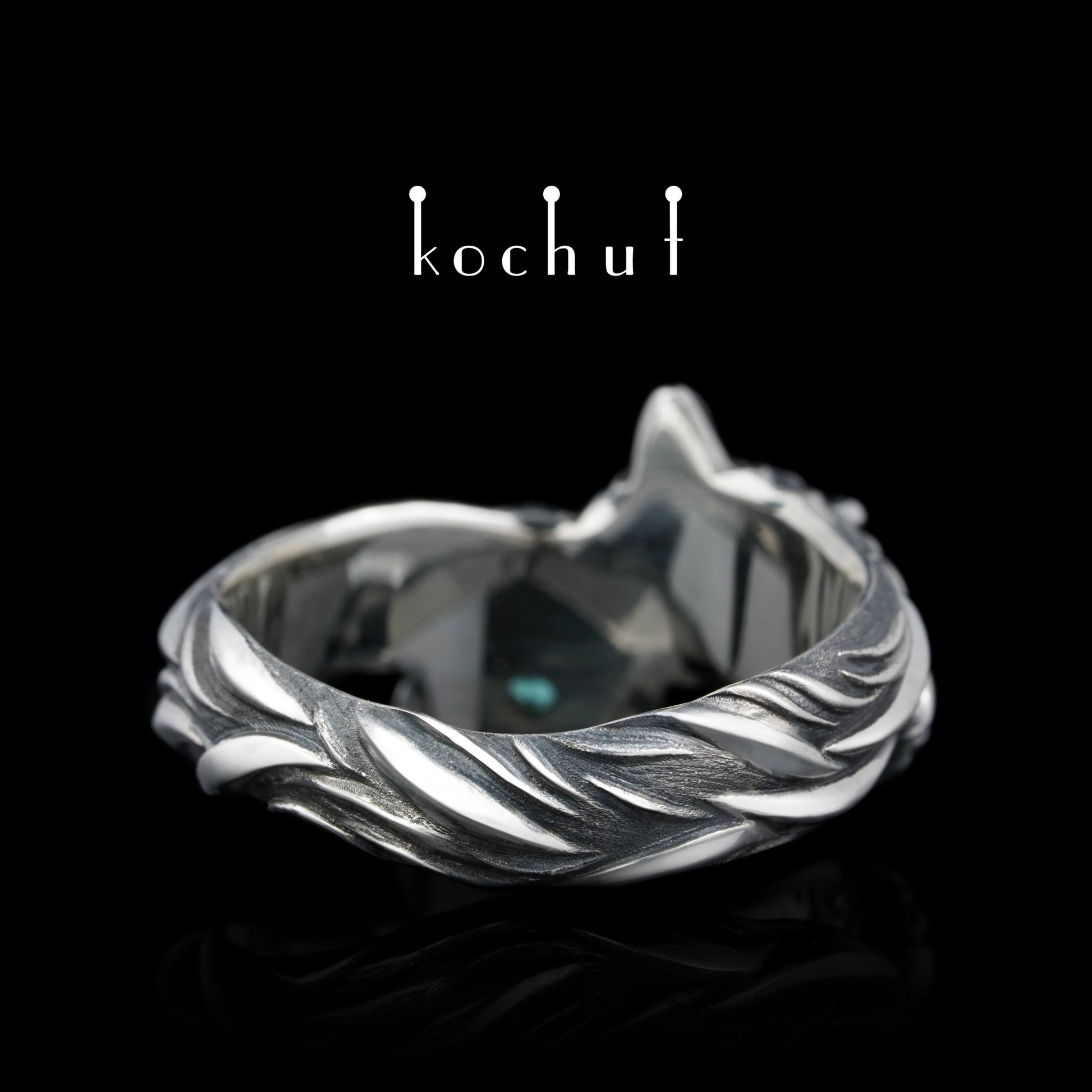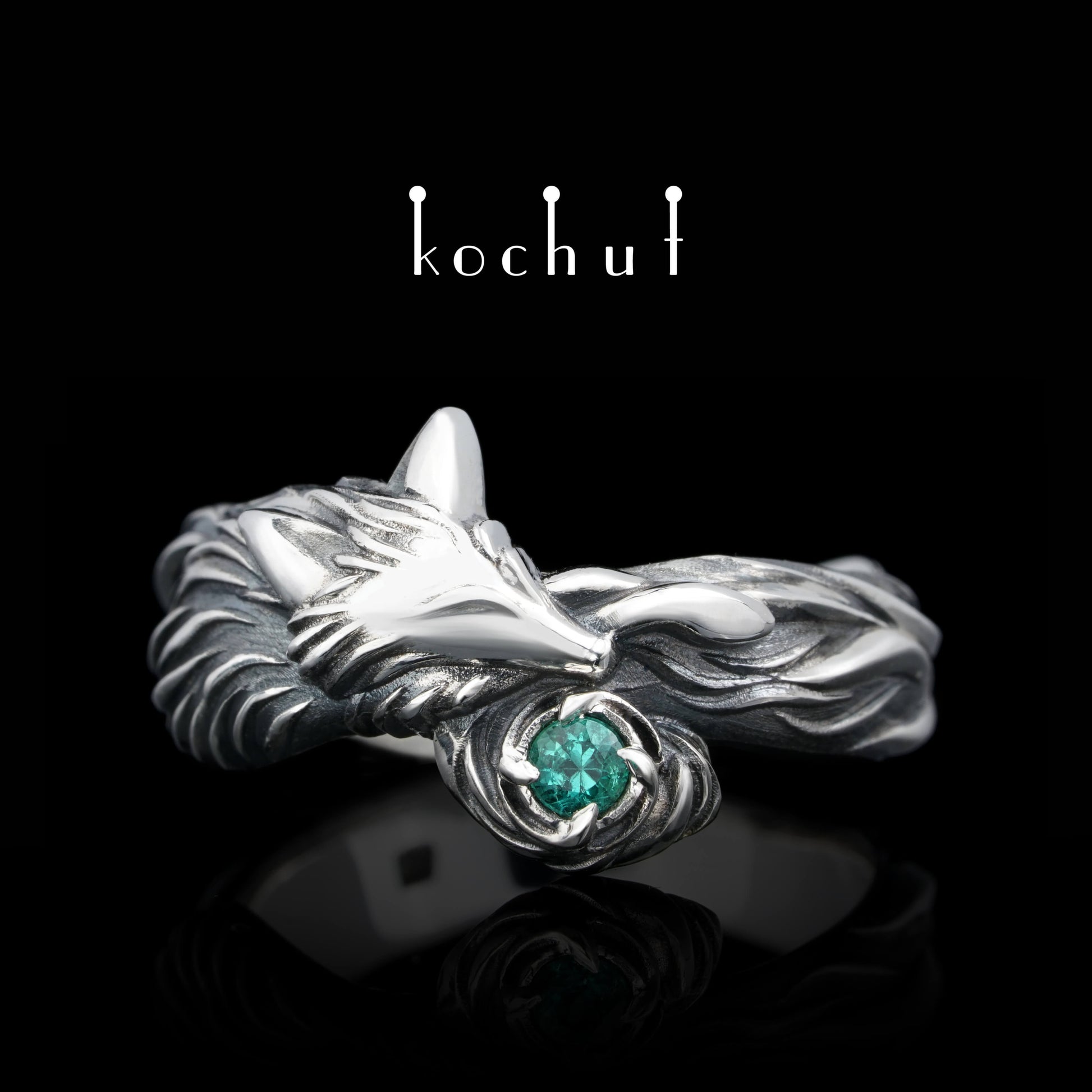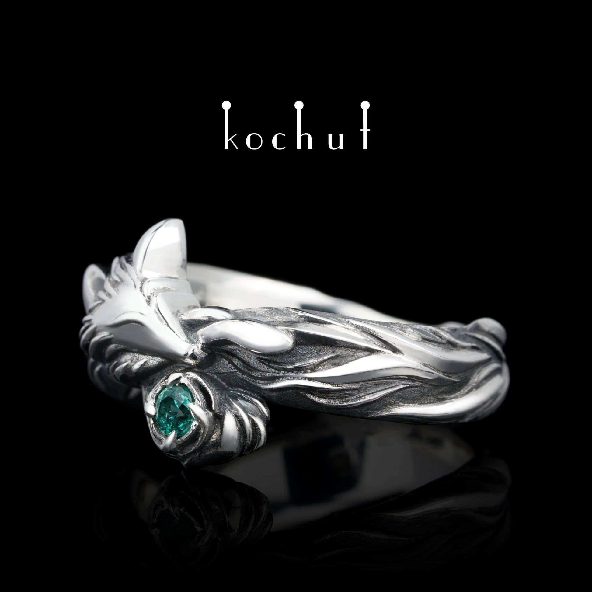 Kleiner Fuchs — Ring aus oxidiertem Silber mit Smaragd