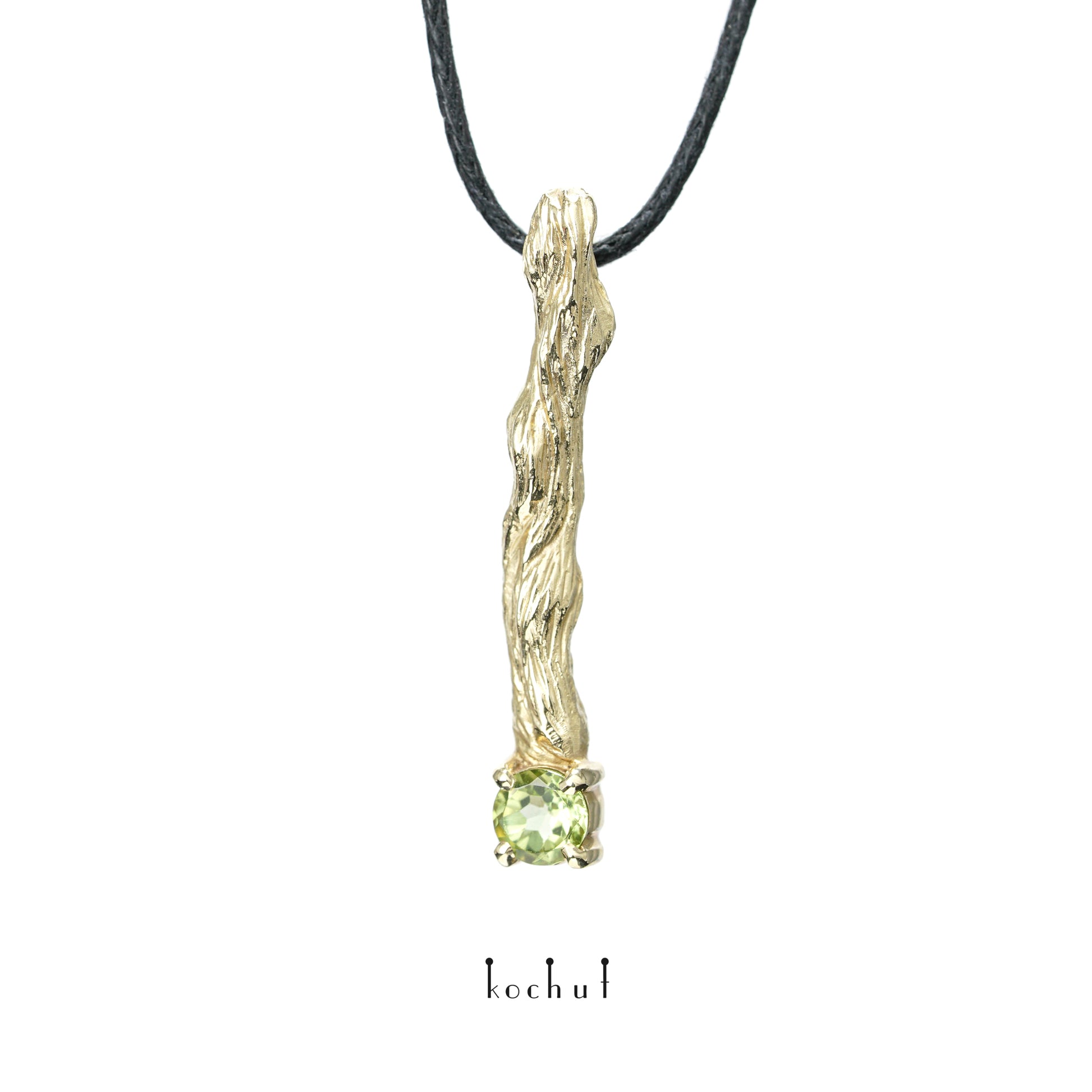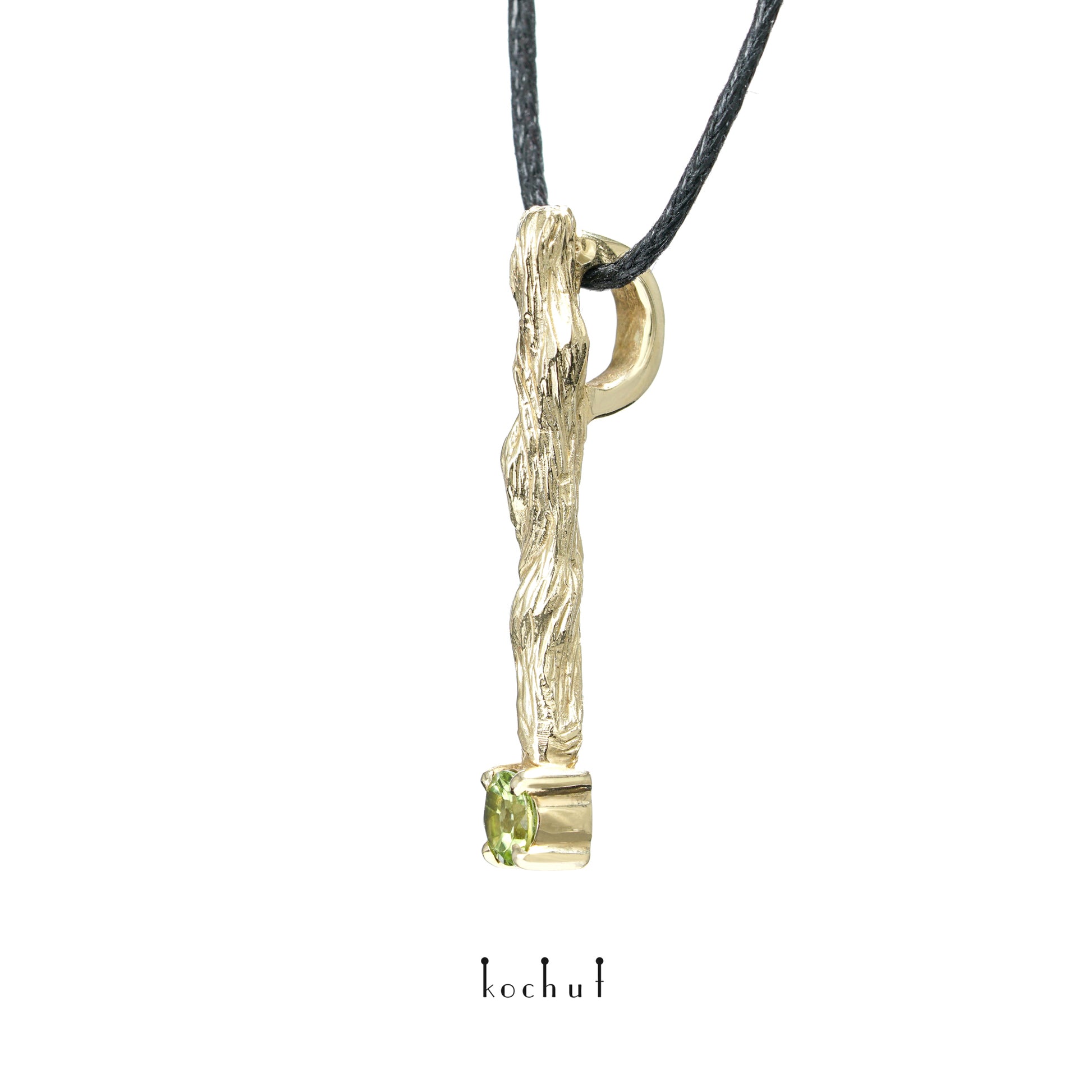Kleiner Zweig — Anhänger aus Gelbgold mit Chrysolith