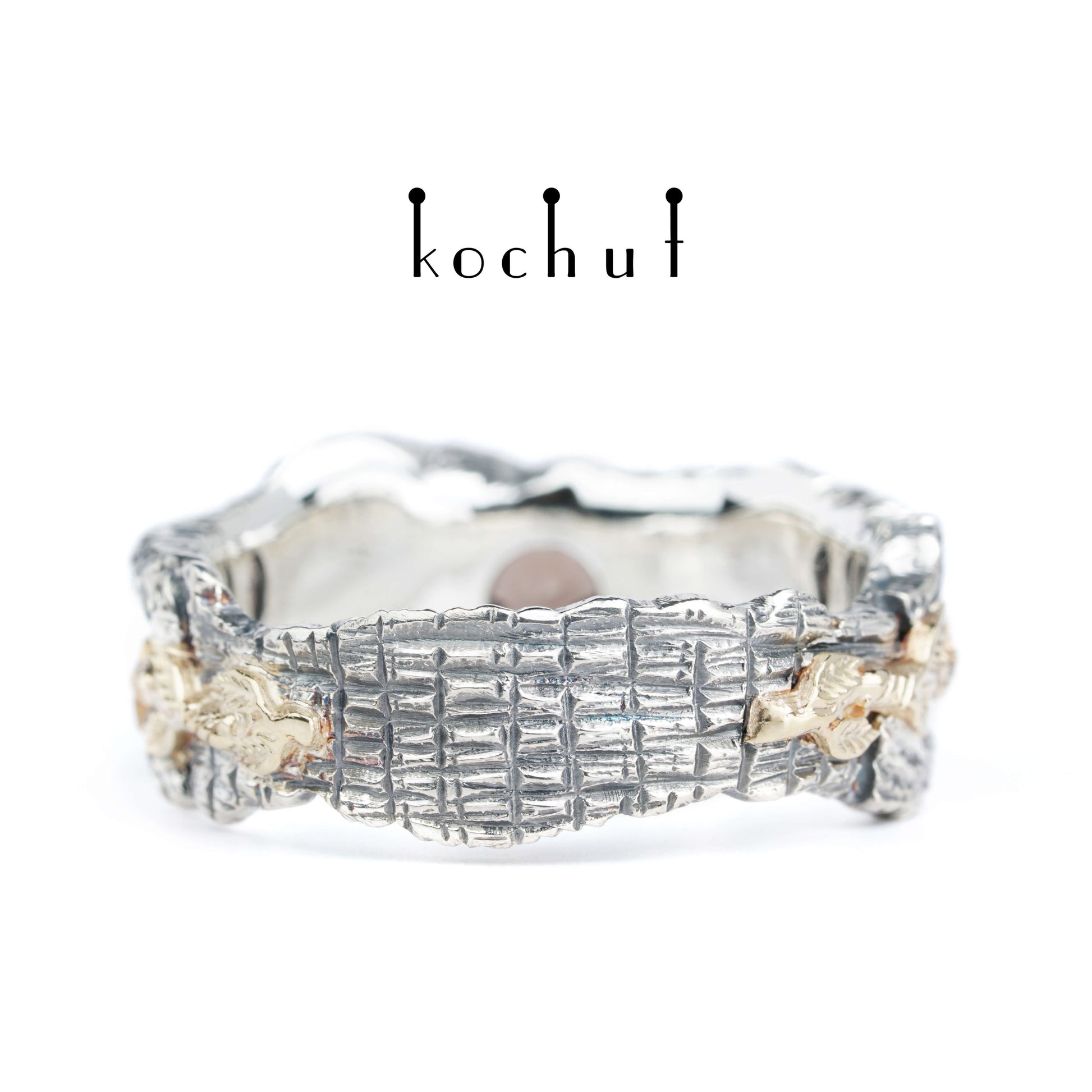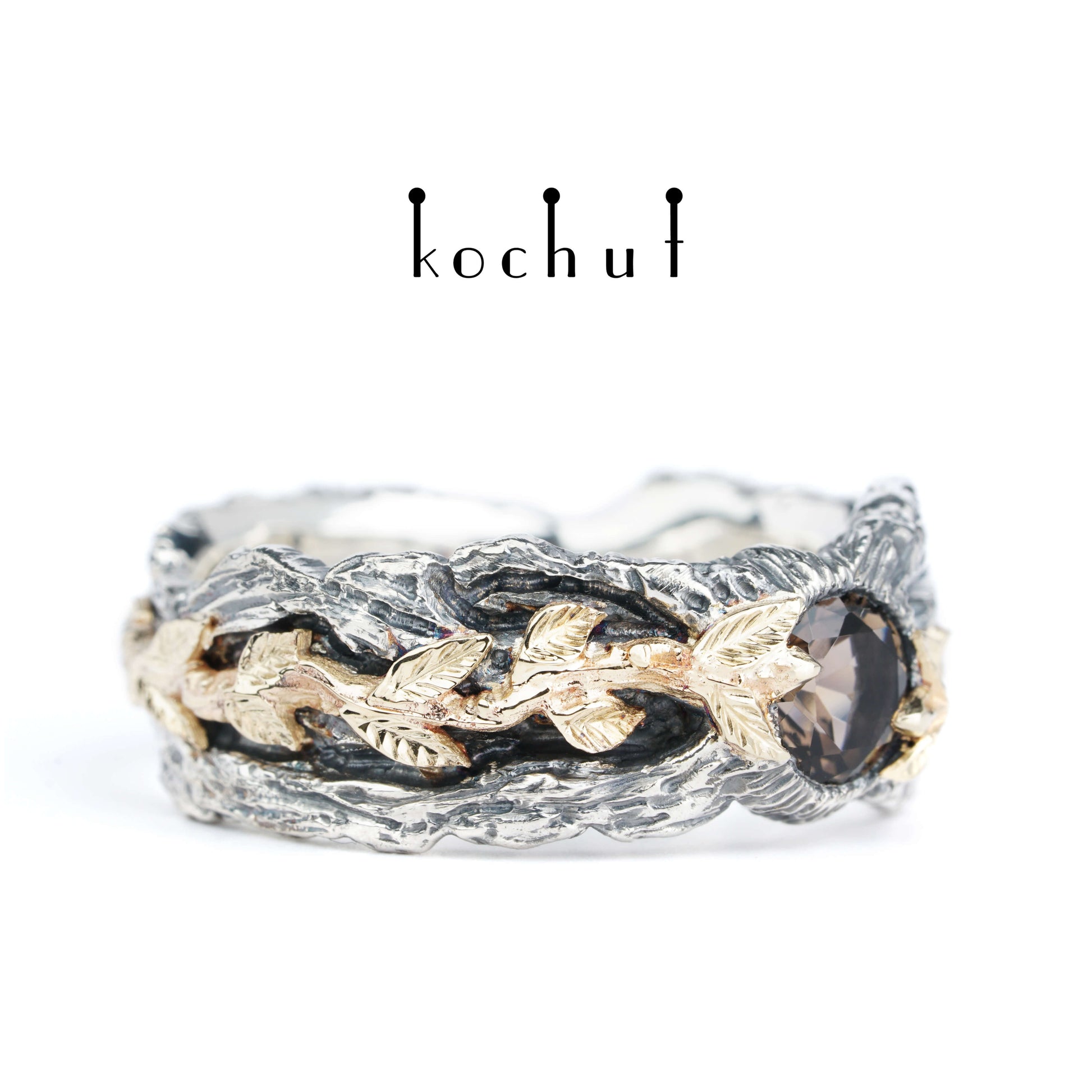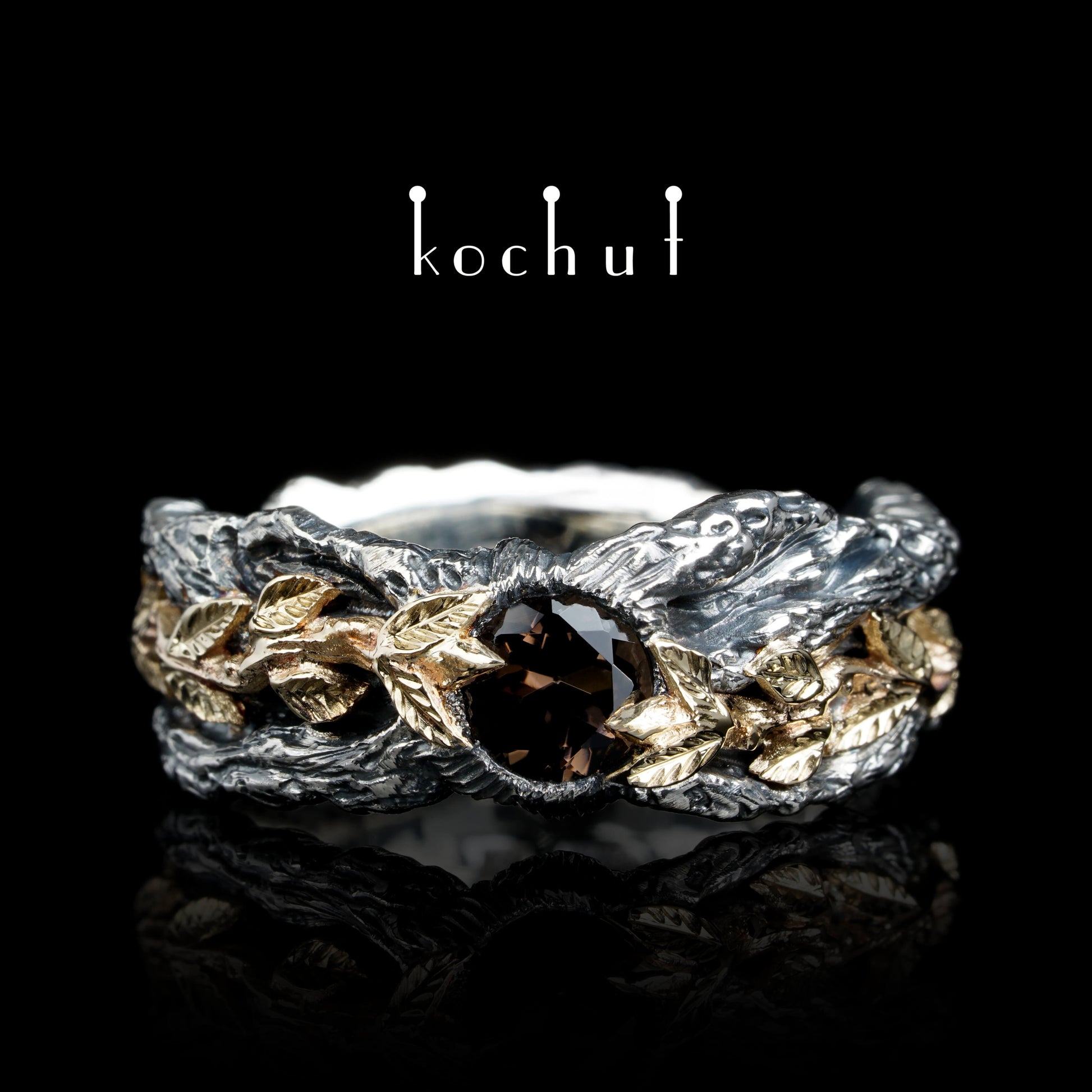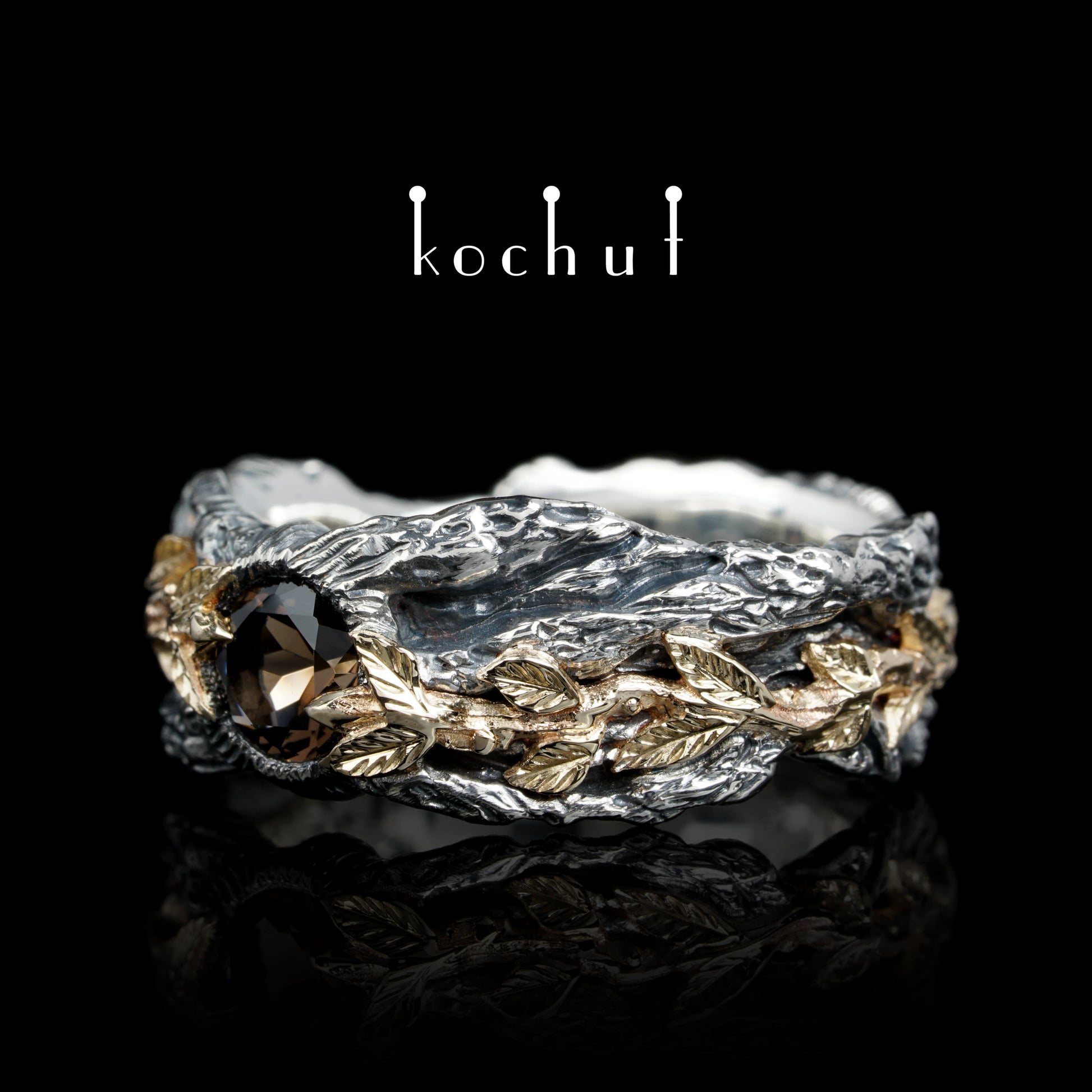 Kraft des Lebens — Ring aus oxidiertem Silber und Gelbgold mit Rauchquarz