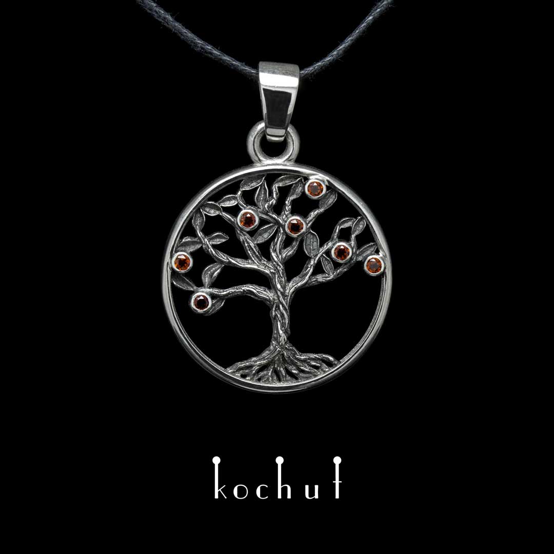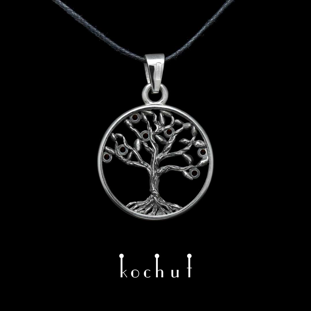 Lebensbaum: Früchte — Anhänger aus oxidiertem Silber mit Granaten