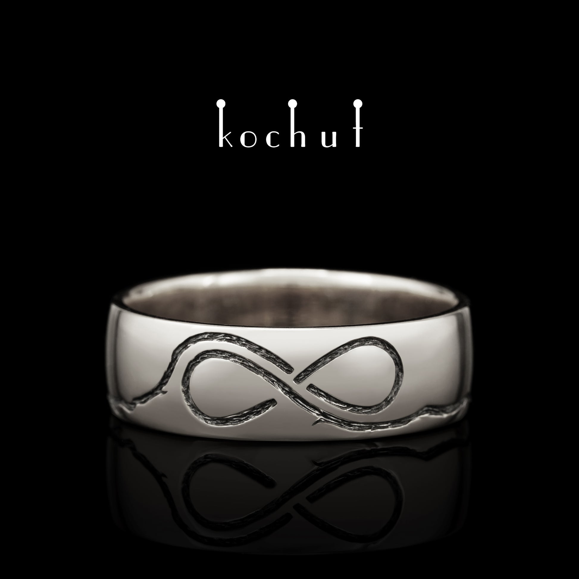 Der Ring ist aus Silber gefertigt, der Baum ist oxidiert. Auf der Rückseite des Rings haben wir ein Unendlichkeitssymbol angebracht. Du musst immer an deine eigene Unsterblichkeit denken. Du musst daran erinnern, dass du das Lieblingskind des Universums bist. Und lasse deine Welt schön sein.