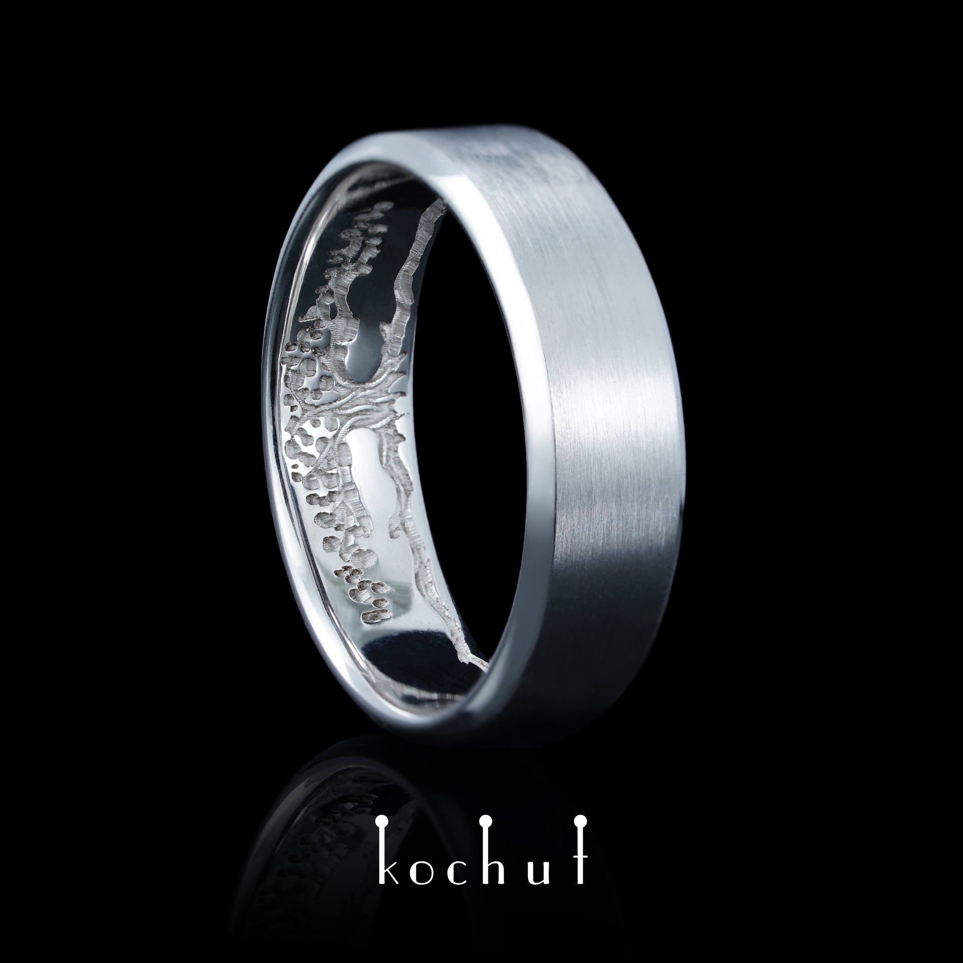 Lebensbaum: Stiele — mattes Ehering aus Weißgold, beschichtet mit weißem Rhodium
