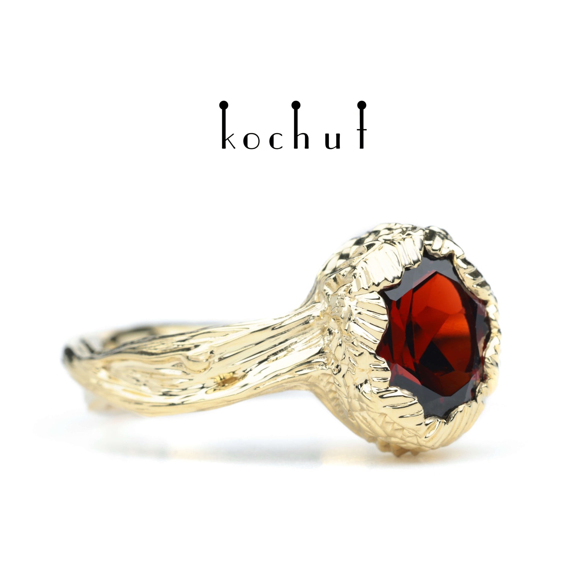 Lebensquelle — Gelbgoldring mit einem roten Granat