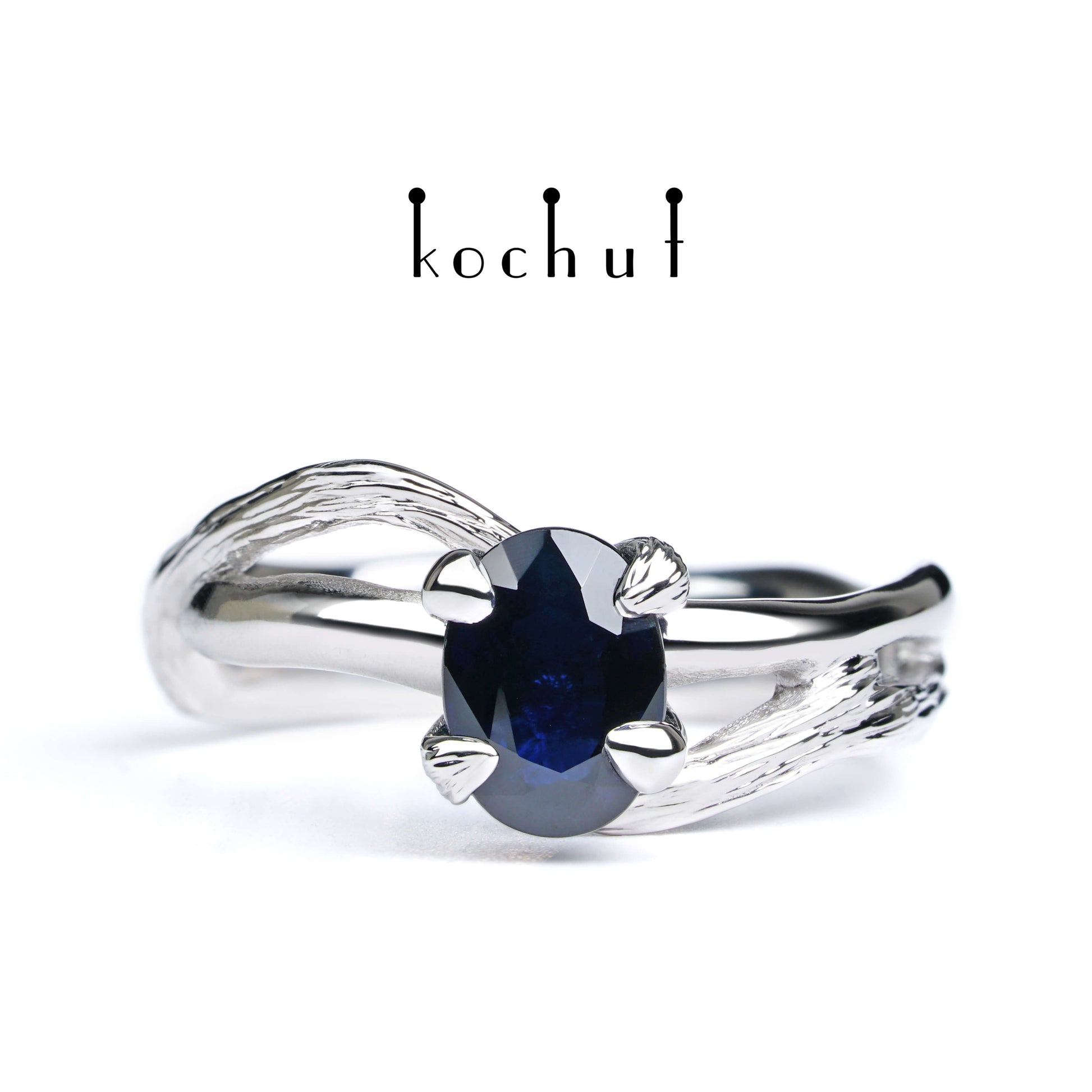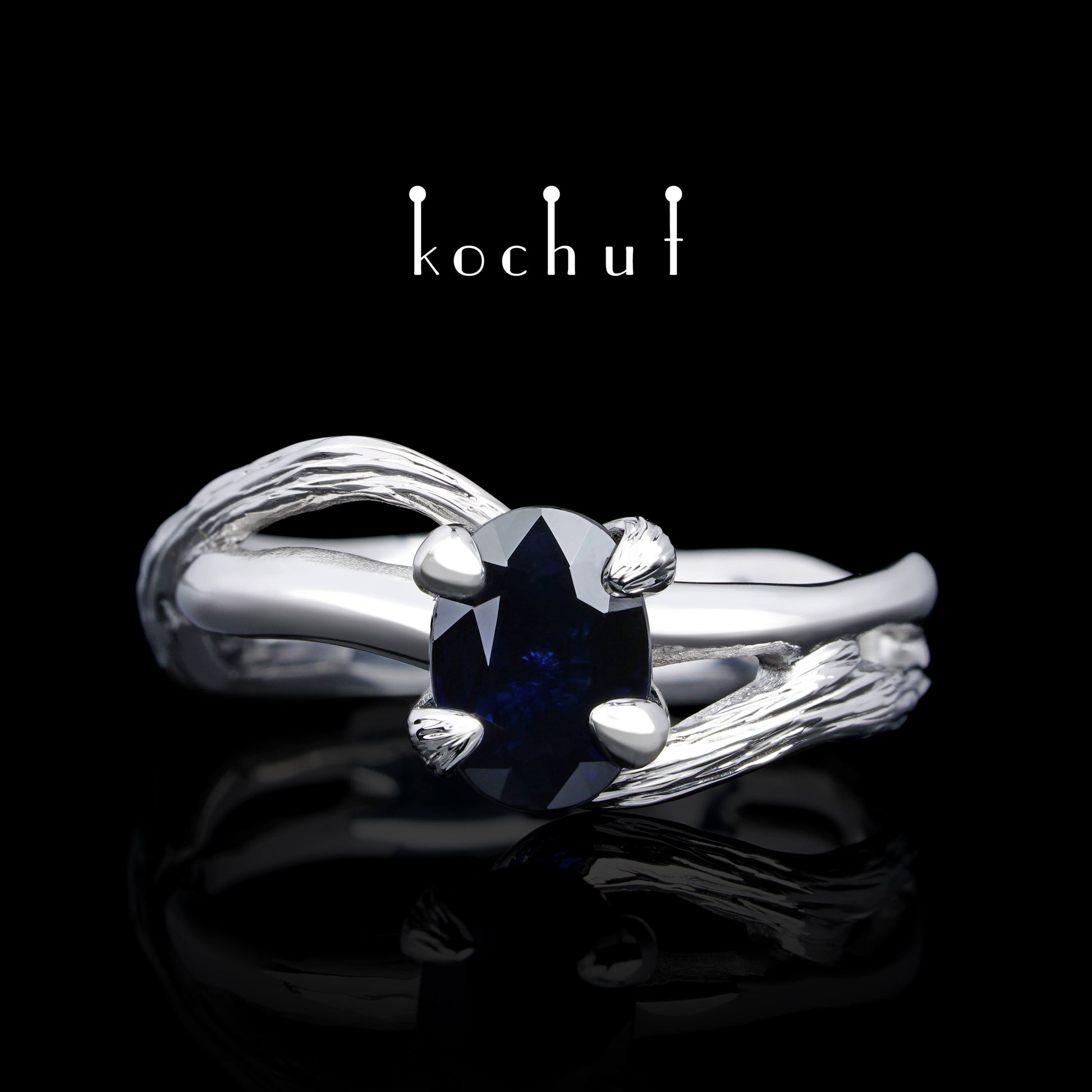 Lignum — Verlobungsring aus Weißgold mit Saphir, beschichtet mit weißem Rhodium