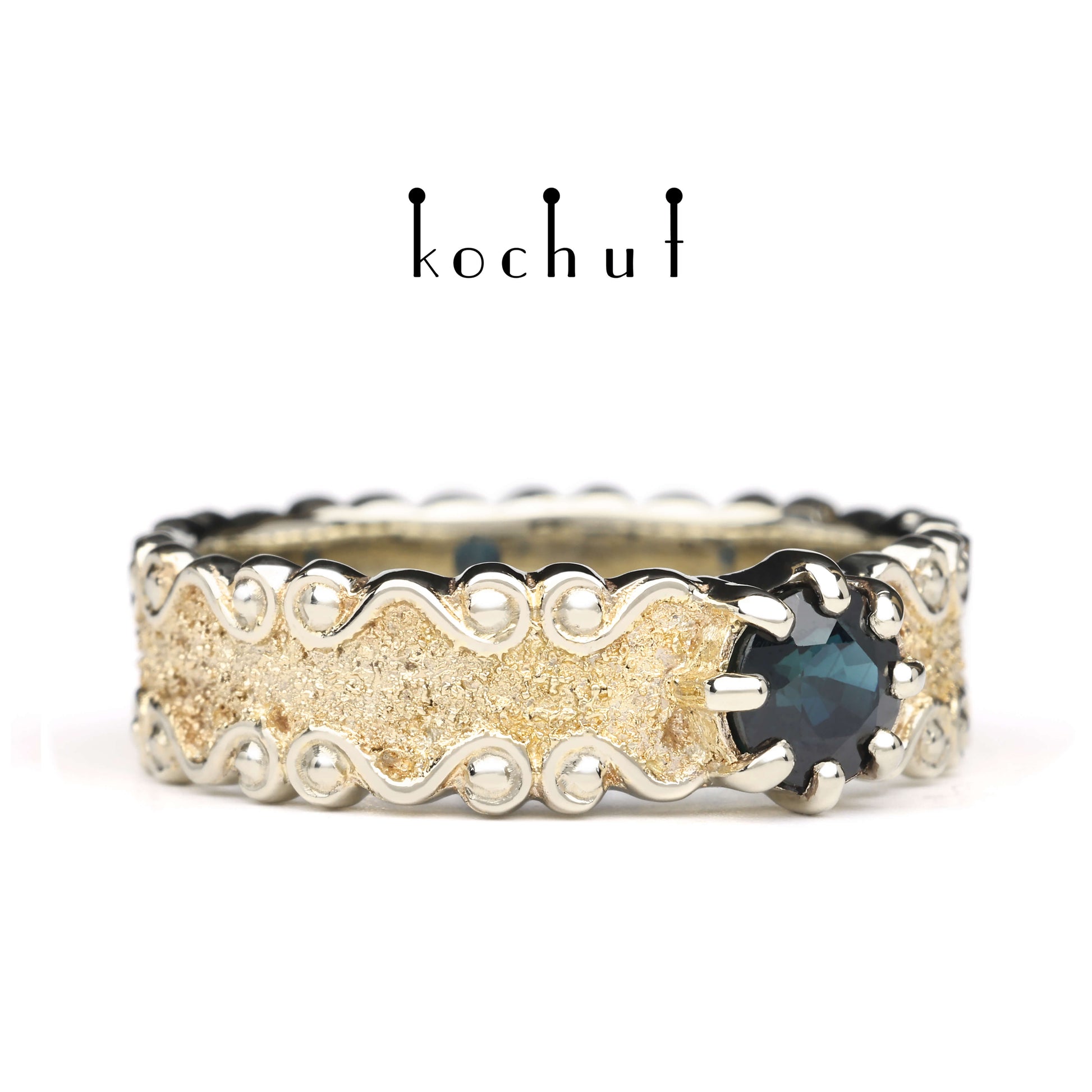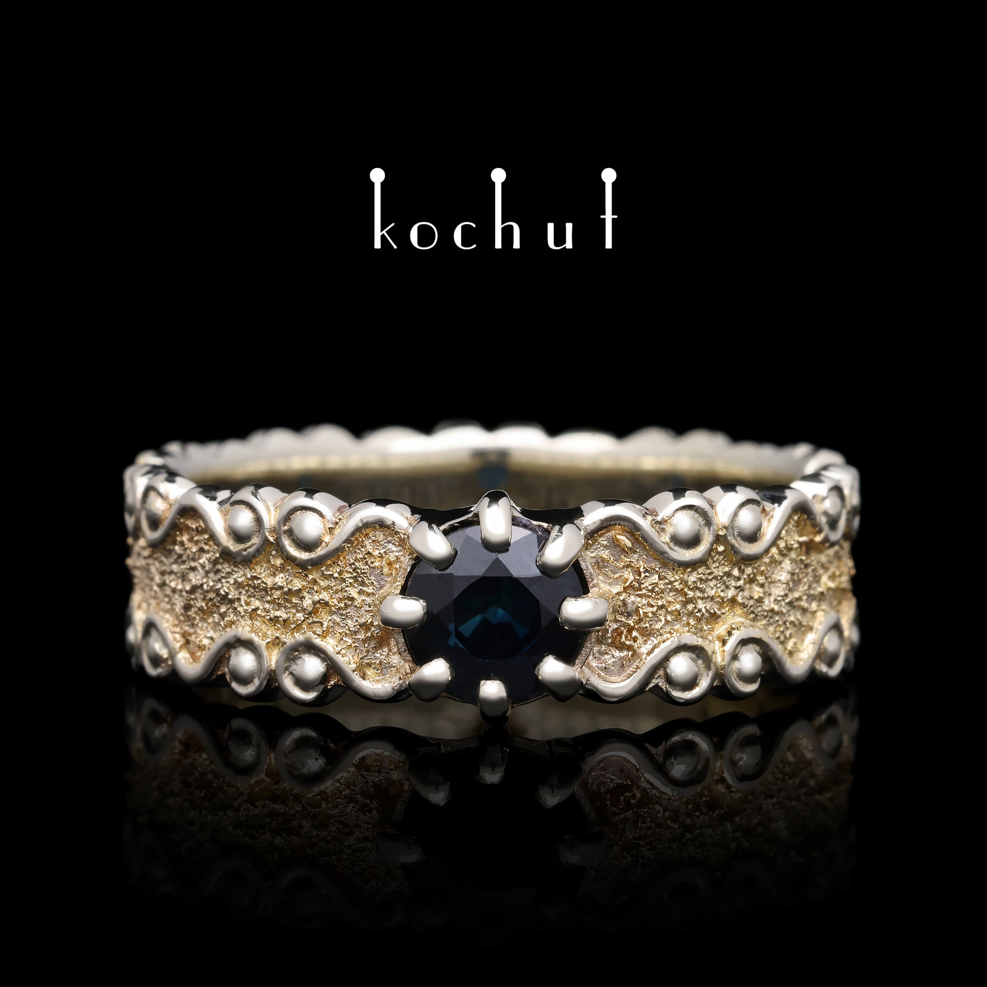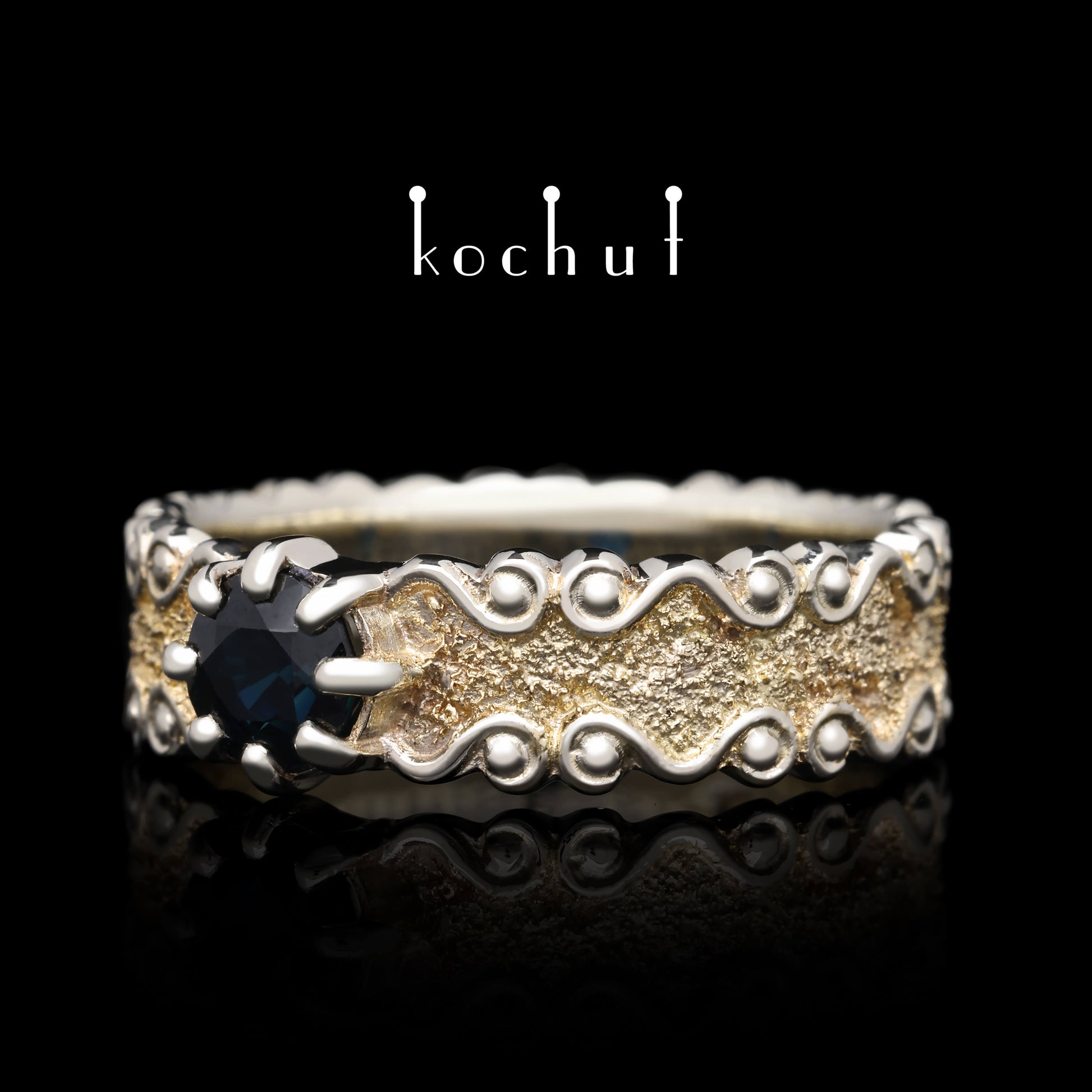 Marquise — Ring aus Weißgold mit Gelbgoldbeschichtung und Saphir