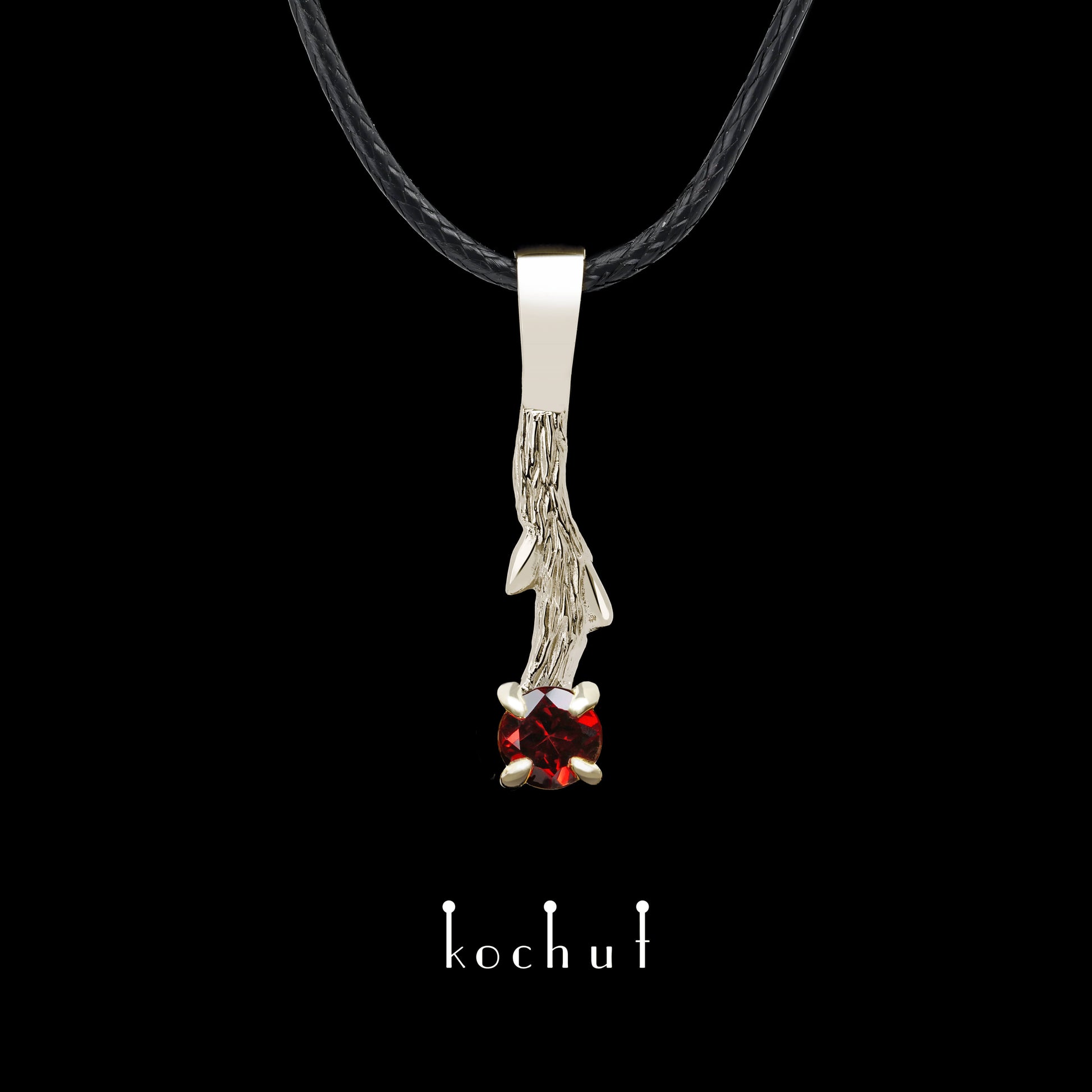 März-Zweig — Anhänger aus Weißgold mit Granat