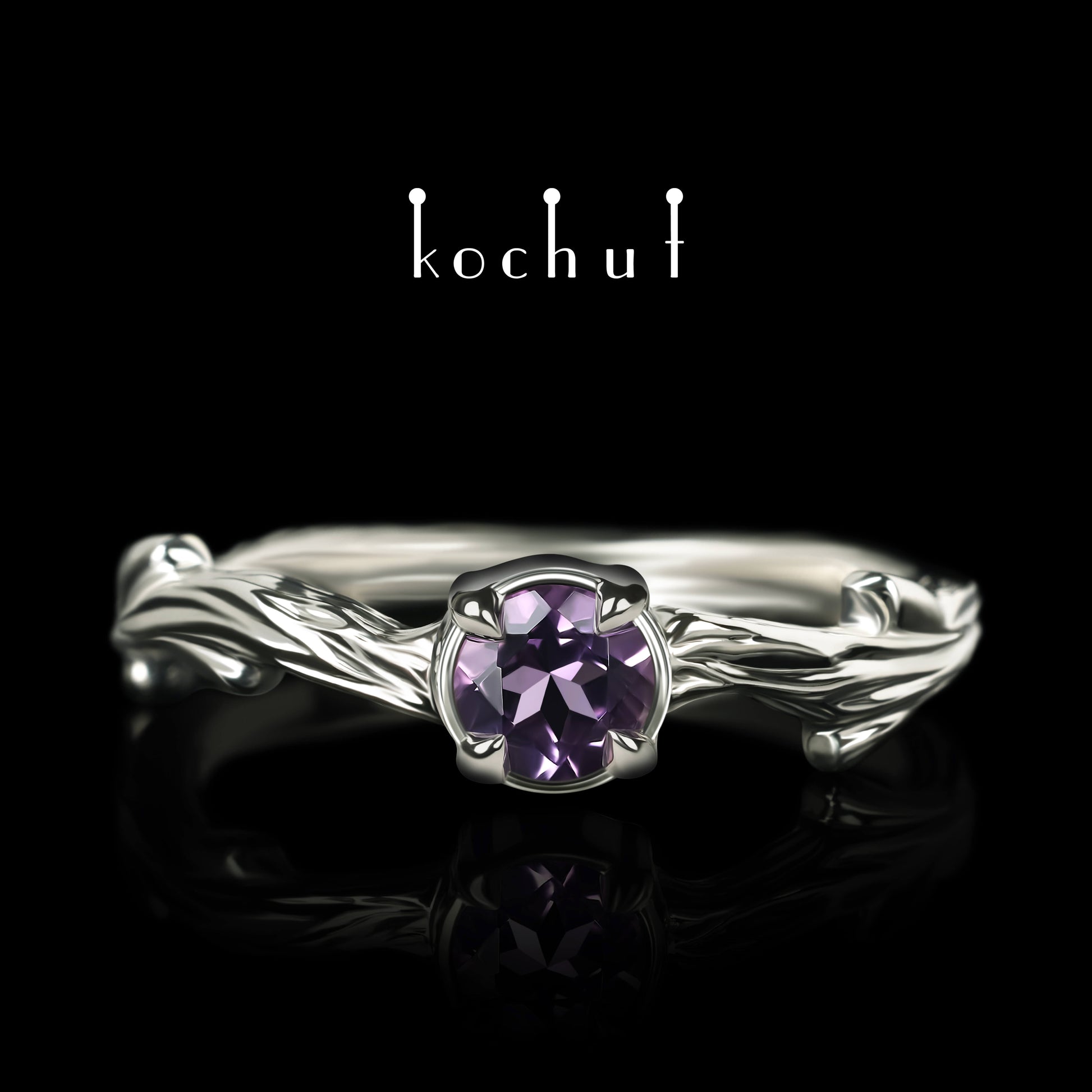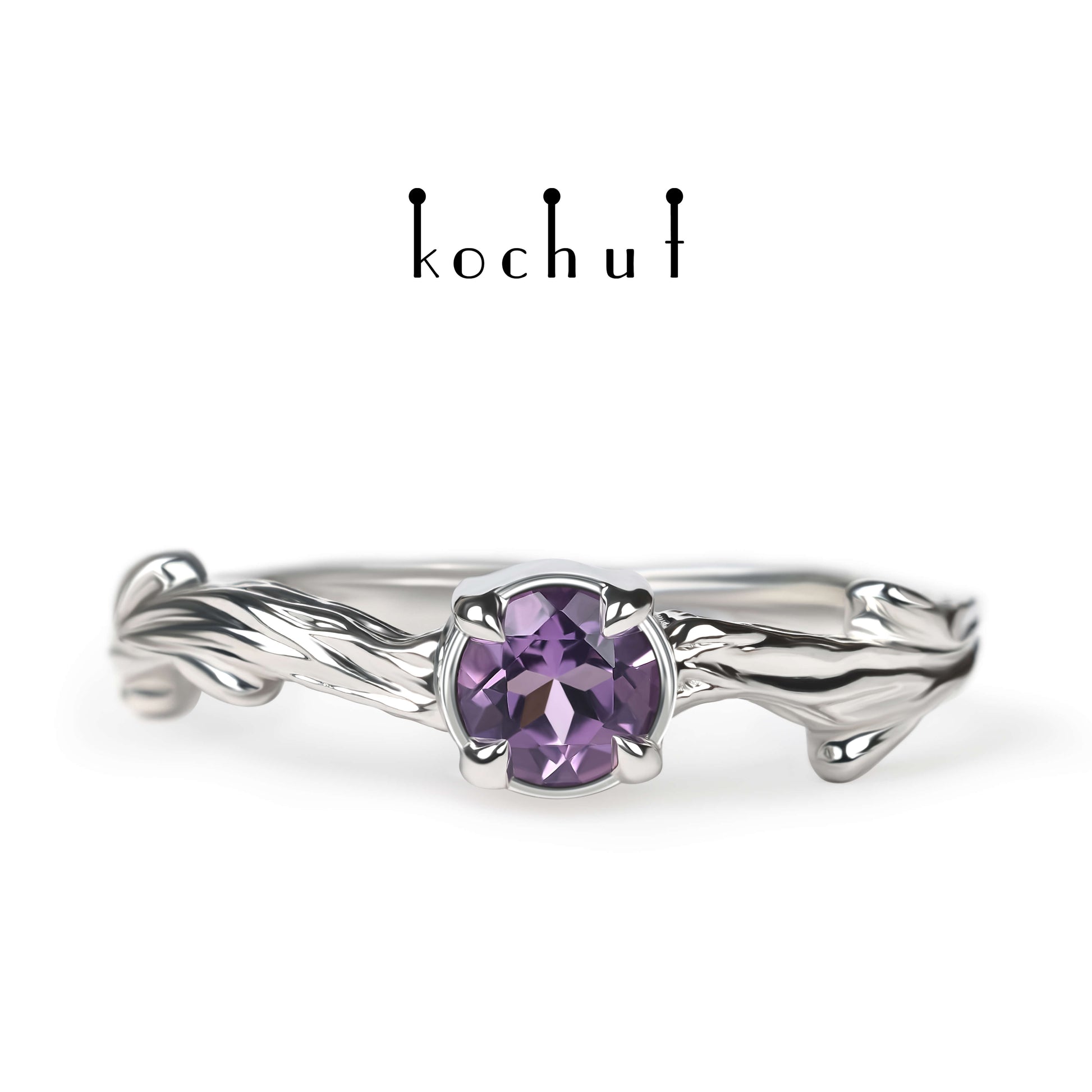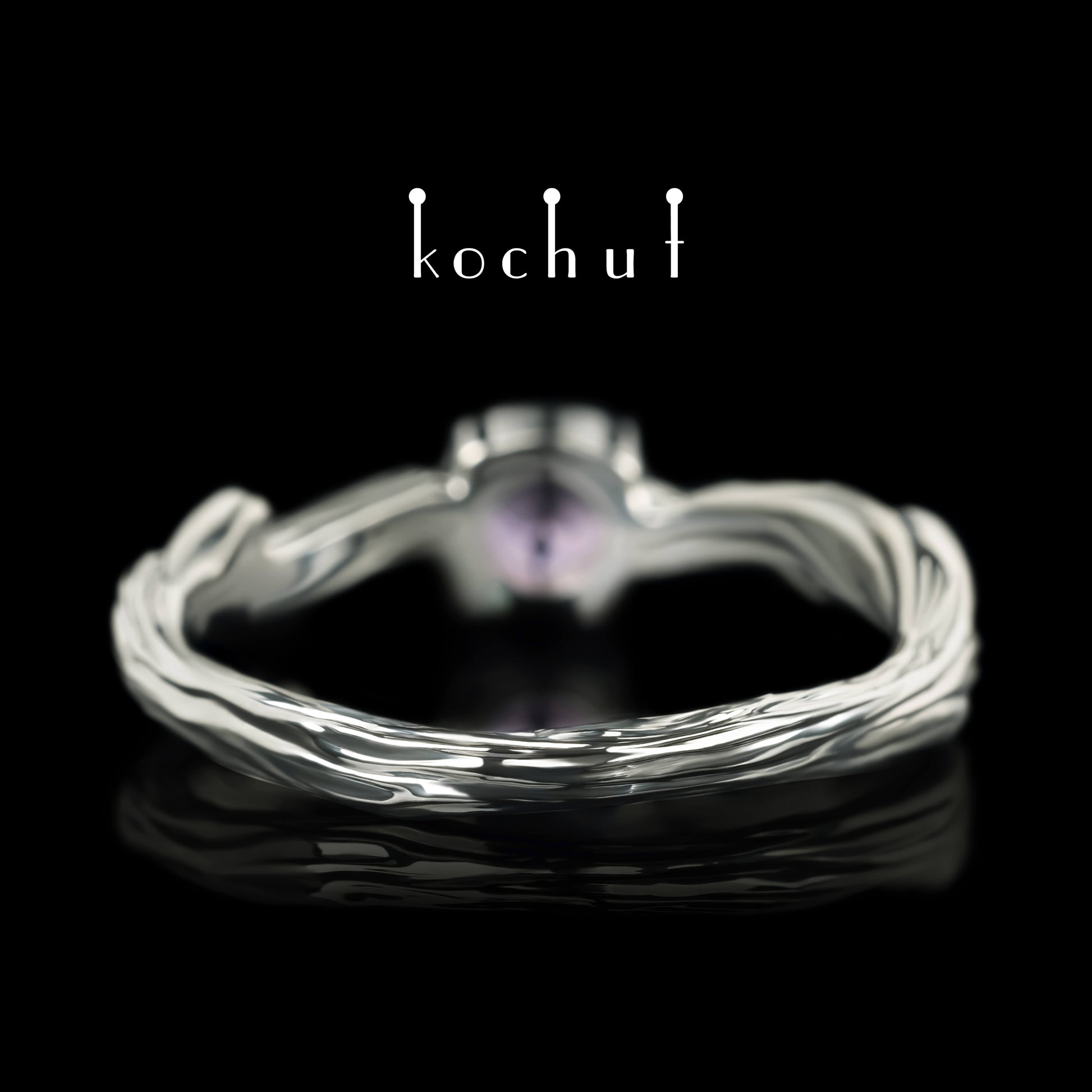 März Zweig — ein Ring aus Weißgold, plattiert mit schwarzem Rhodium und Amethyst