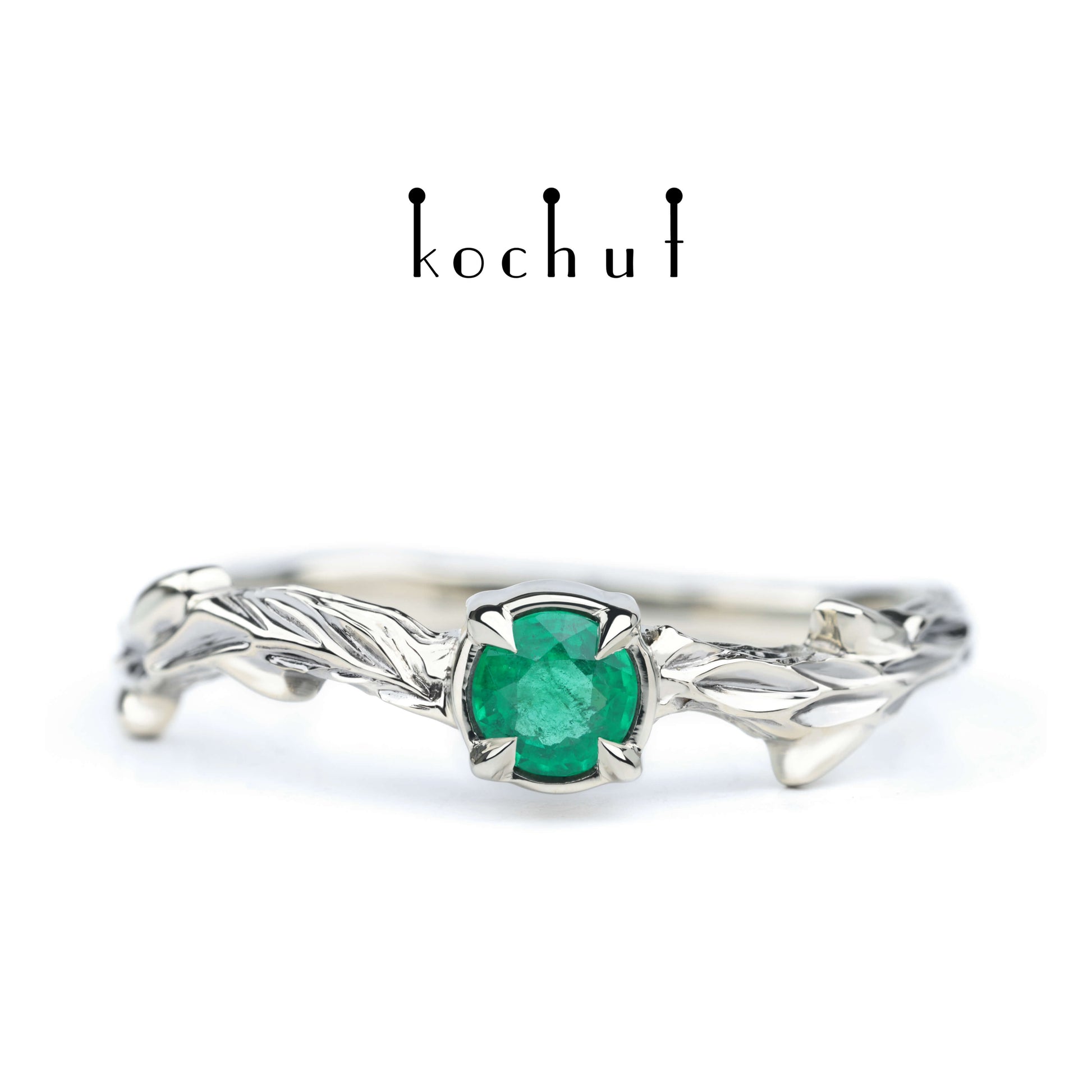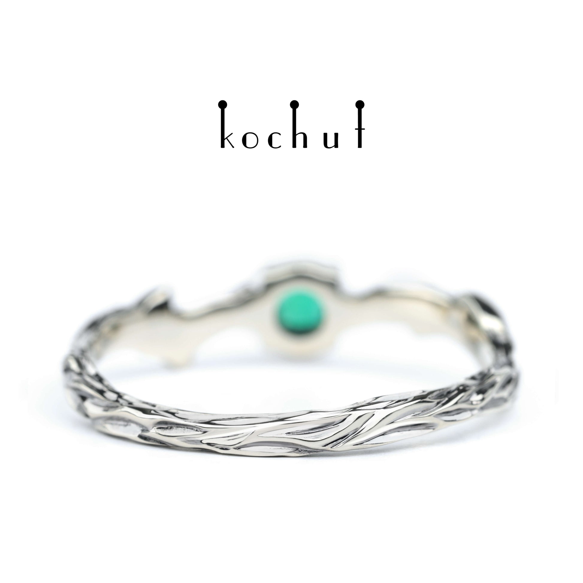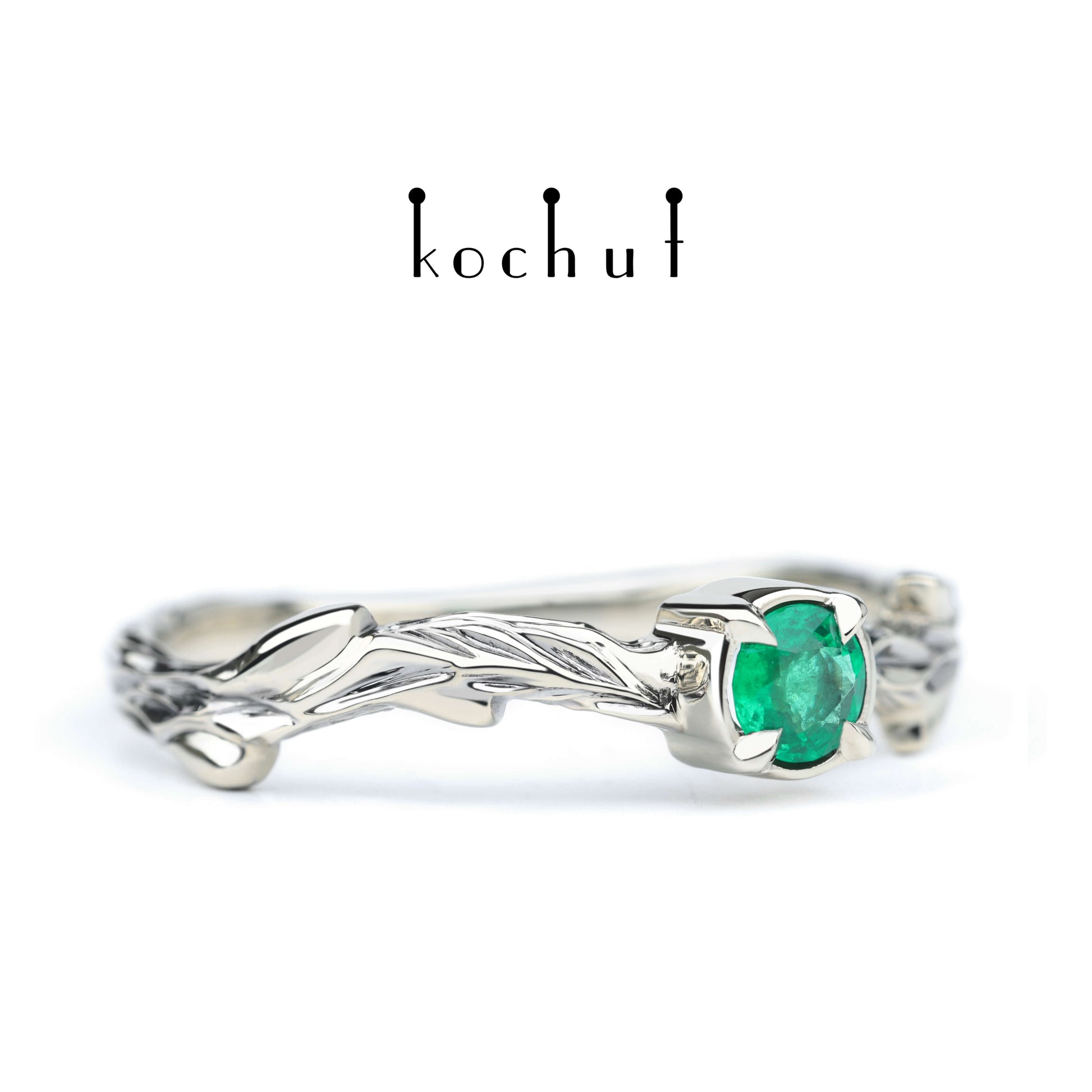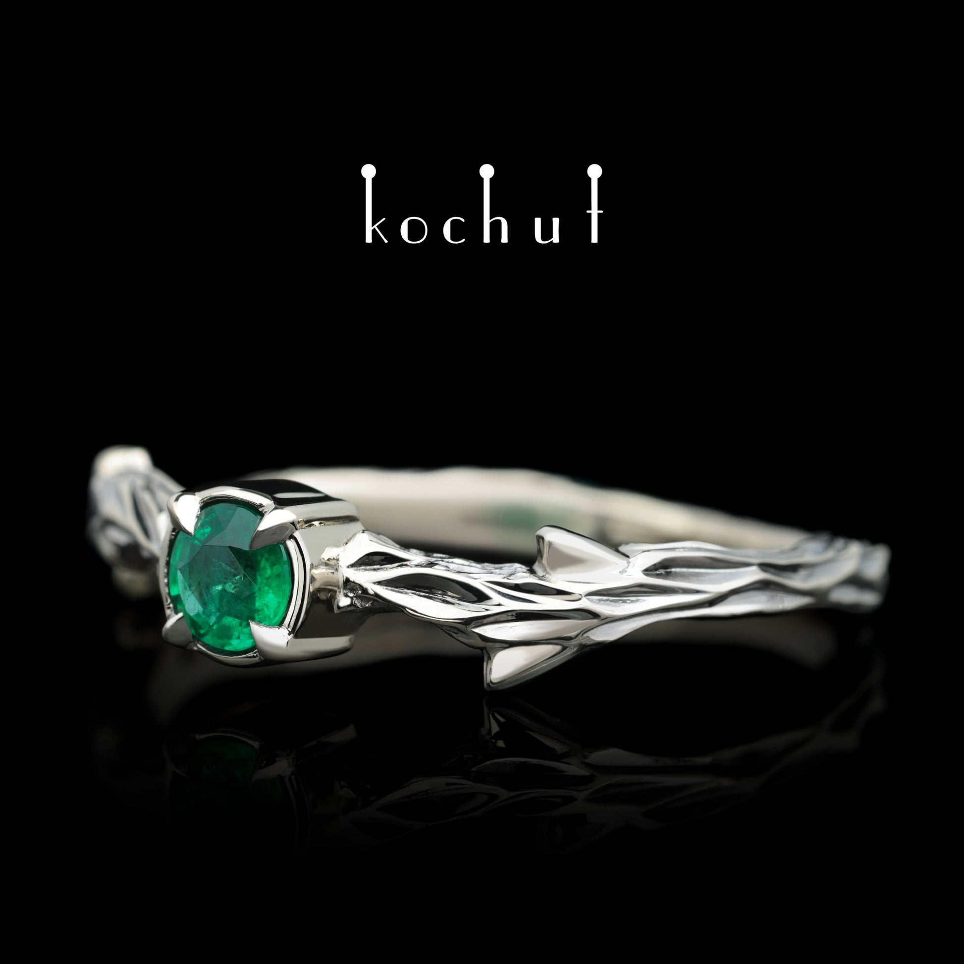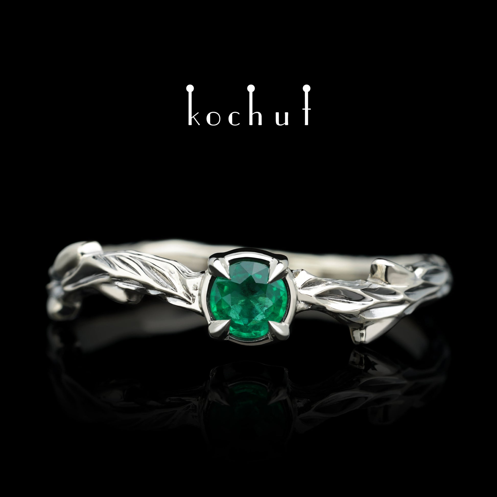 März Zweig — Weißgold-Smargd-Ring, überzogen mit schwarzem Rhodium