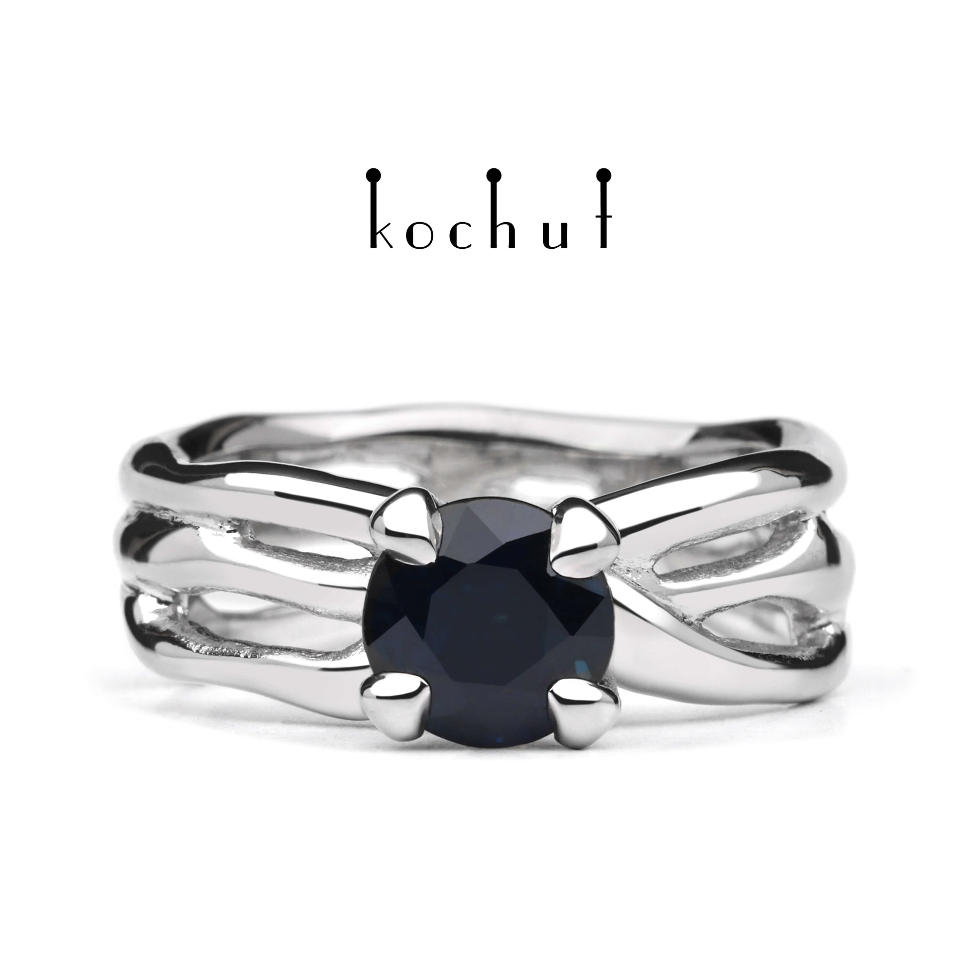 Mein Stern — Verlobungsring aus Weißgold mit Saphir, beschichtet mit weißem Rhodium